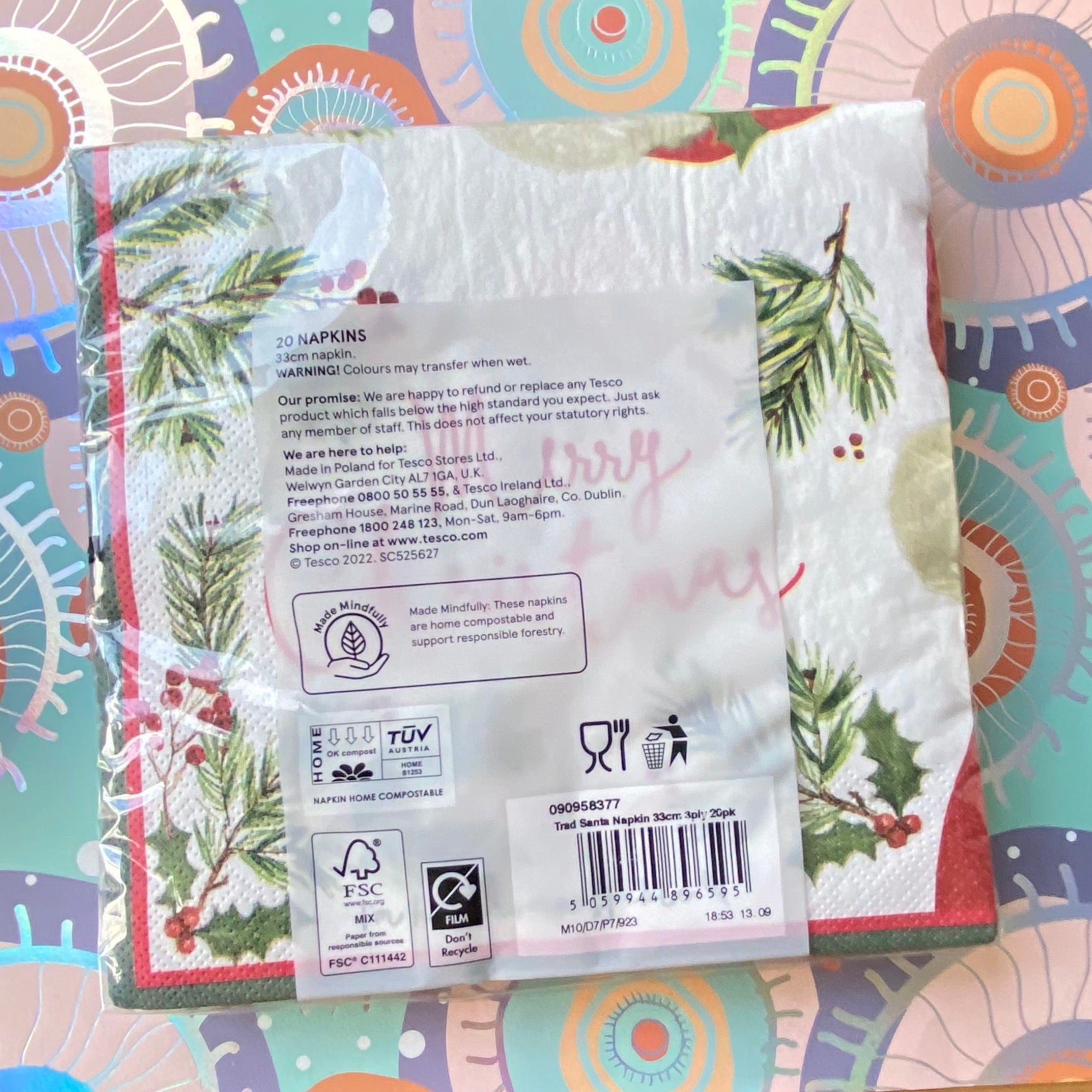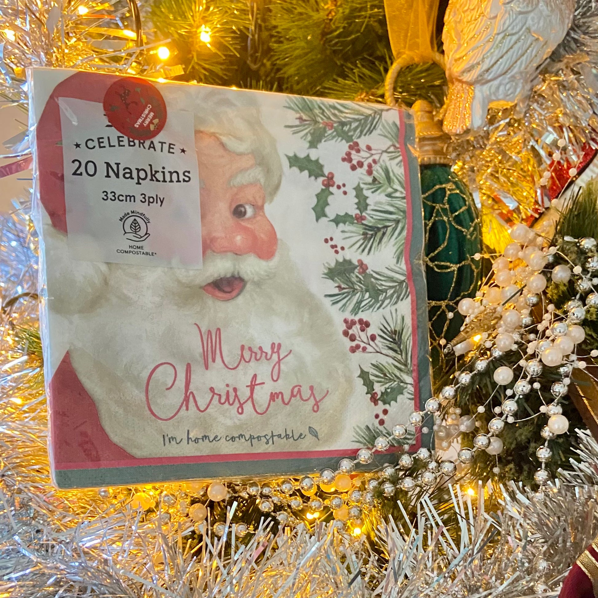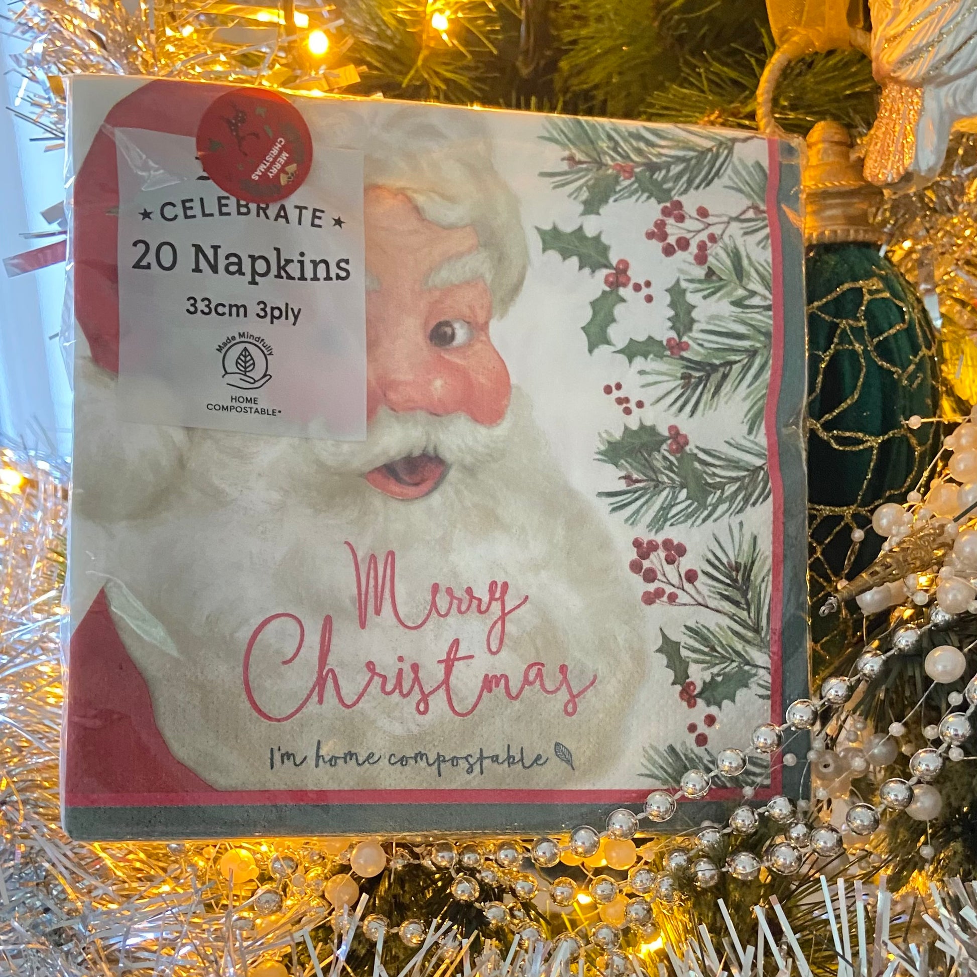 3 Ply includes 20 lovely quality Napkins, with Santa Claus Image