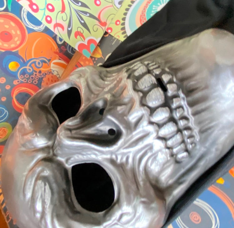 This is a great mask for a party and a brilliant disguise. It fits over the head and covers the back of the head too.
