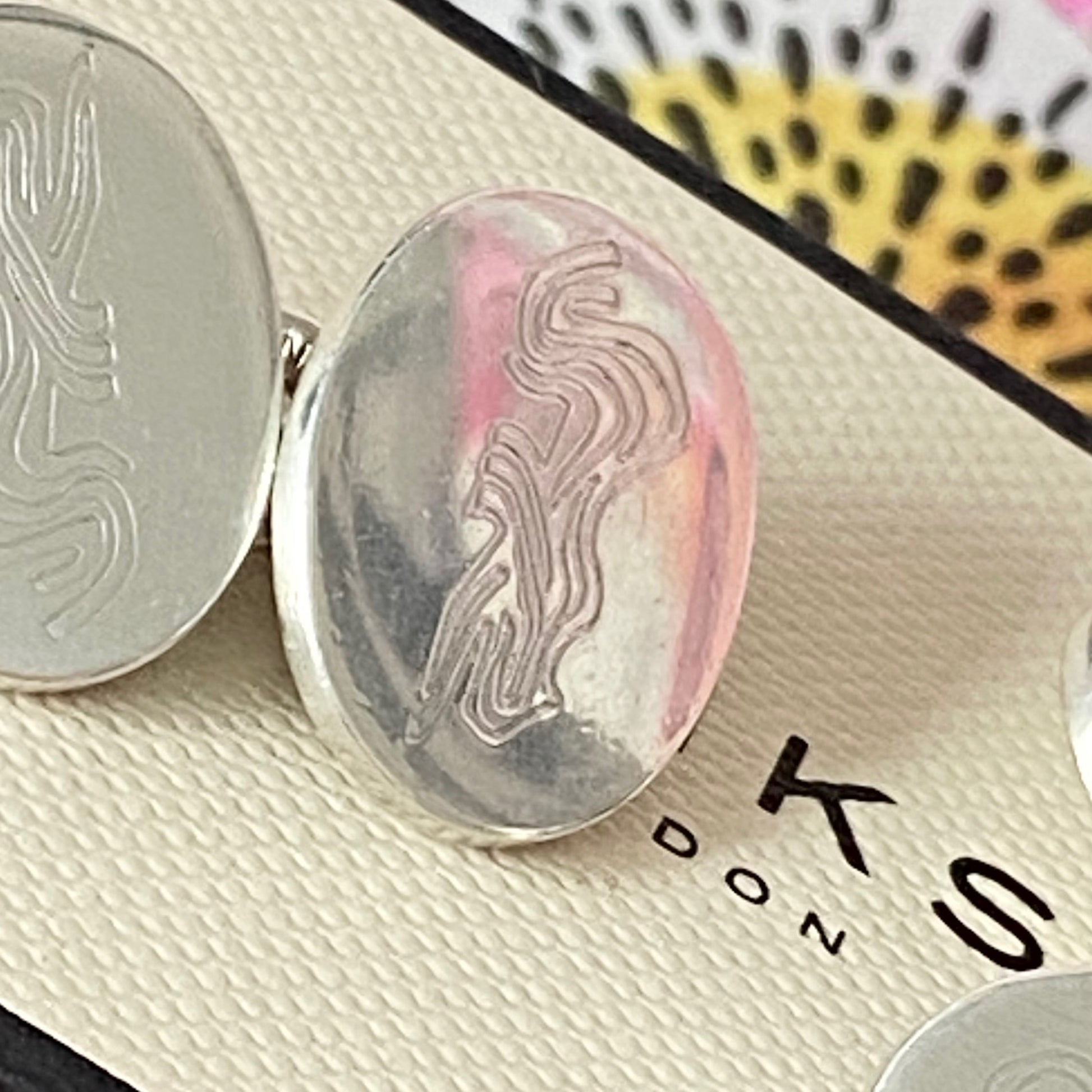Links of London Cufflinks engraved with a line drawing of a Leopard.