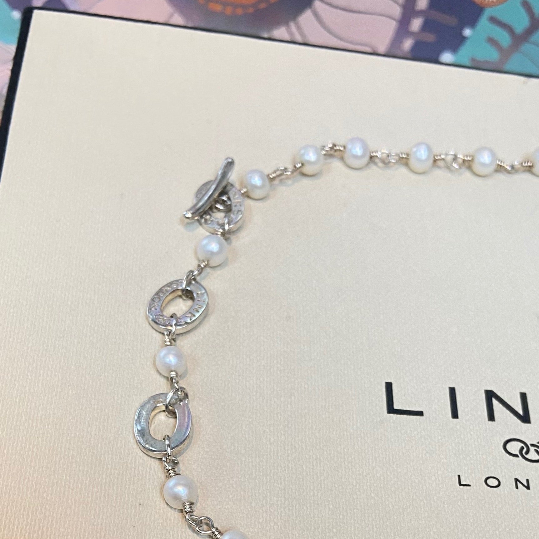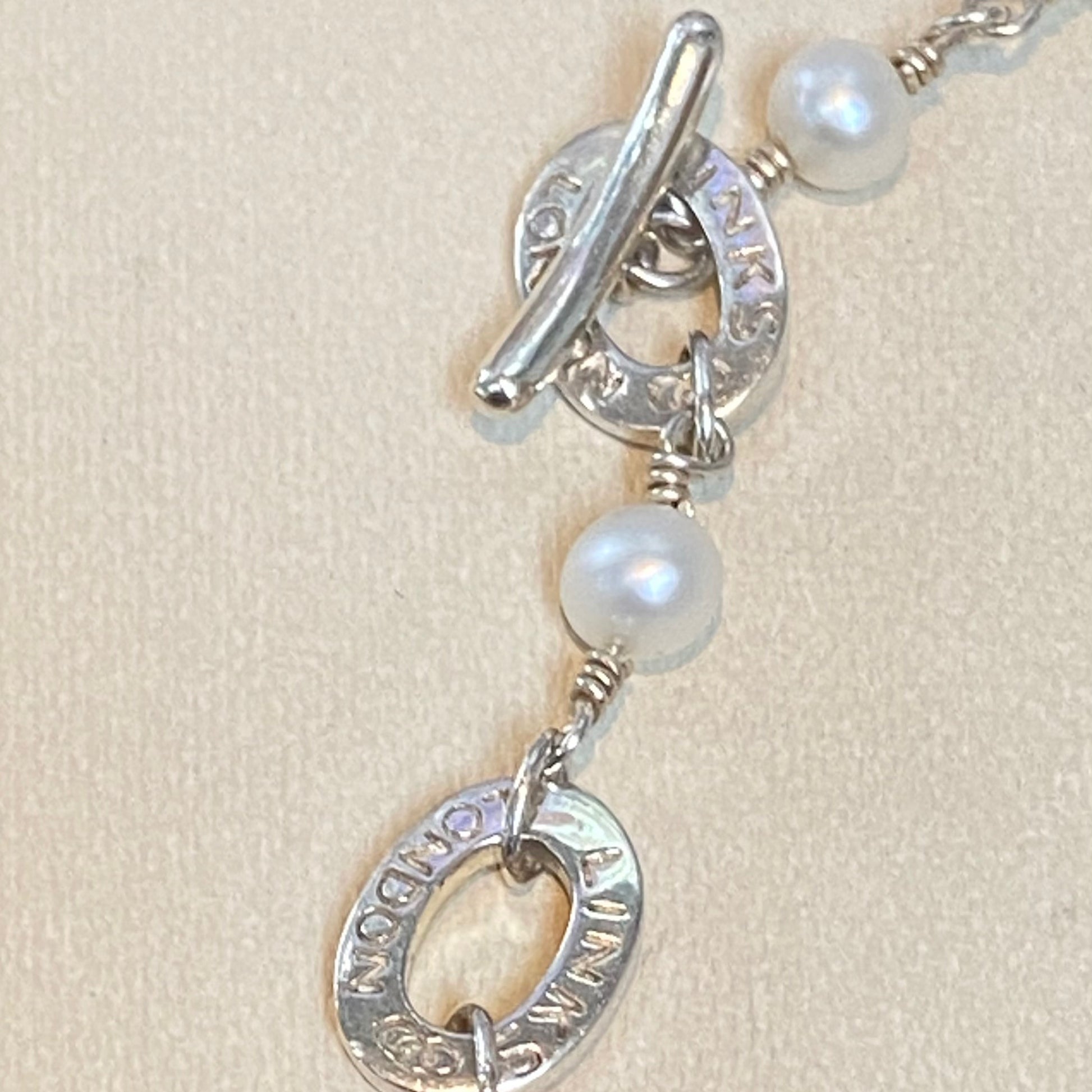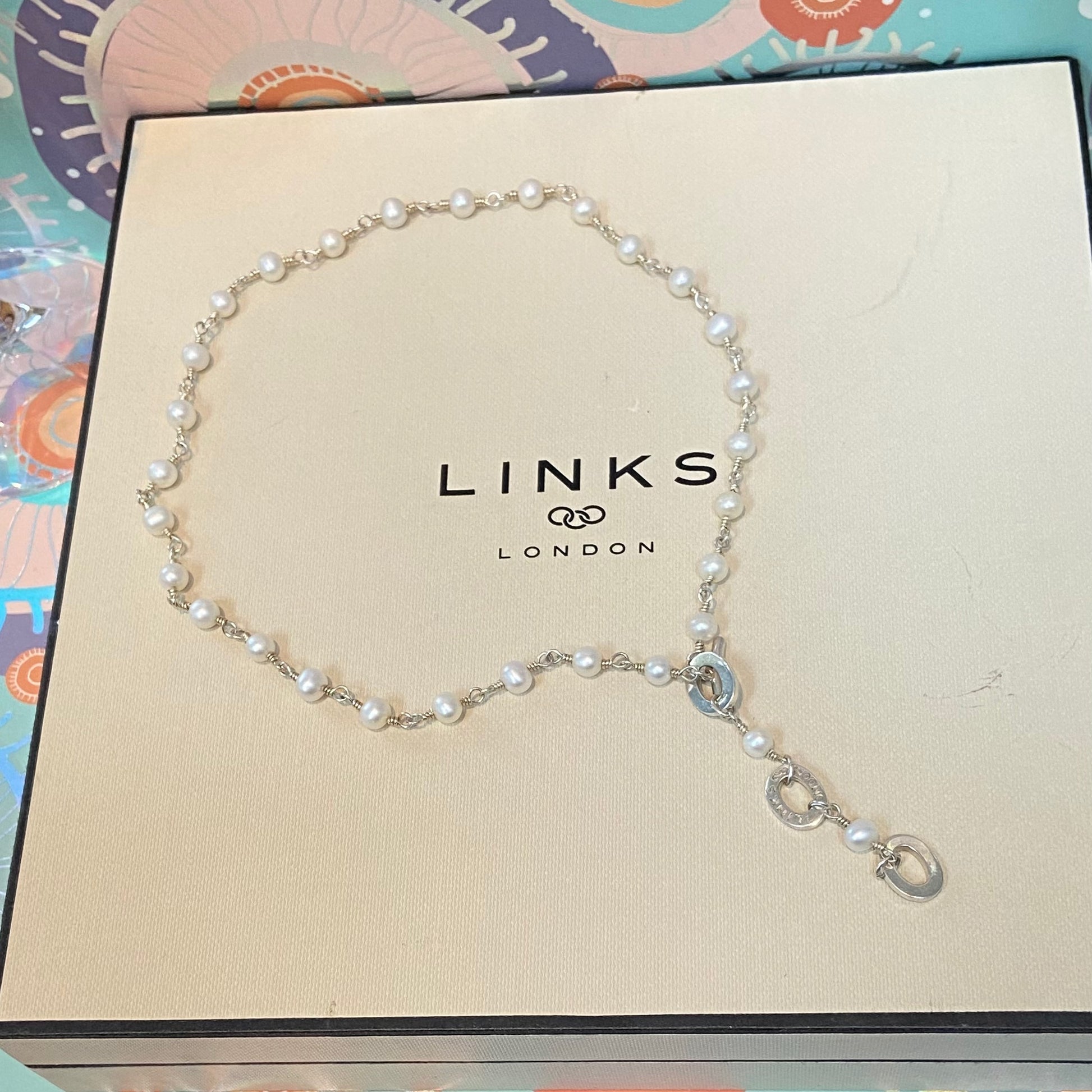 This item comes with the Links of London oval openings to make this the perfect adjustable necklace with a T bar clasp. The beautiful necklace is stamped 925 with the Links of London hallmarks. There are 30 pearls held together with Sterling Silver wire links.