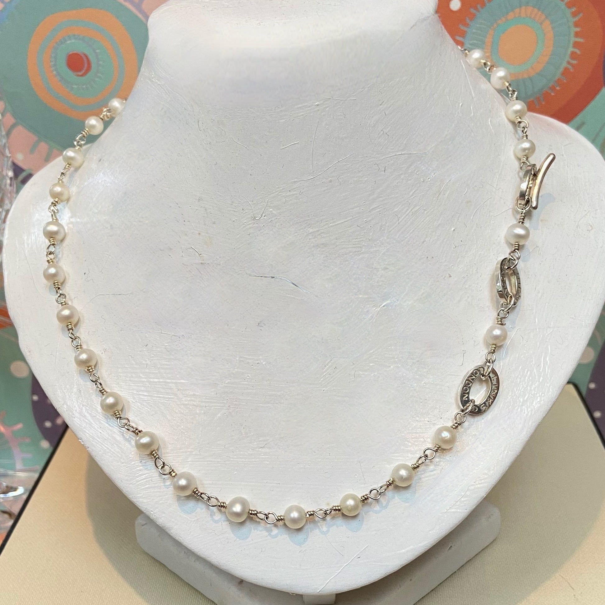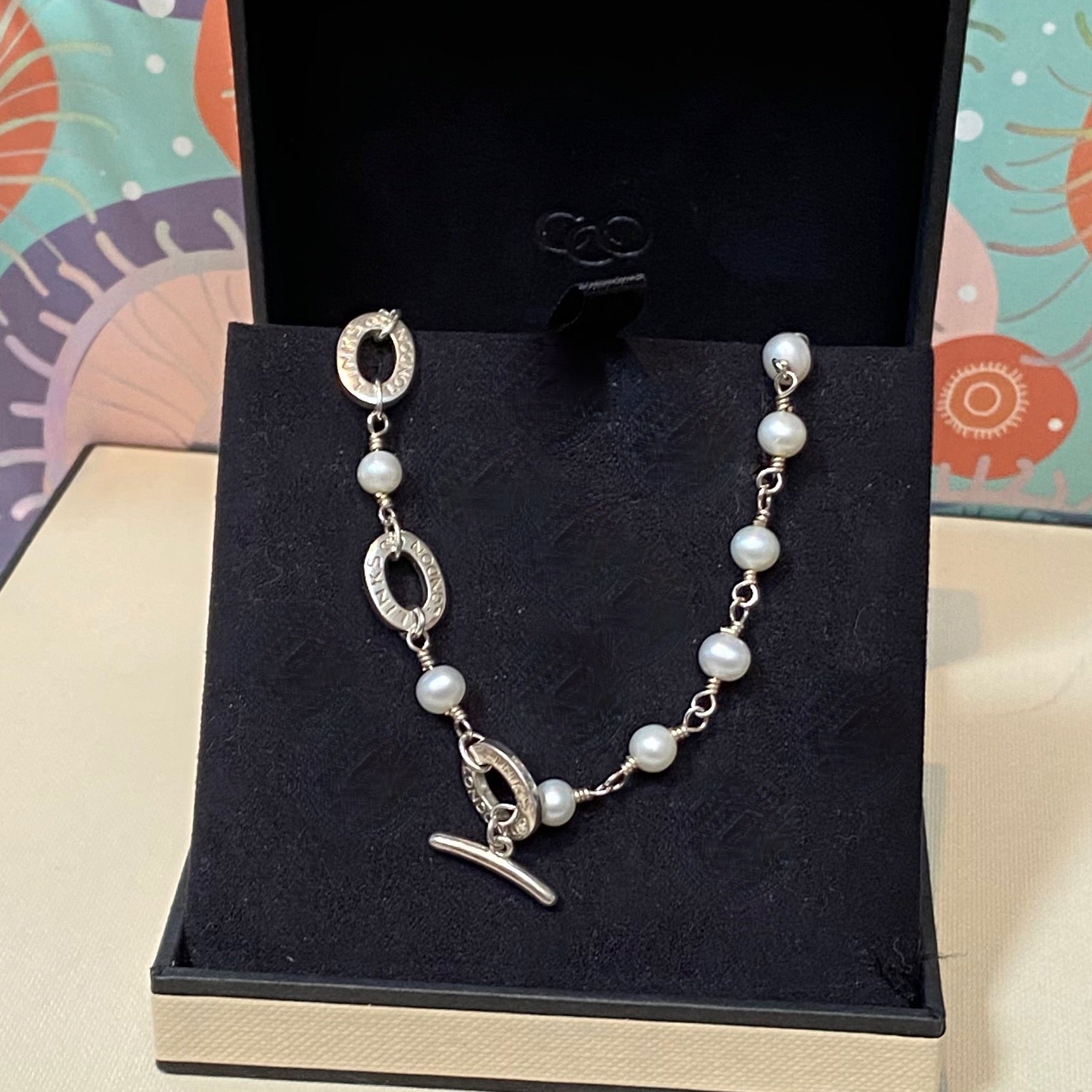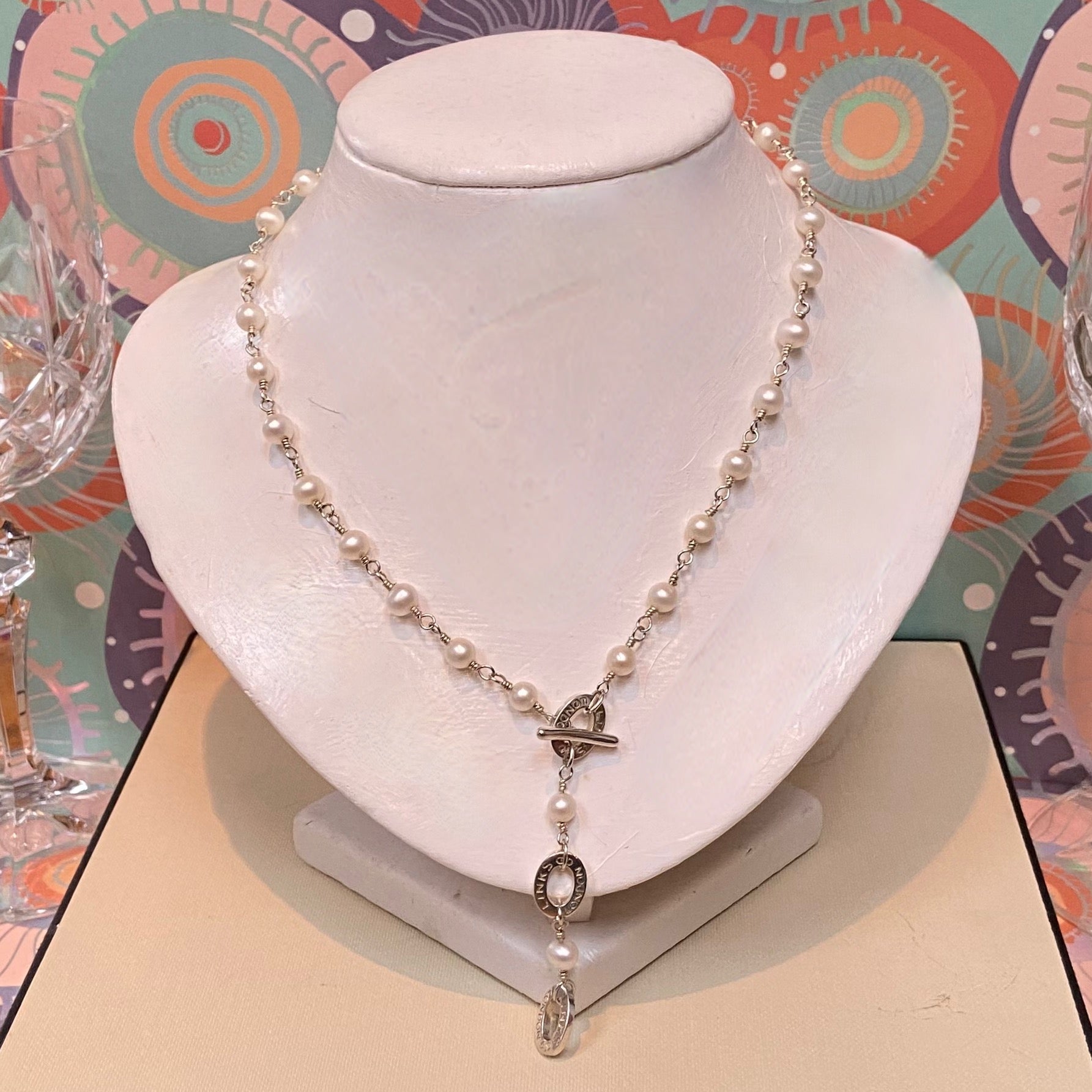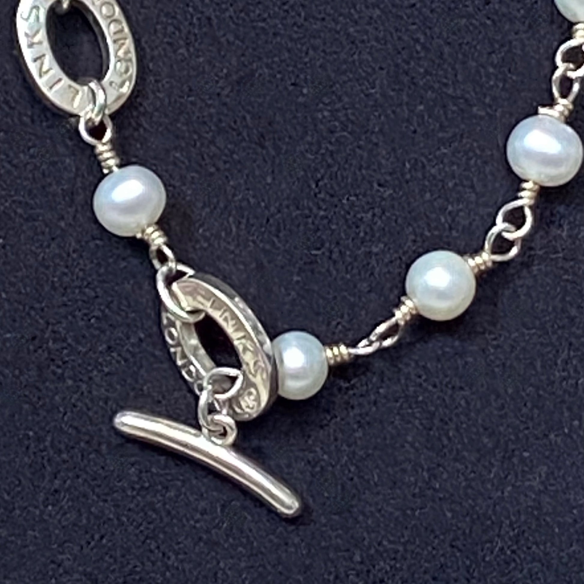 This item comes with the Links of London oval openings to make this the perfect adjustable necklace with a T bar clasp. The beautiful necklace is stamped 925 with the Links of London hallmarks. There are 30 pearls held together with Sterling Silver wire links.