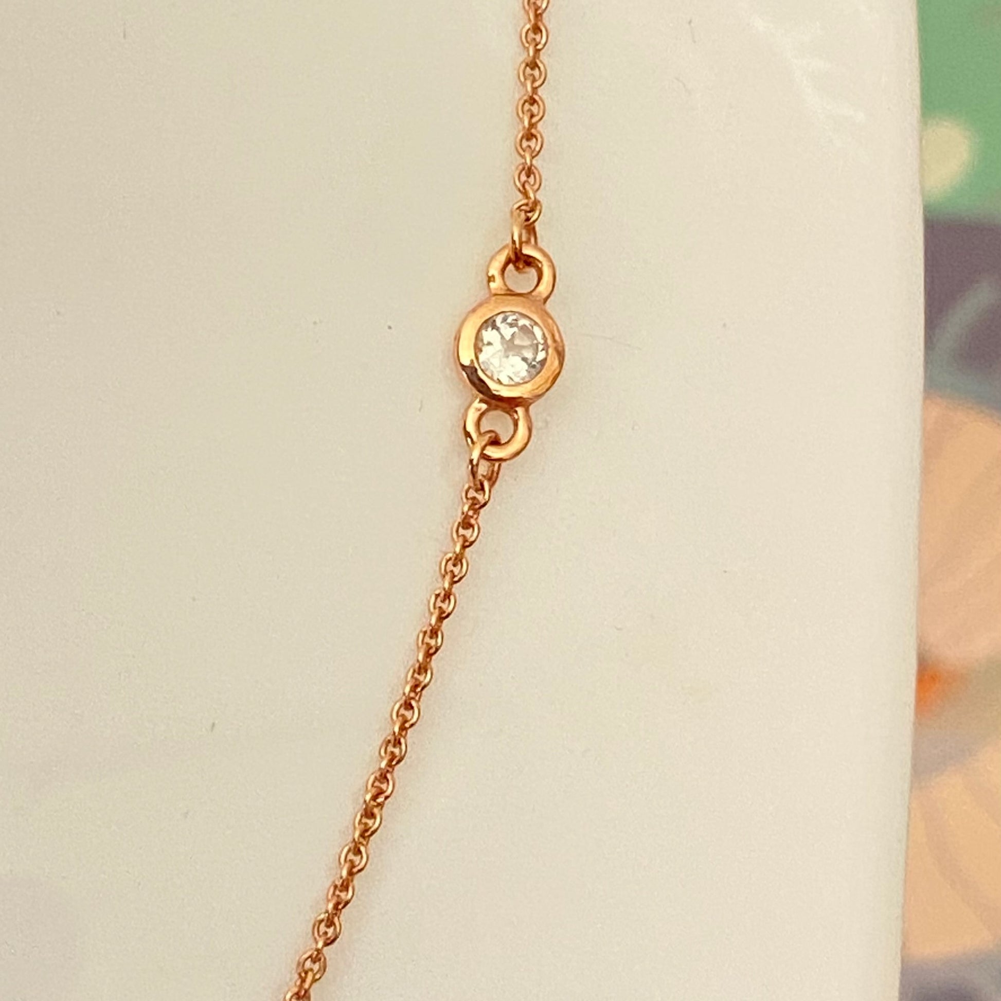 Item: 18kt Gold Vermeil necklace with Clear Topaz round stones.