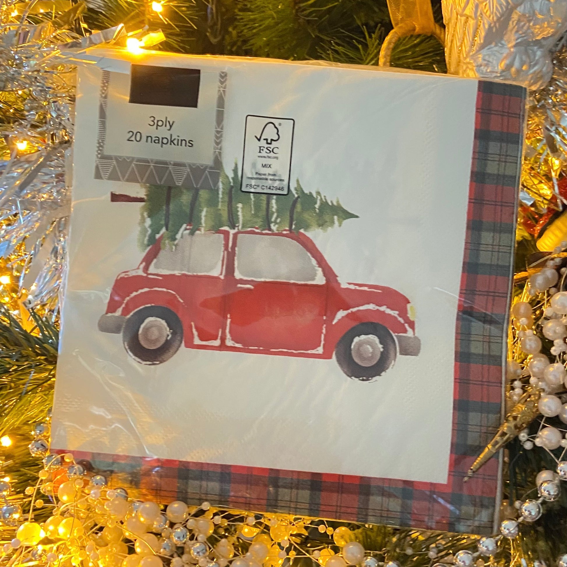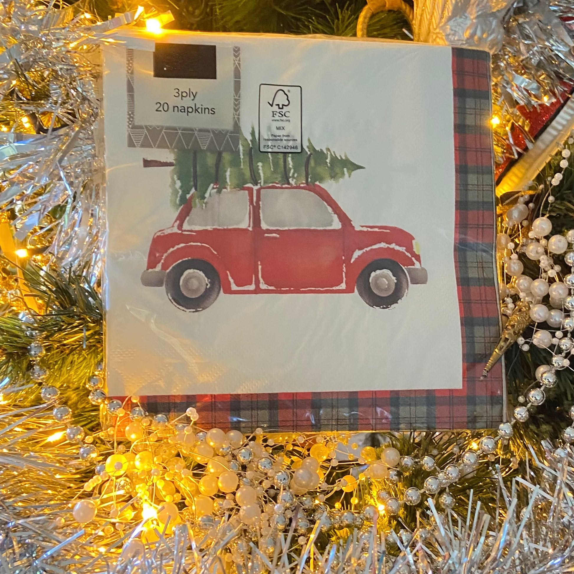 Car with a Christmas Tree Napkins 20 per pack, 3ply can be used for Decoupage