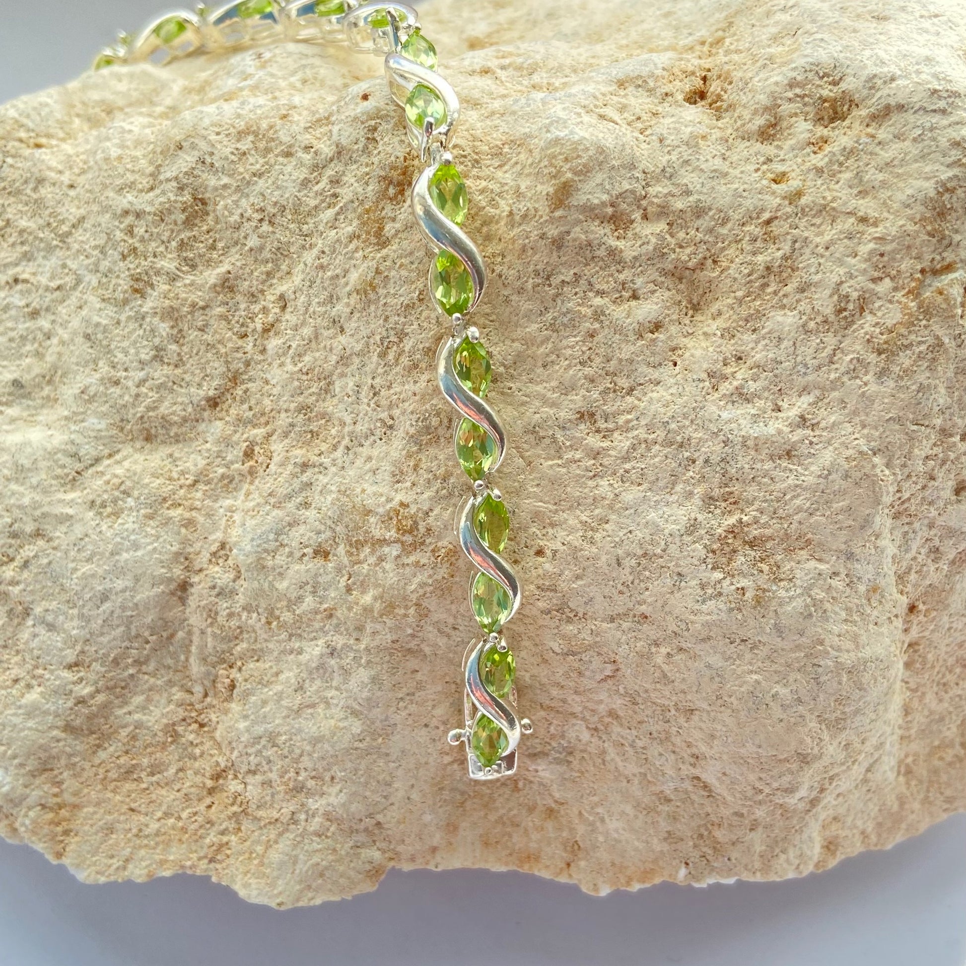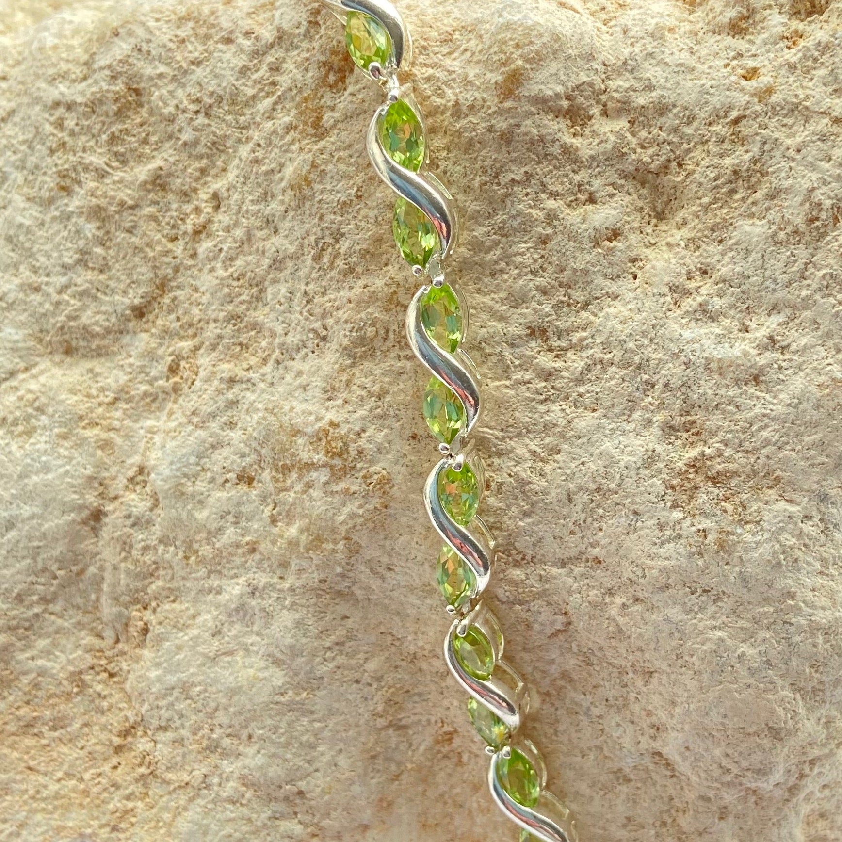 Sterling Silver Tennis Bracelet with Green Citrine Crystal Gemstones