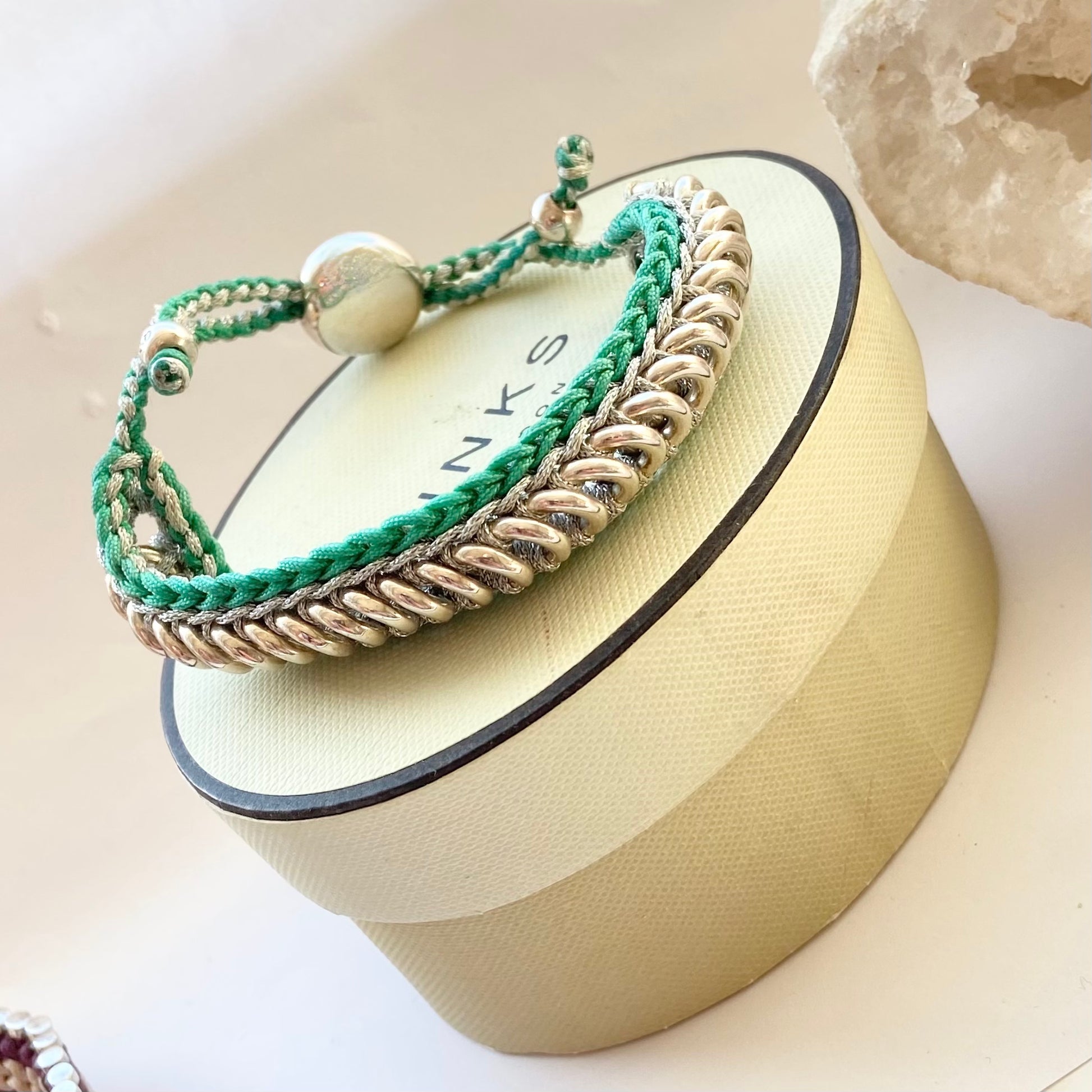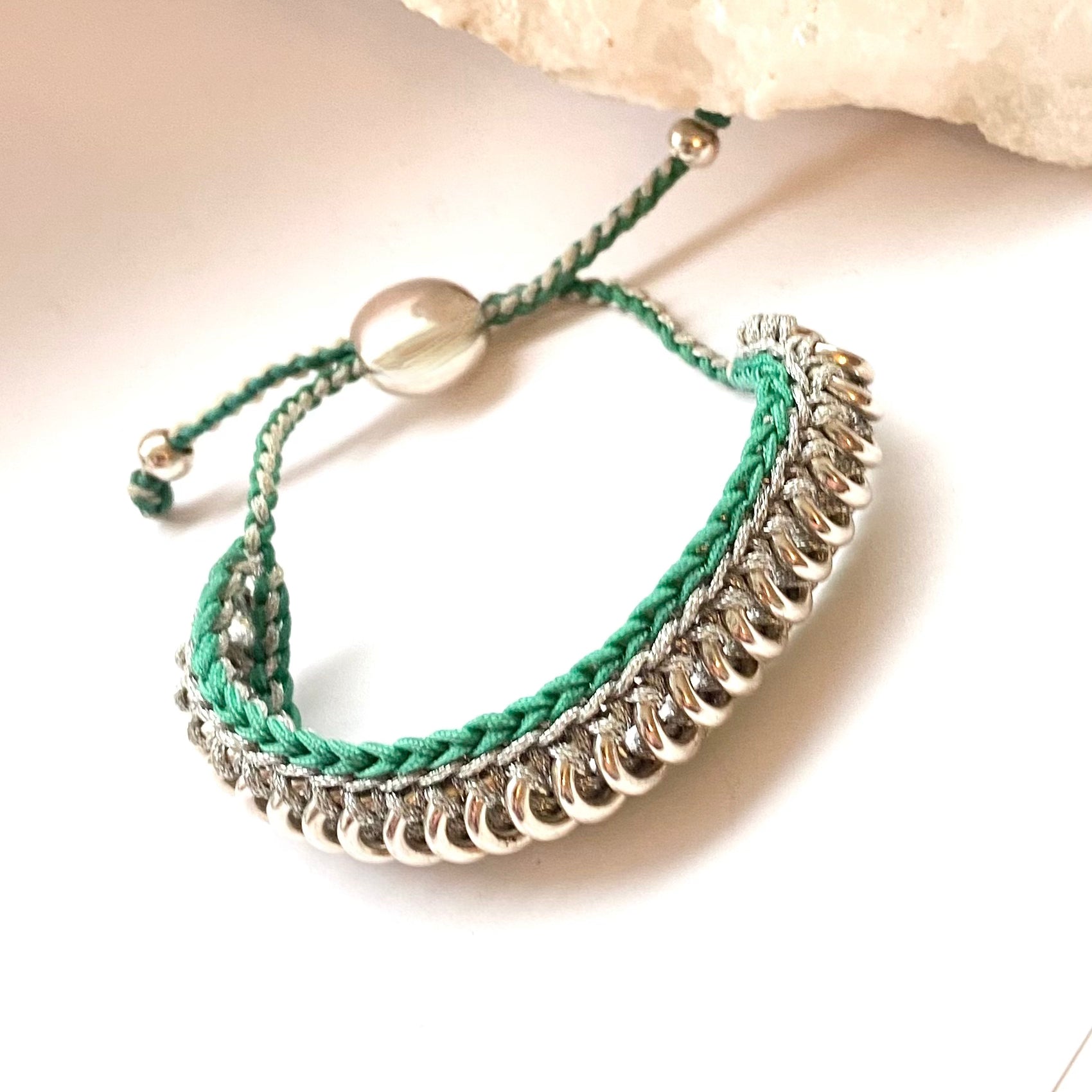 Metal: Sterling Silver 925, with green and silver woven thread
