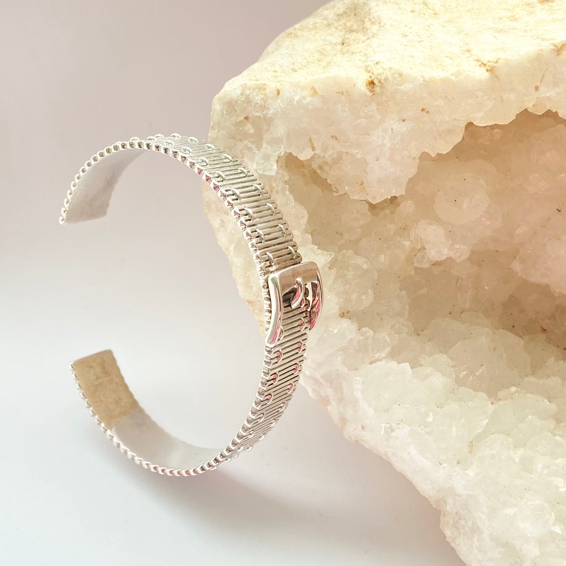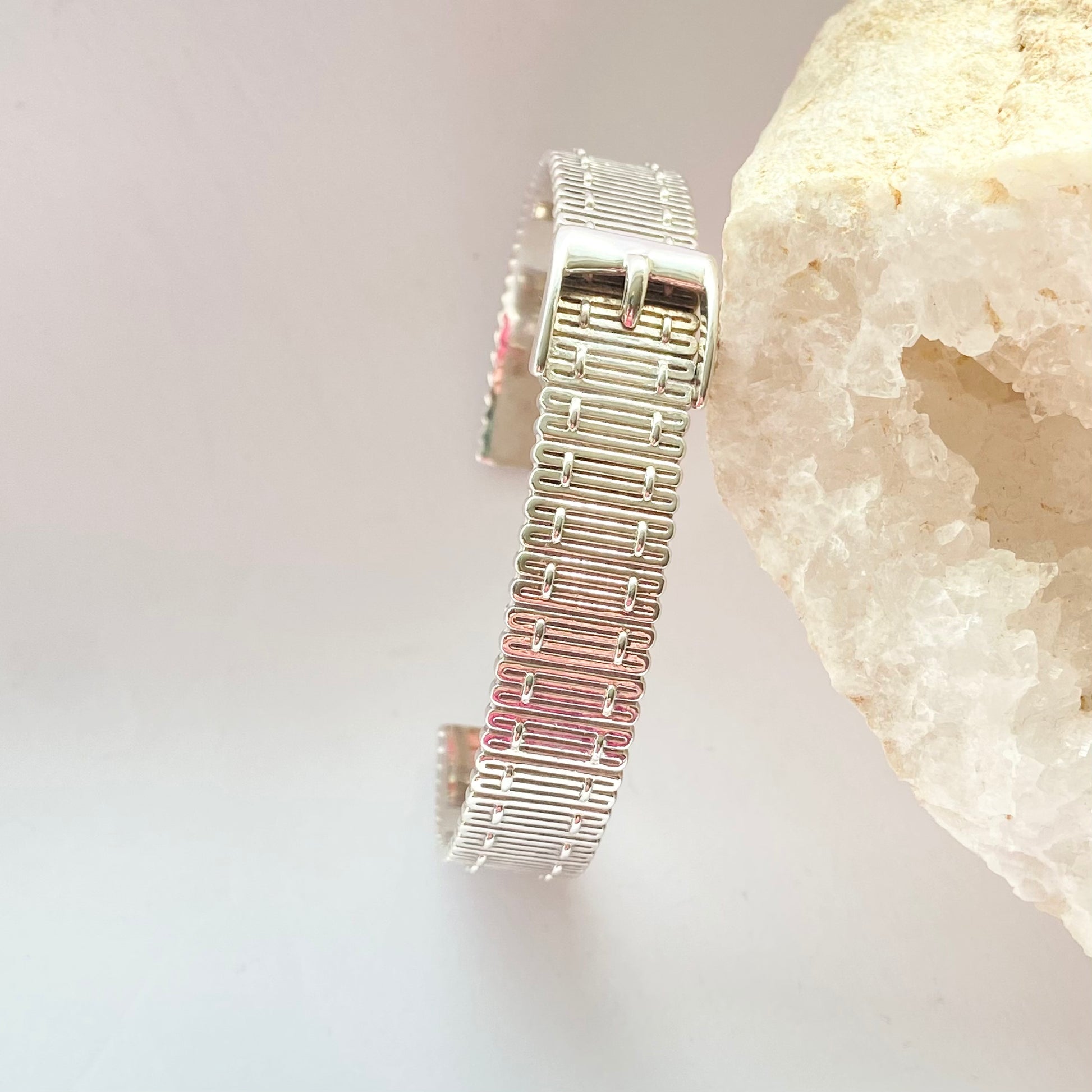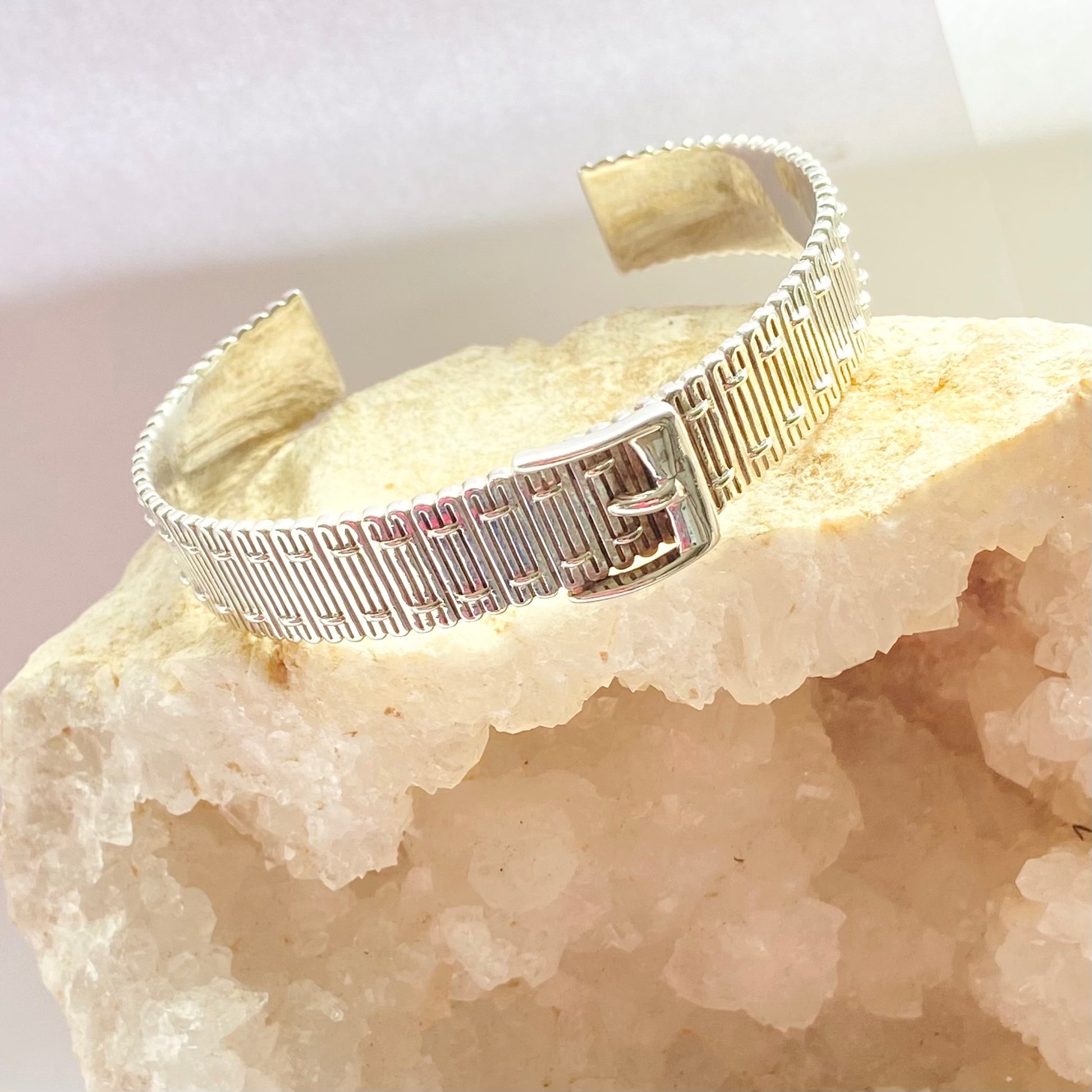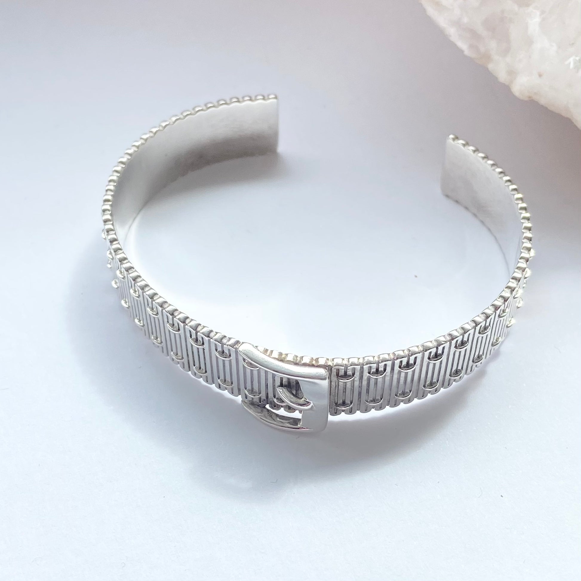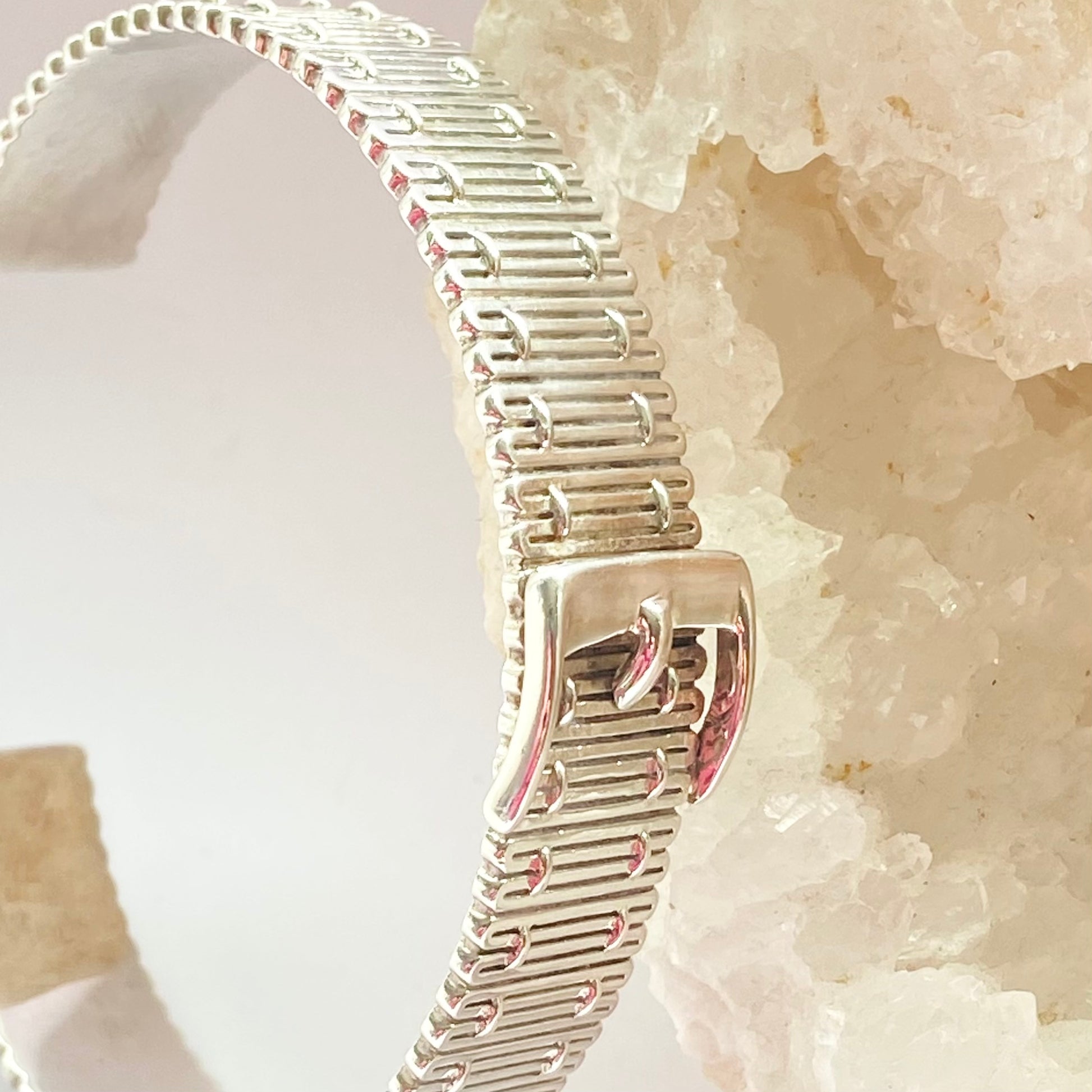 Solid Silver Buckle Belt Bangle quite Rare, Sterling Silver slip on bracelet