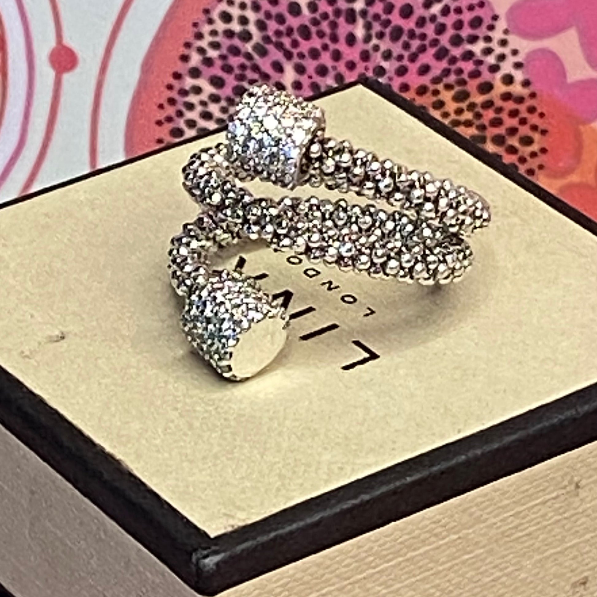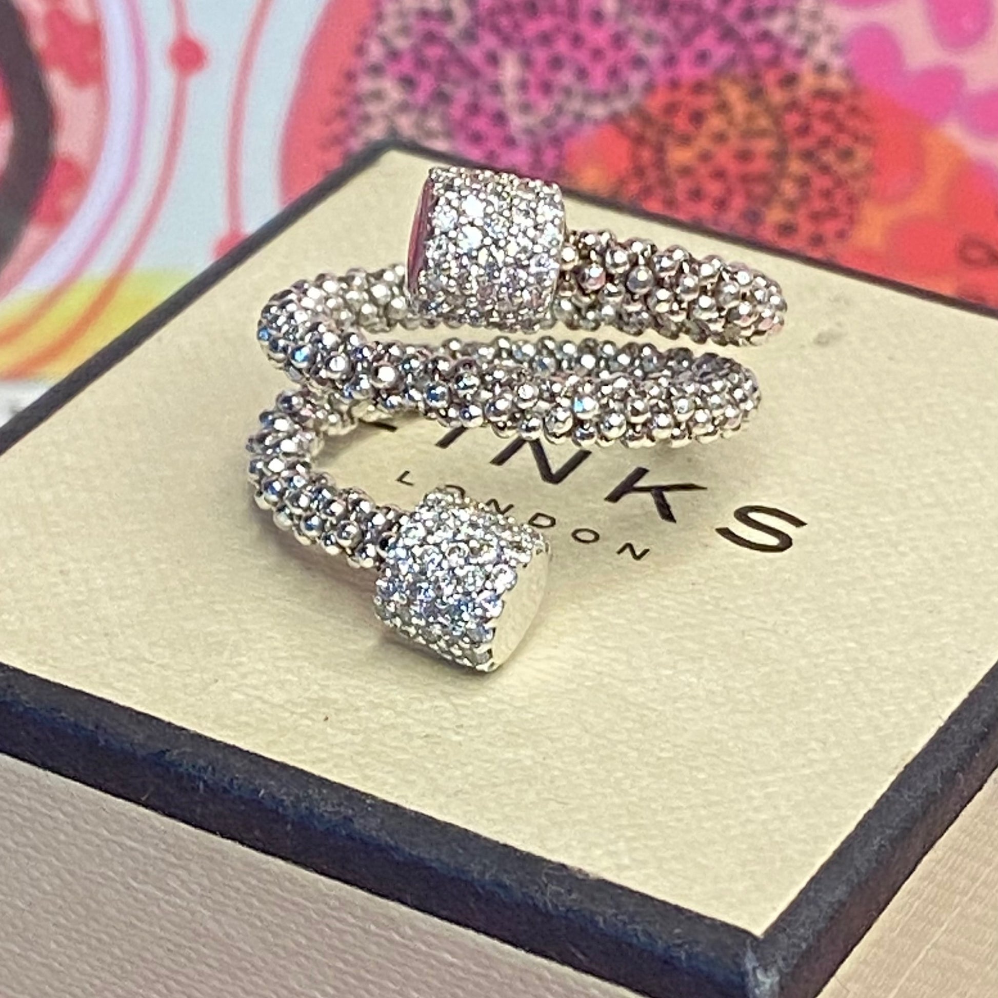 Links of London Sterling Silver Star Dust Wrap Ring with Round barrels covered with Sparkly stones.