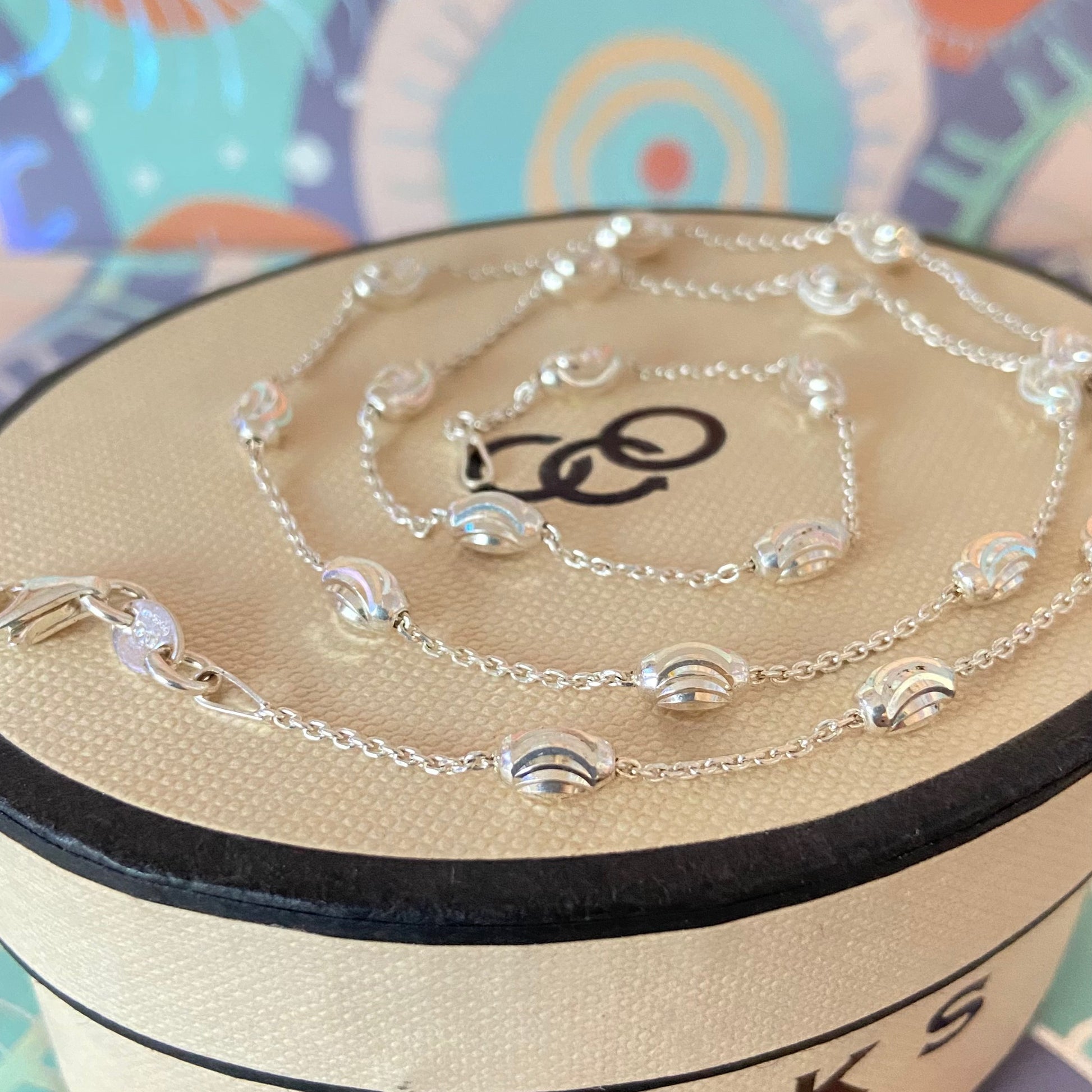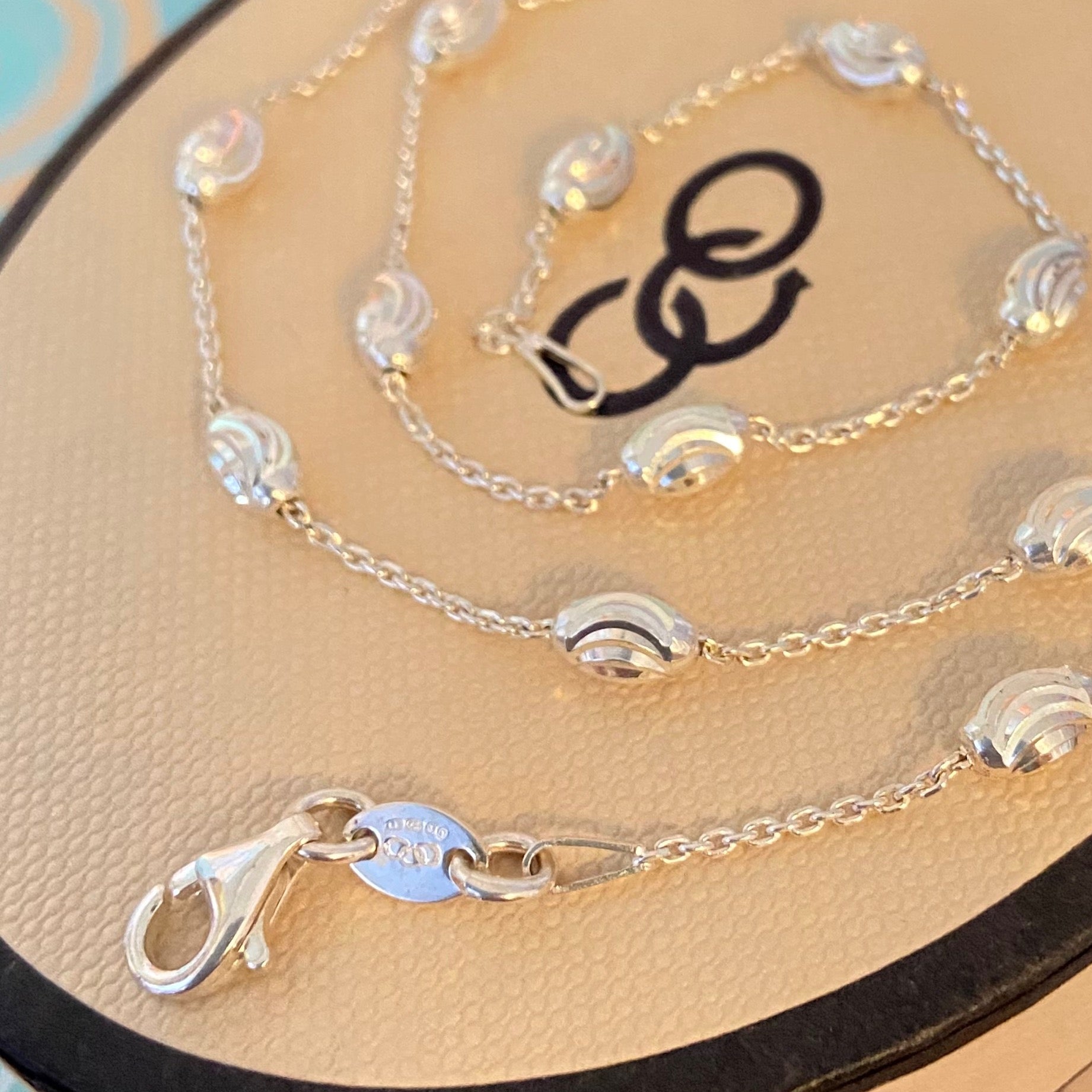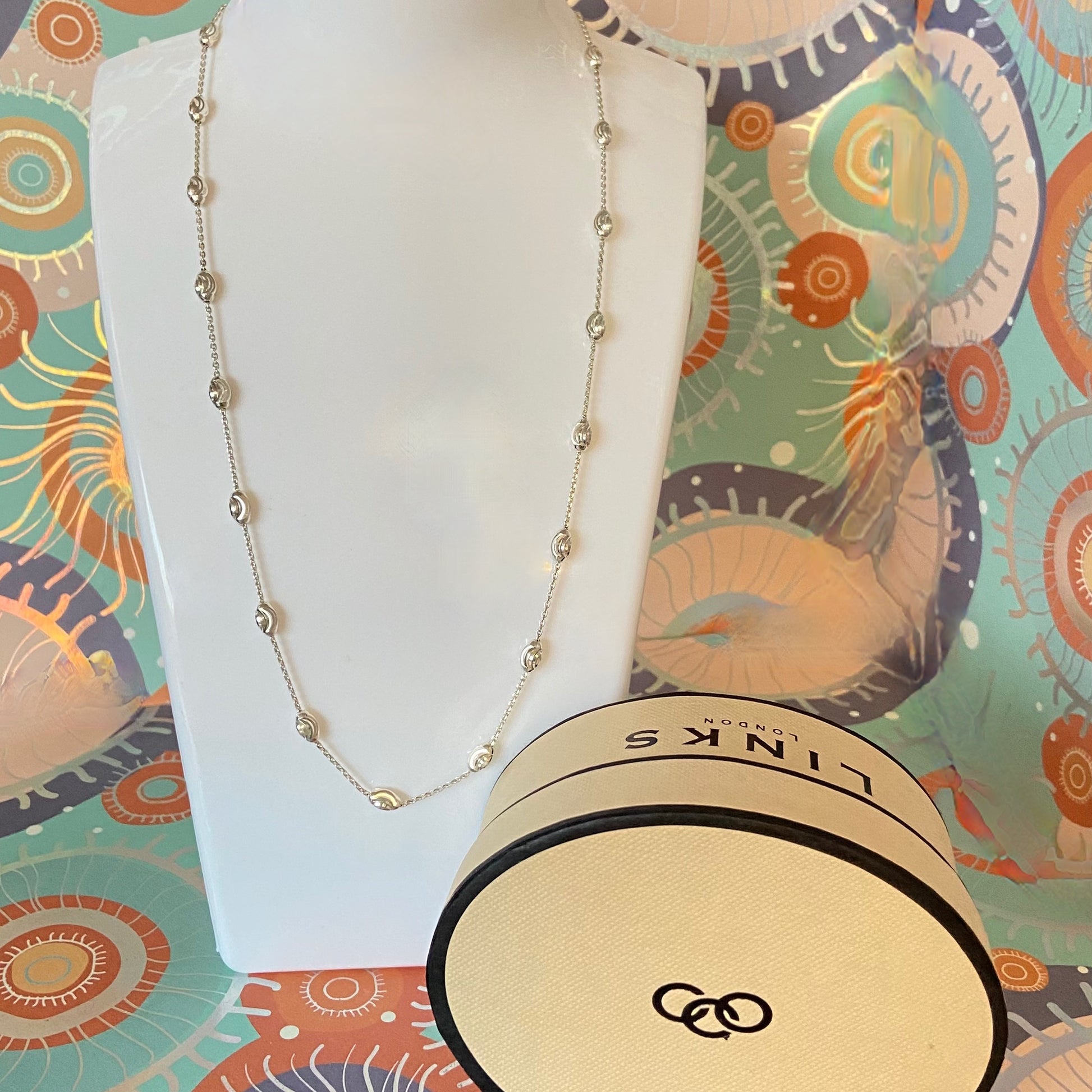 Links of London Sterling Silver Essentials Beaded Necklace with highly polished Diamond cut Beads. Crafted from Sterling Silver the chain is interspersed with diamond cut silver beads. This is the perfect everyday or evening necklace. Fully Hallmarked striking design from the Iconic designers at Links of London.