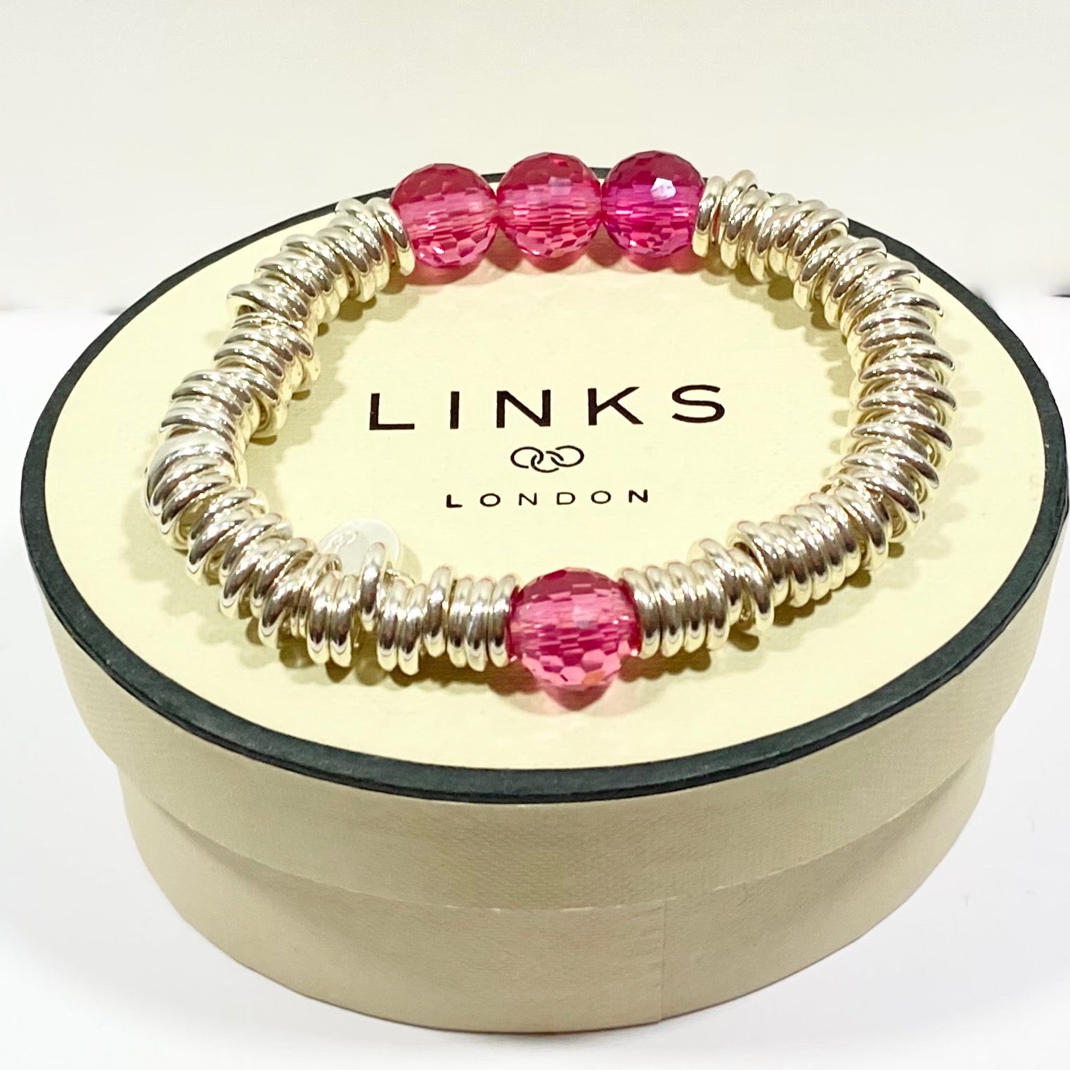 It looks absolutely stunning and a statement piece, you can add charms as and when you require. Sterling Silver and Rose Quartz faceted Gemstones. The Bracelet also comes with 3 Charm links to add your Links of London Charms as and when you want.