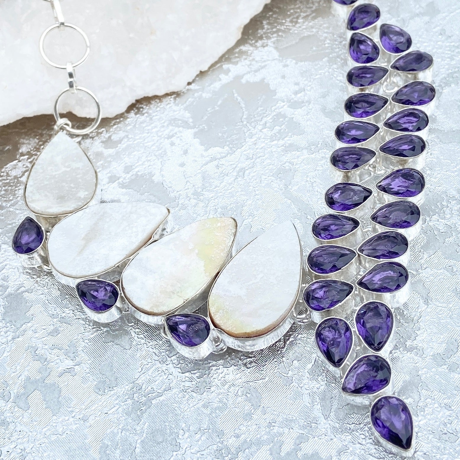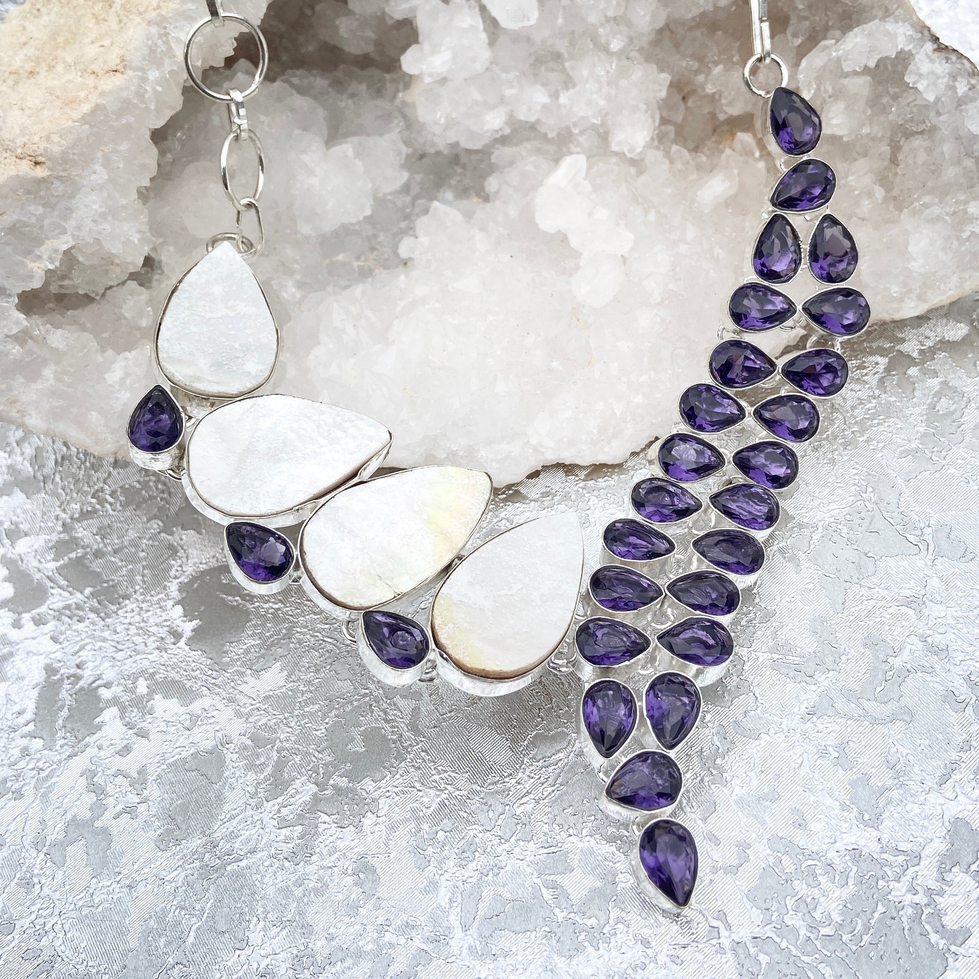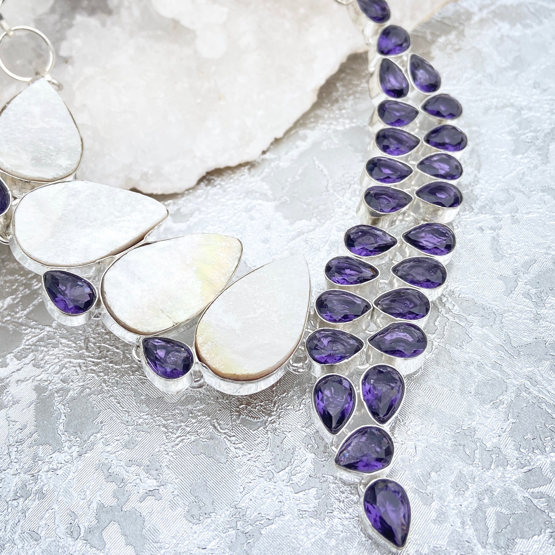 #Gemstone #Gemstonenecklace #Motherofpearl #Amethyst #Handmade #thejewelleryparty