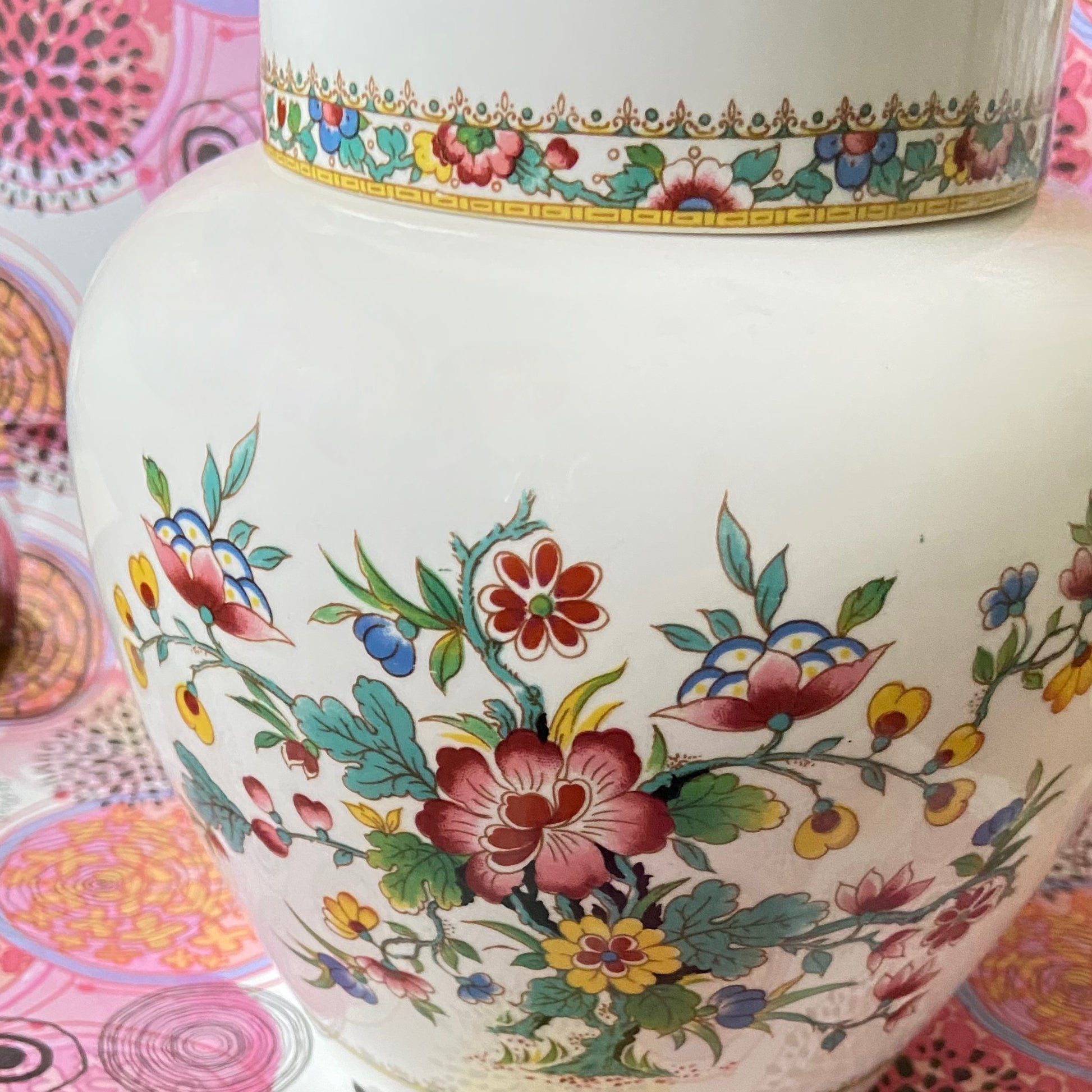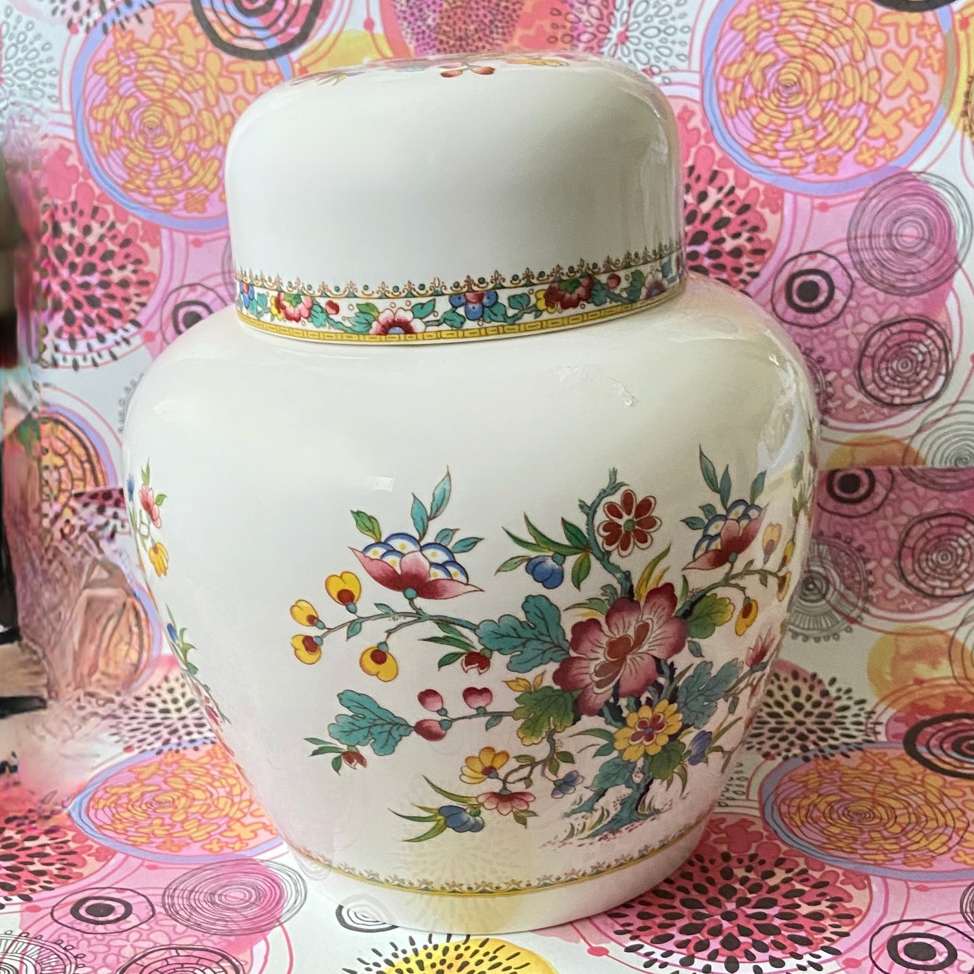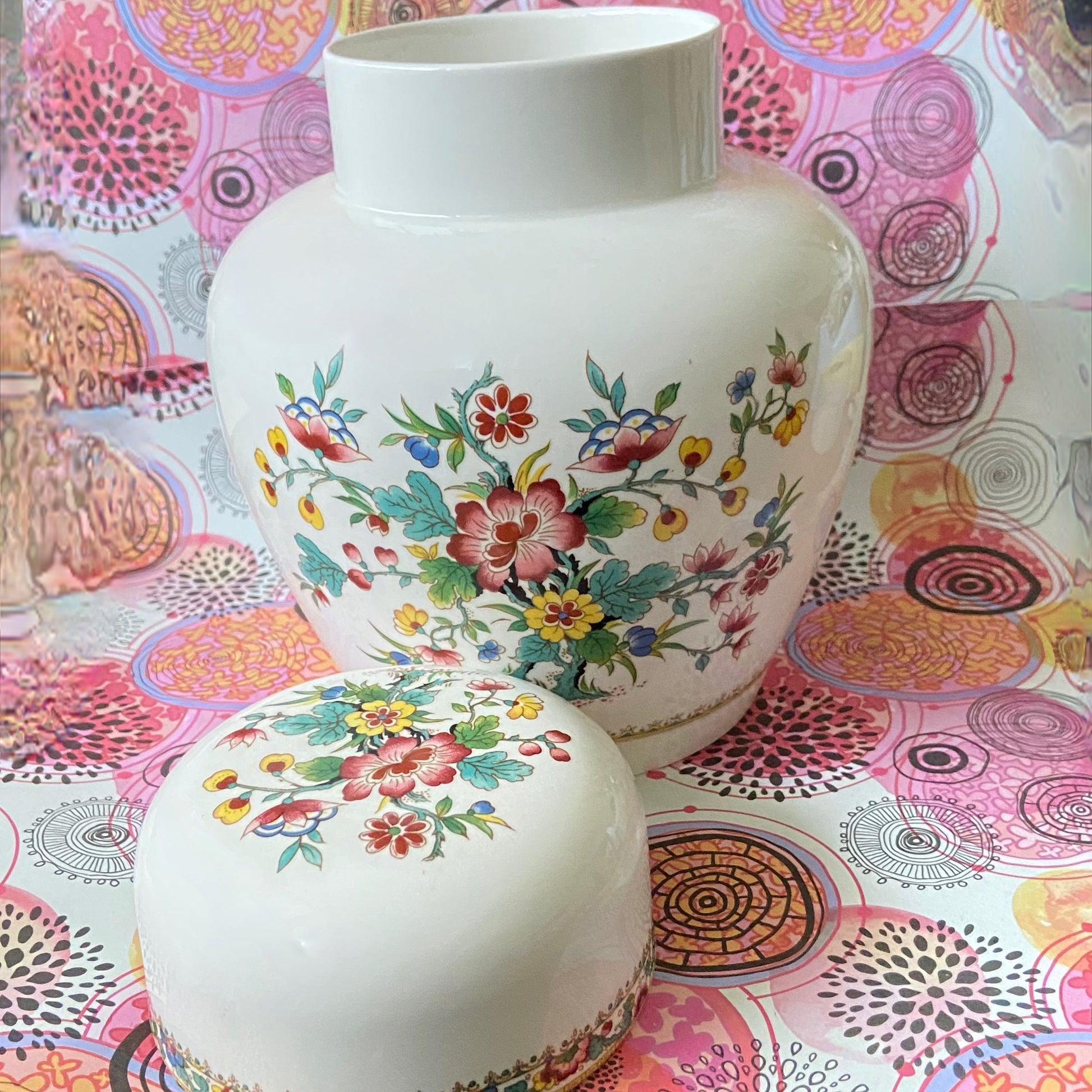 Vintage Fine Bone China Coalport Made in England, Ming Rose, Ginger Jar produced 1970 to 1993. Aprox 17cm High