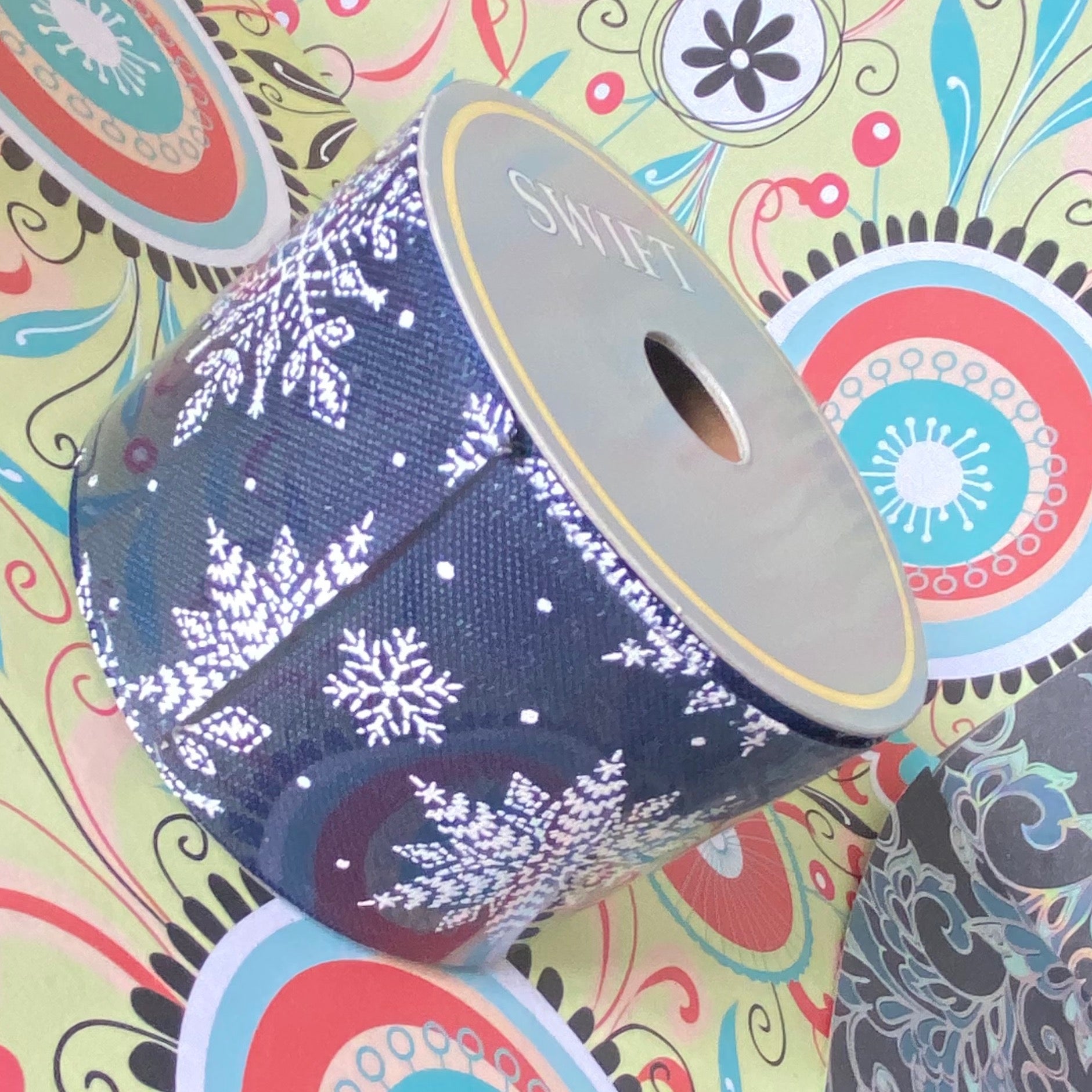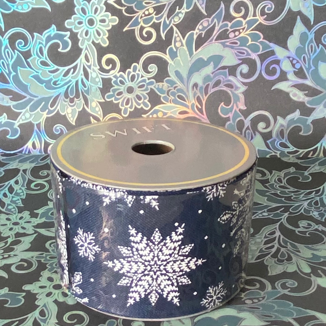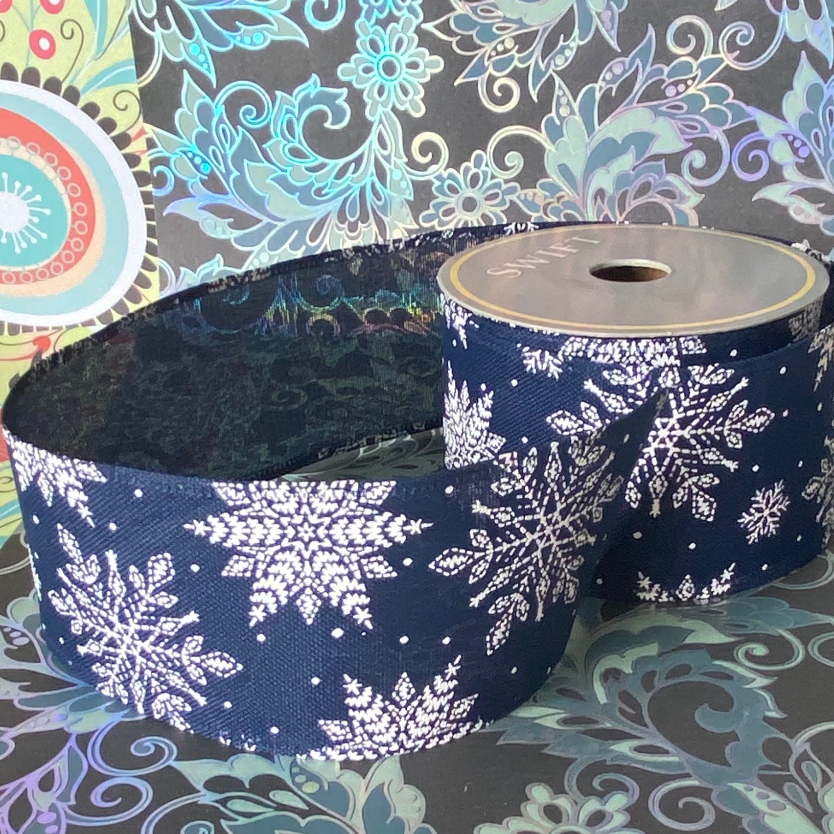 2.5" x 10 Yard Snowflake Design Ribbon midnight Blue colour