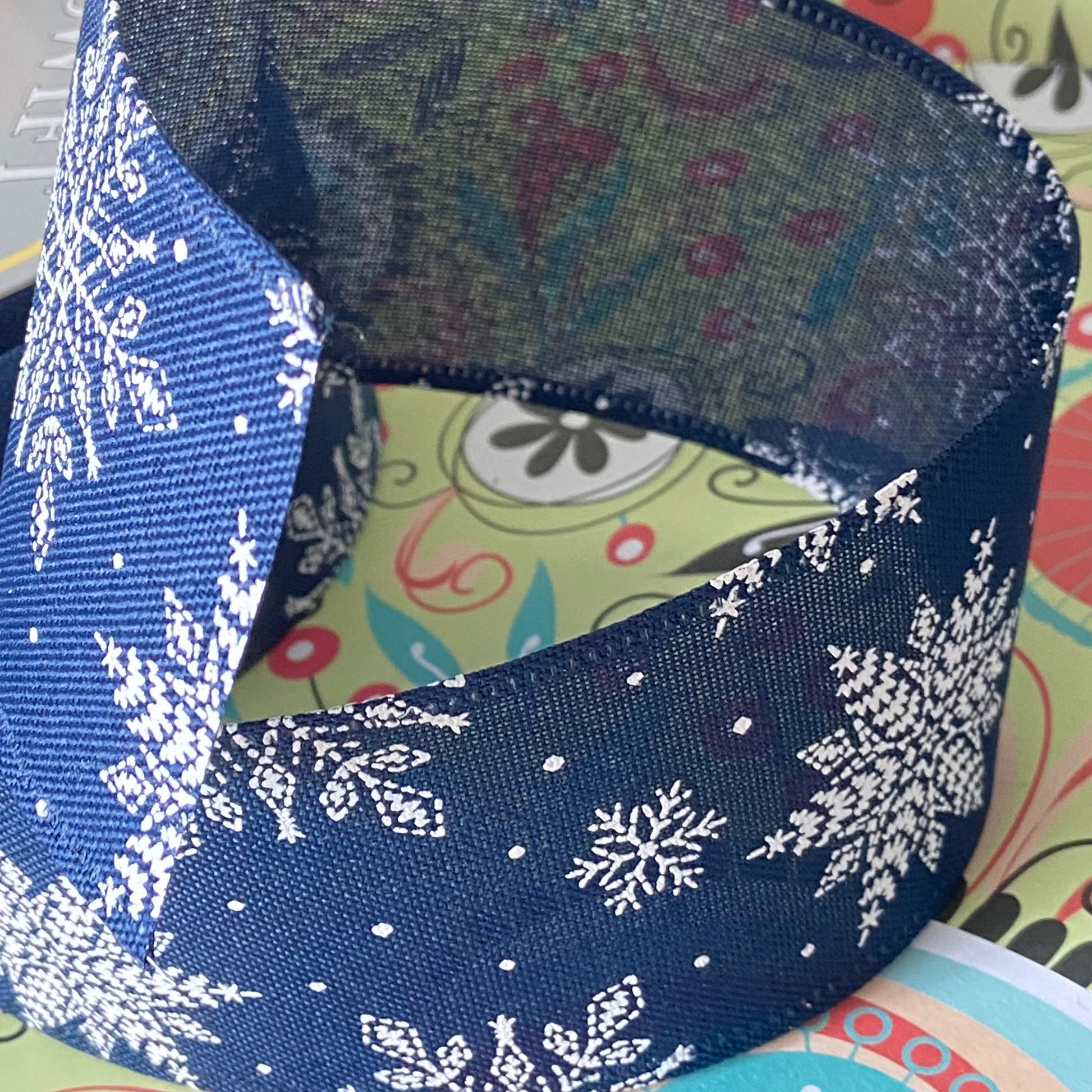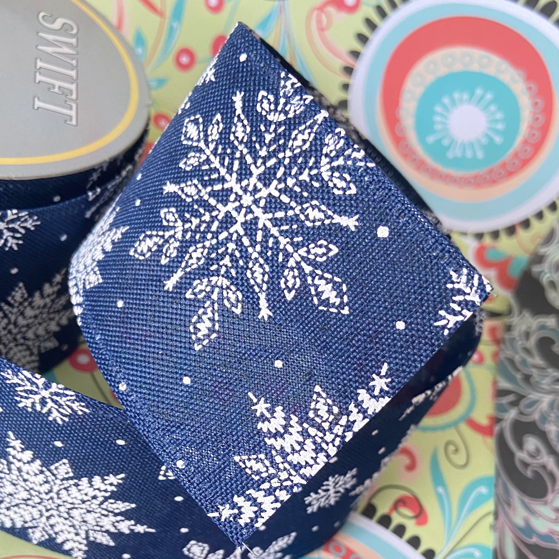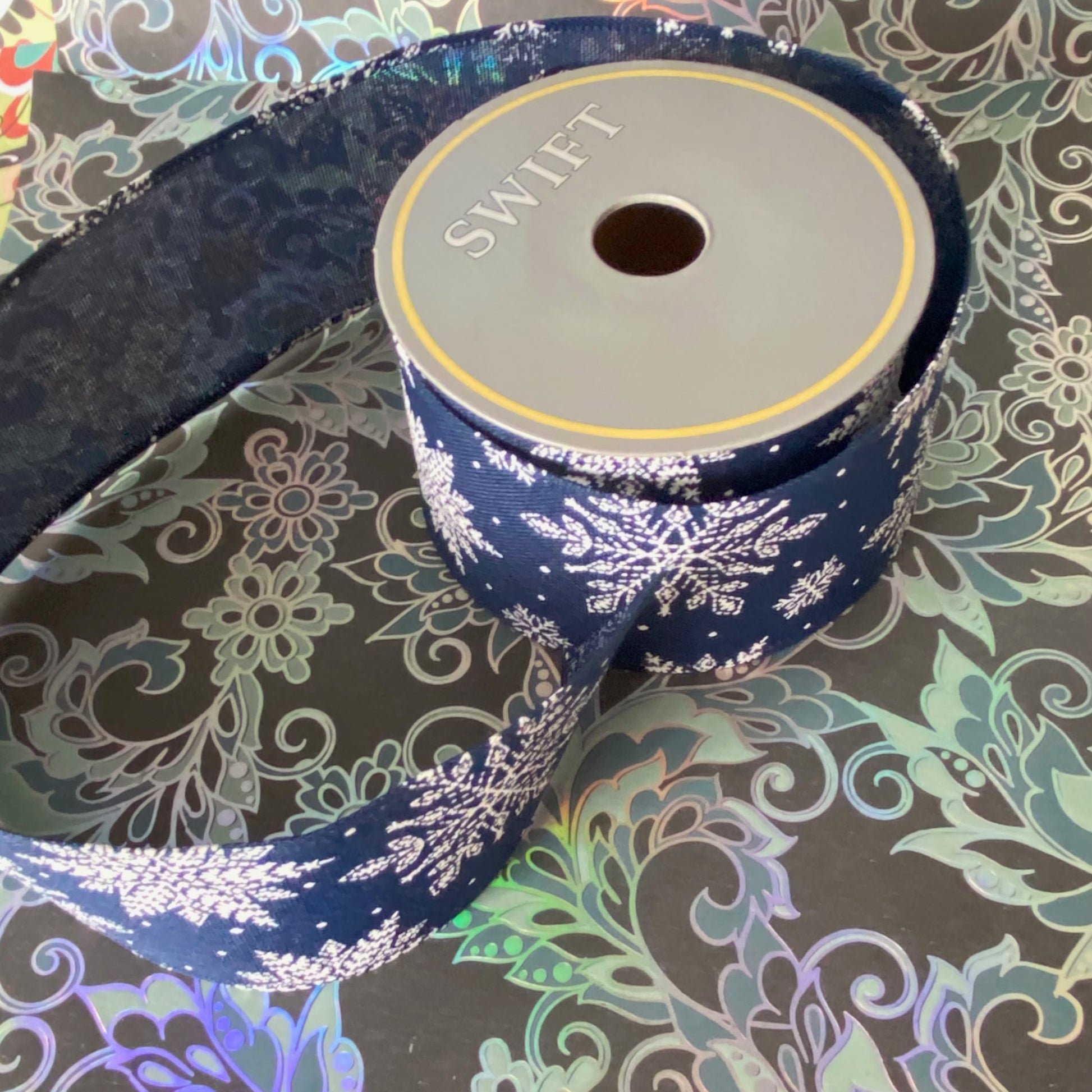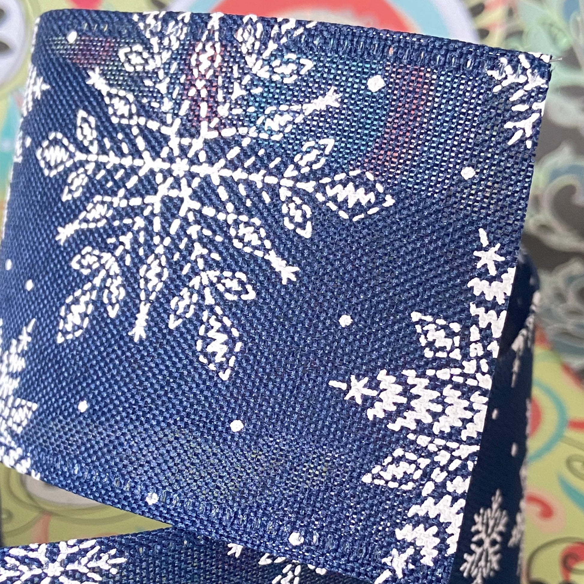 2.5" x 10 Yard Snowflake Design Ribbon midnight Blue colour
