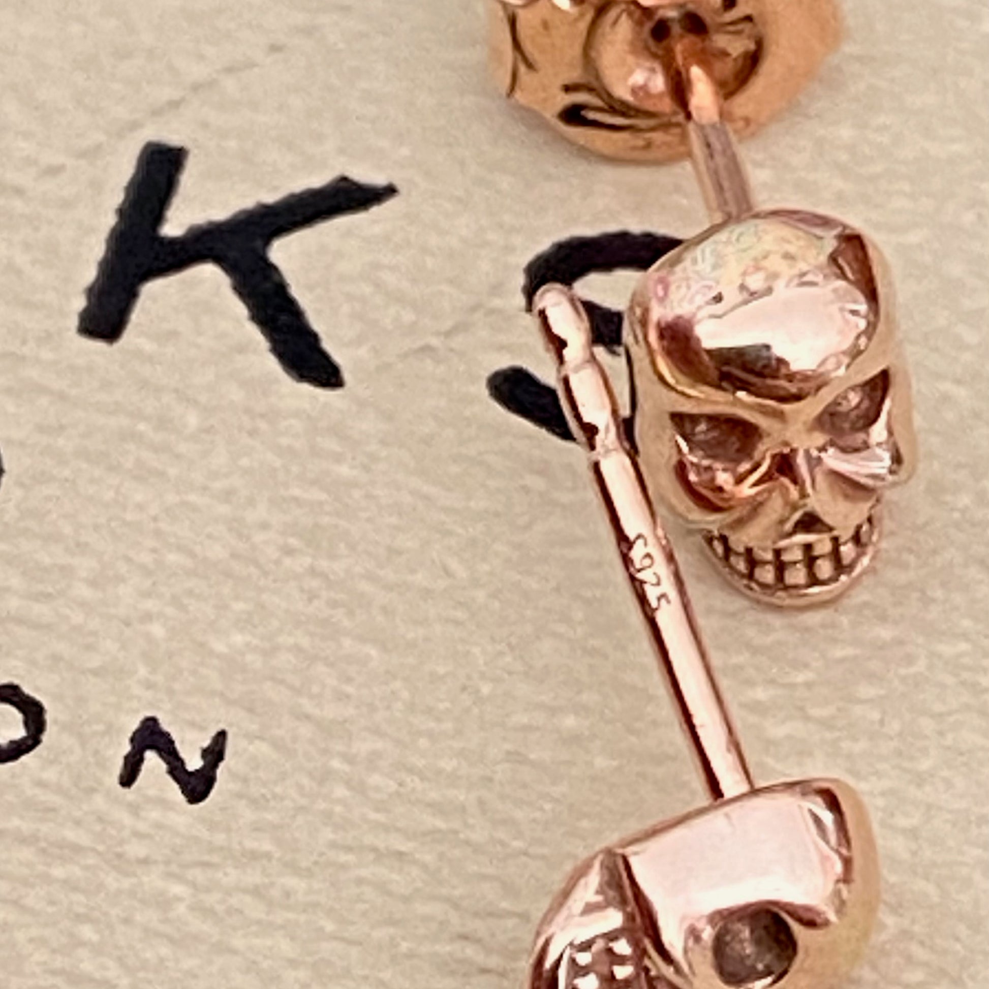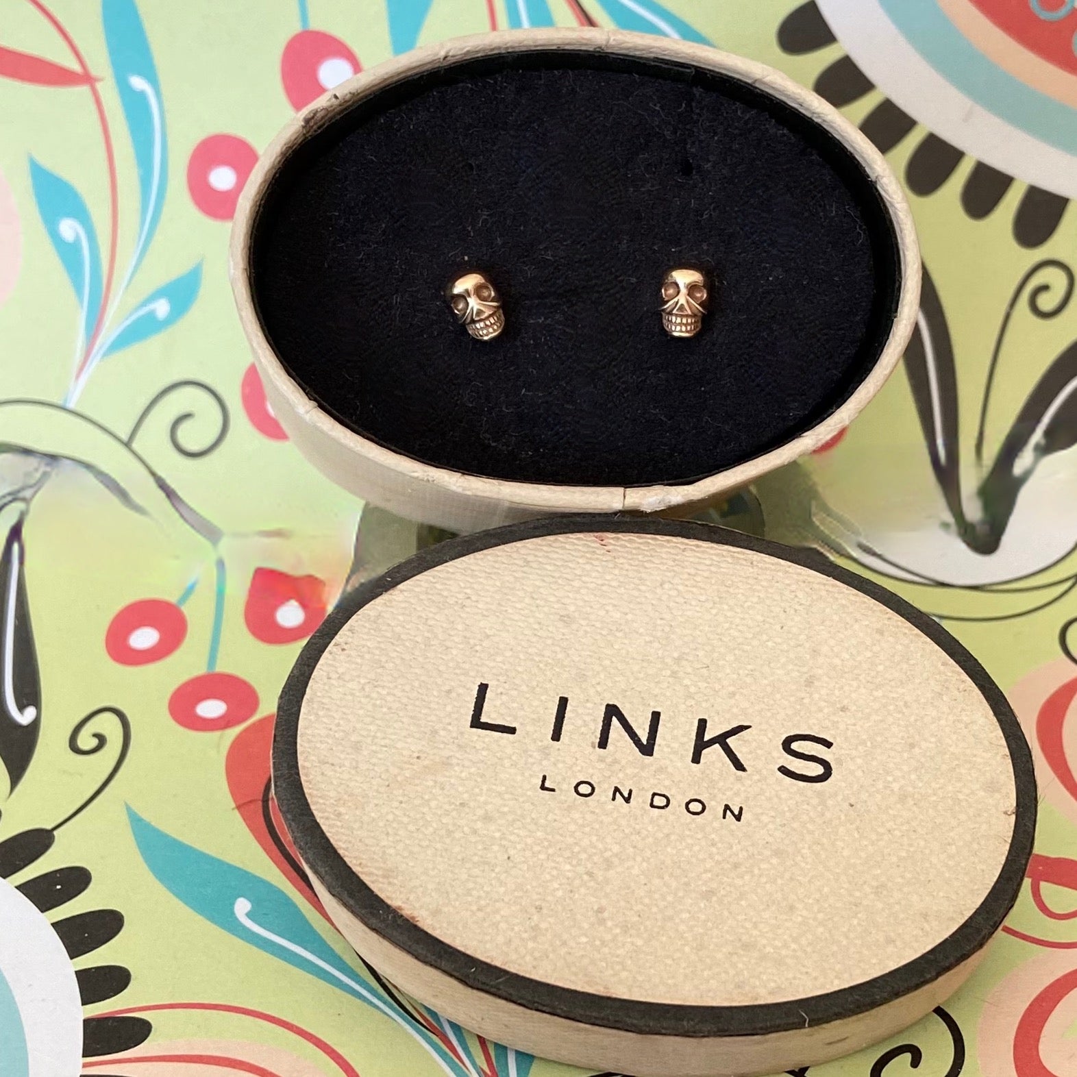 The Gold Vermeil earrings are for any time wear inspired by Skulls they can be gifted for any occasion. Lovely little Skull studs that can be worn every day. The earring stud is highly polished and has the famous Links of London Logo and the s925 stamp on the back, they are complimented with the gold Vermeil Butterfly backs Hallmarked s925. The Spine of the earring is also stamped s925.
