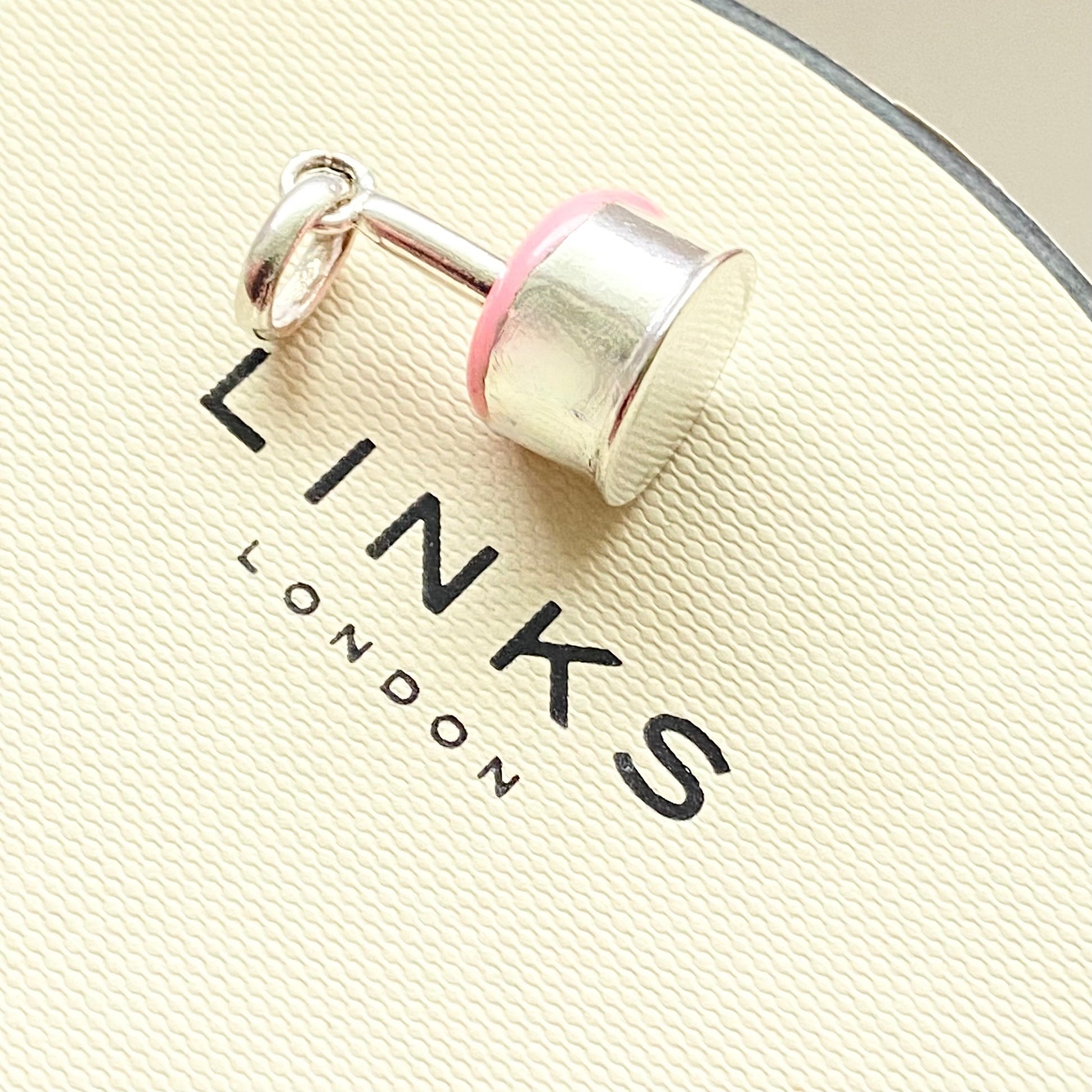 Links of London Sterling Silver 1st Birthday Cake 925 Charm with Pink Enamel.