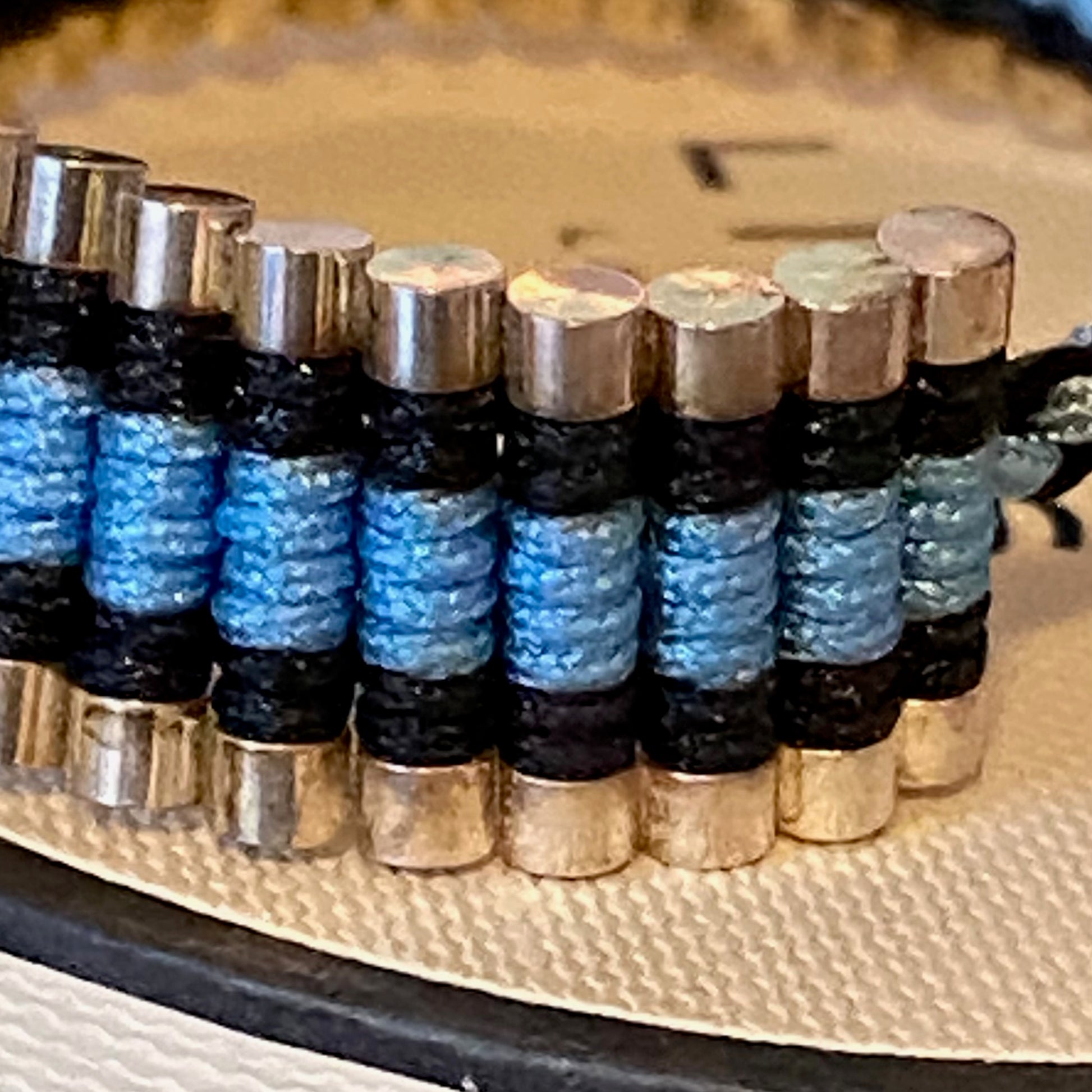 Crafted from Sterling Silver with Blue and black cord, the bracelet, it is adjustable so you can wear as you wish.