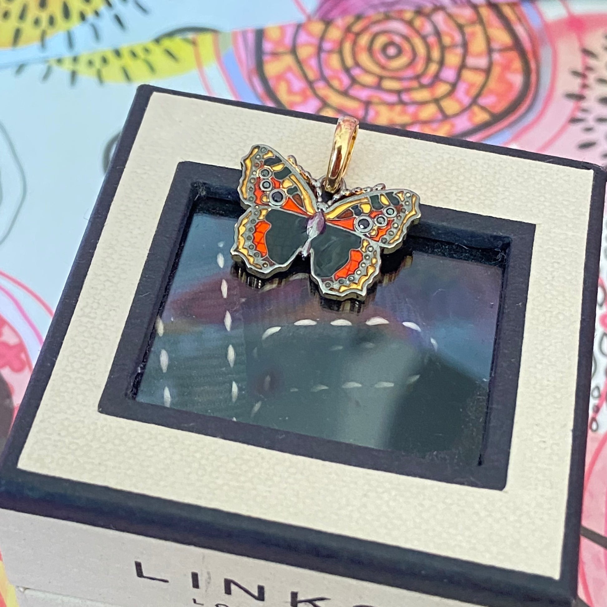 Links of London Butterfly Charm Pendant with Diamond and Sapphire Stones.