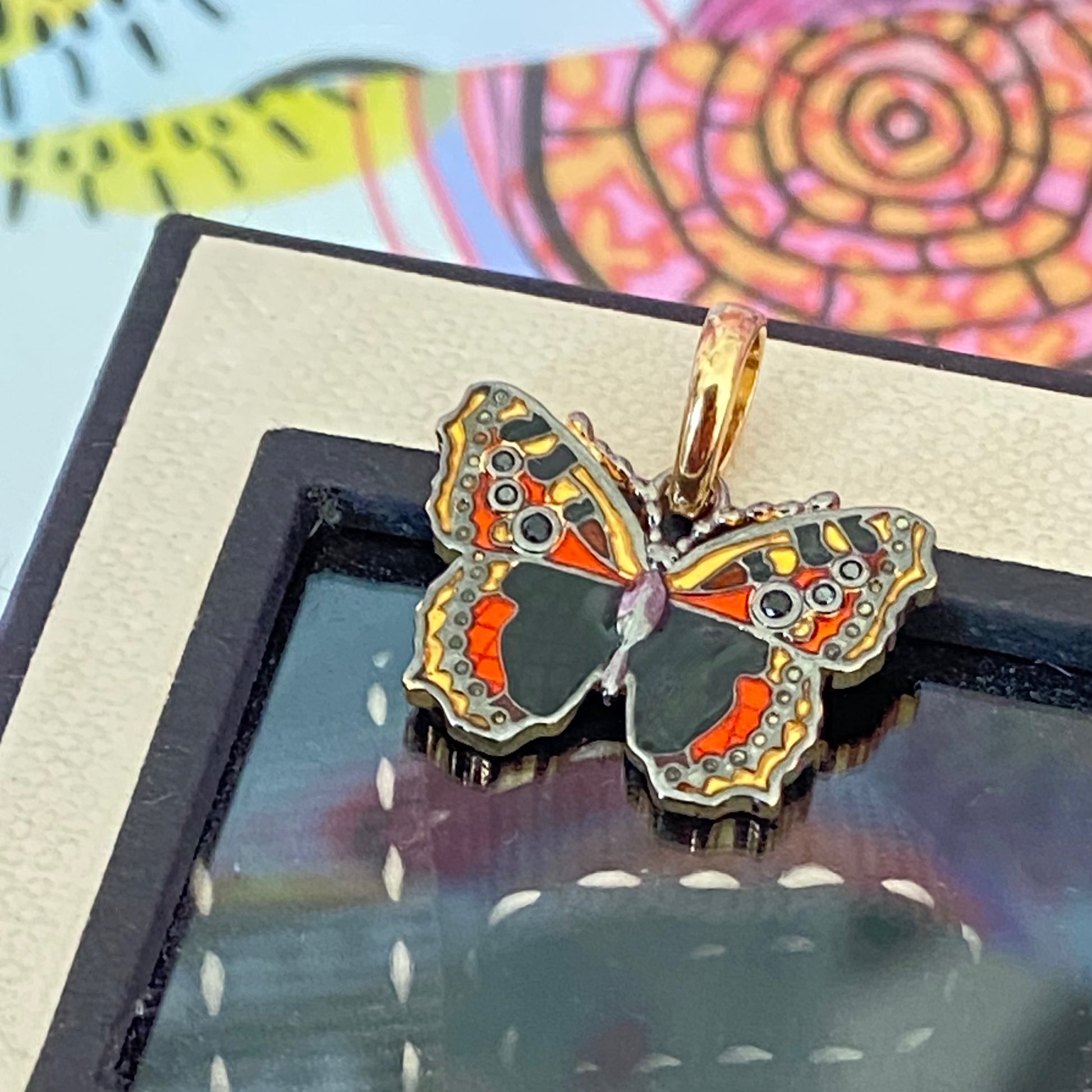 The 18kt yellow gold vermeil on both sides of this handcrafted charm with a range of colours in enamel.