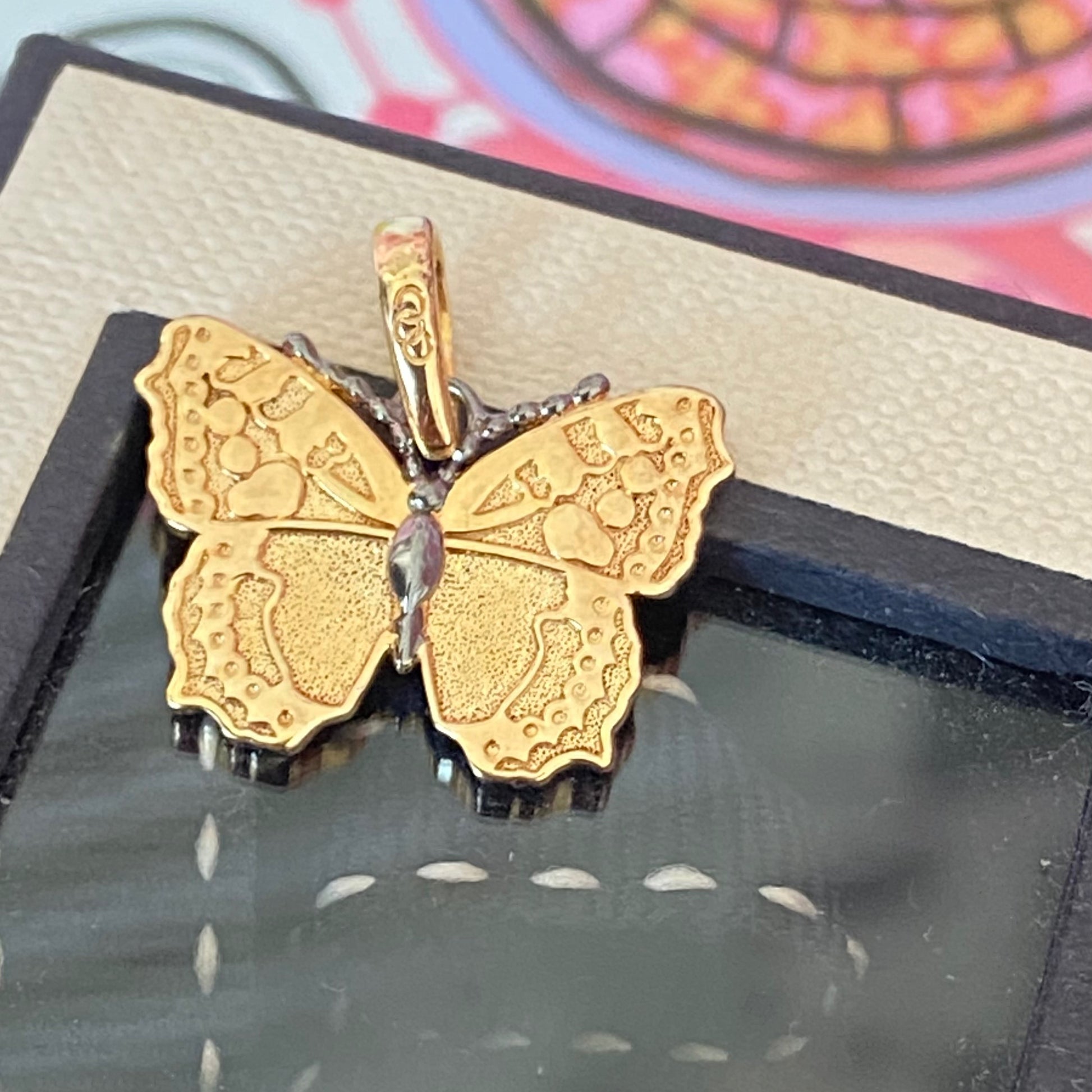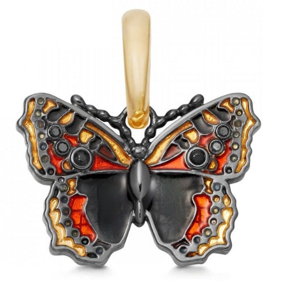 Butterfly hallmarked s925. with 18kt vermeil, black diamonds and sapphires. A beautiful array of .