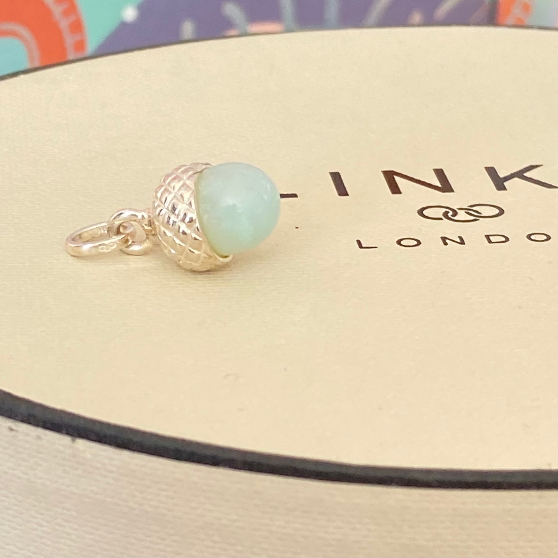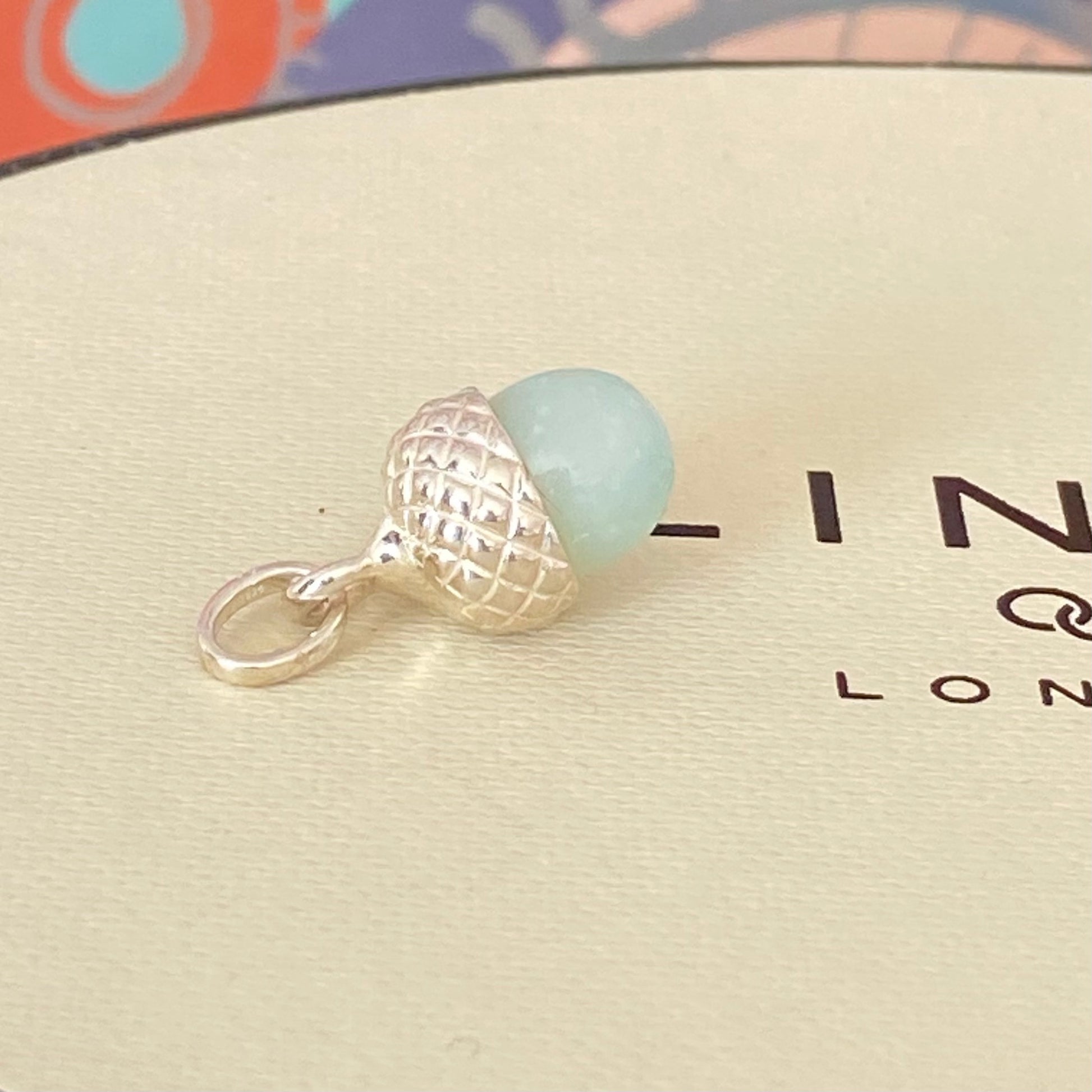 A symbol of luck and power, wear this pretty Love Note Acorn Amanzonite Charm on your charm bracelet or on a simple sterling silver chain for a unique necklace. Add this stunning green and silver acorn charm with others in the collection for a truly customised piece. The bale is slightly smaller than the traditional Charms as this charm is often used as a pendent.