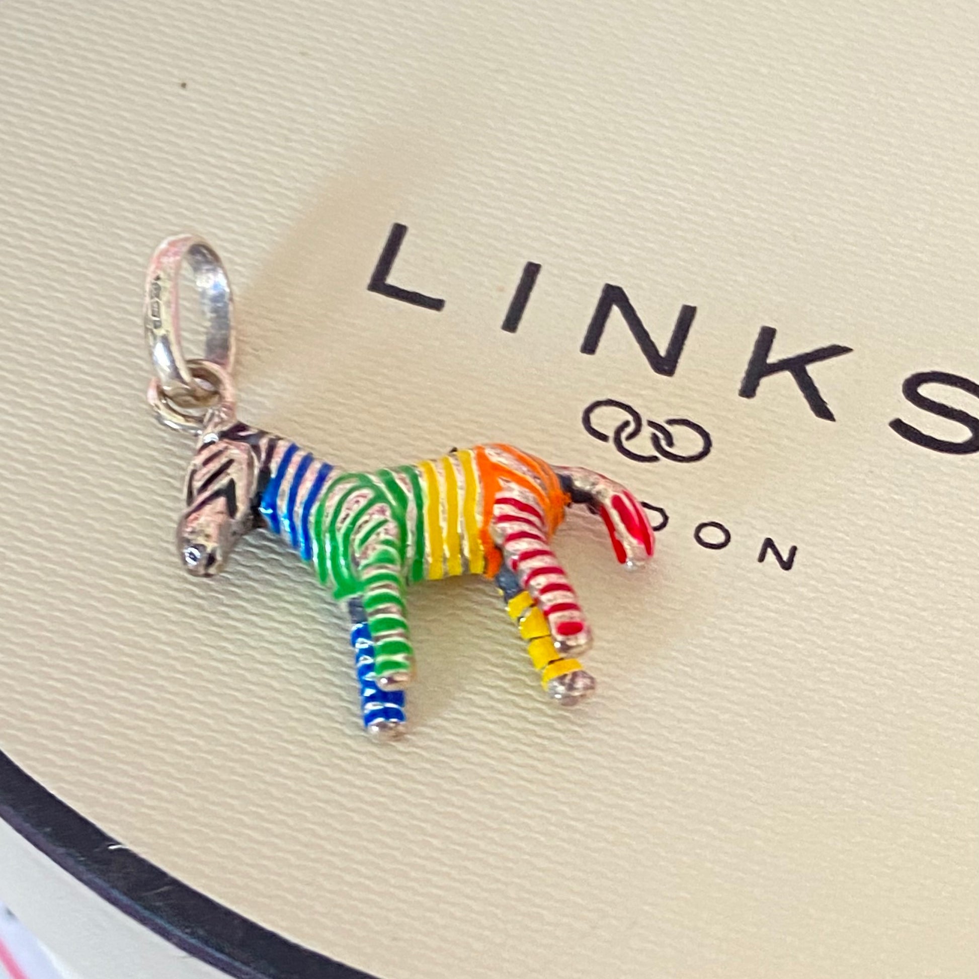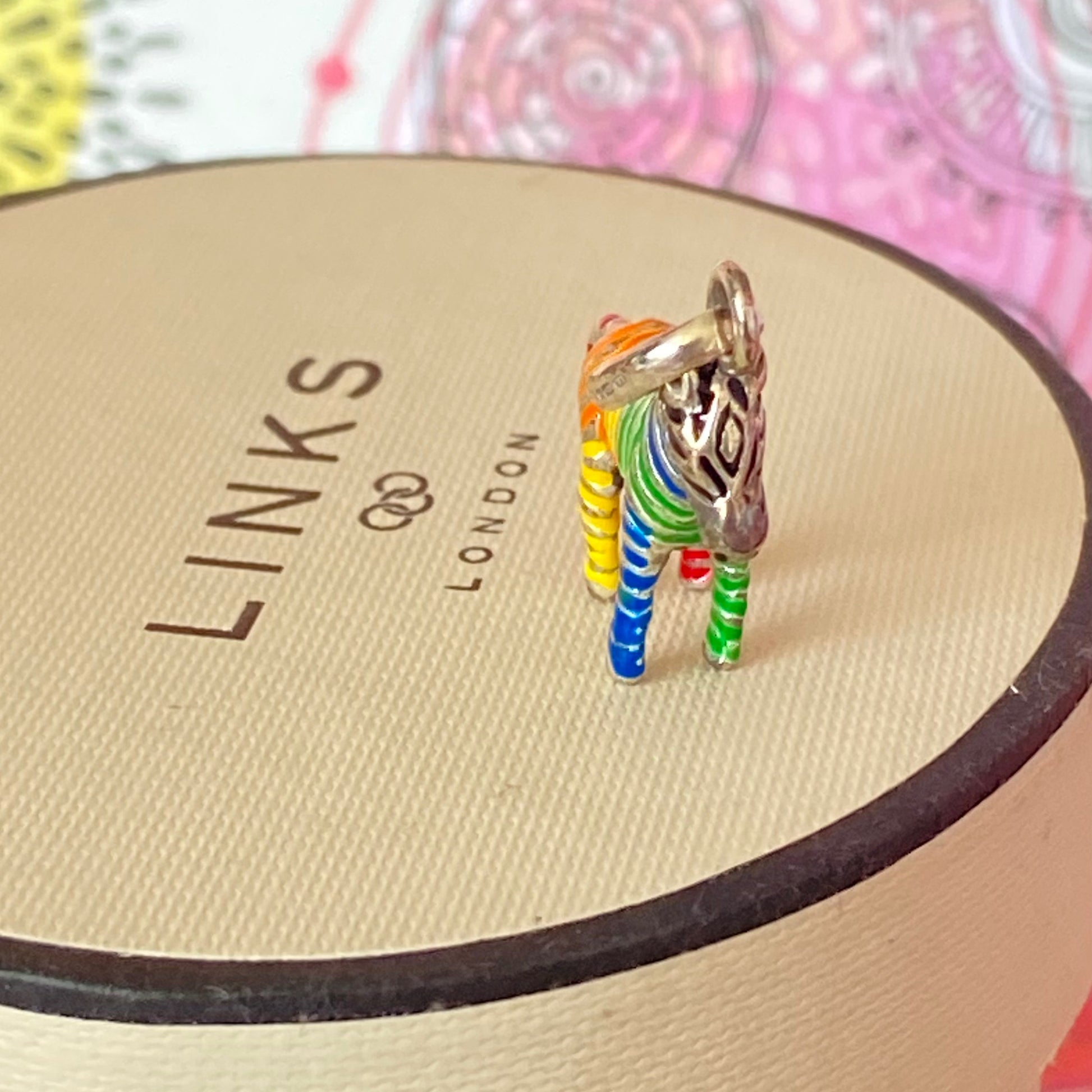 New! Links of London Enamel Rainbow Zebra charm crafted from Sterling Silver in the original box be the first to love it