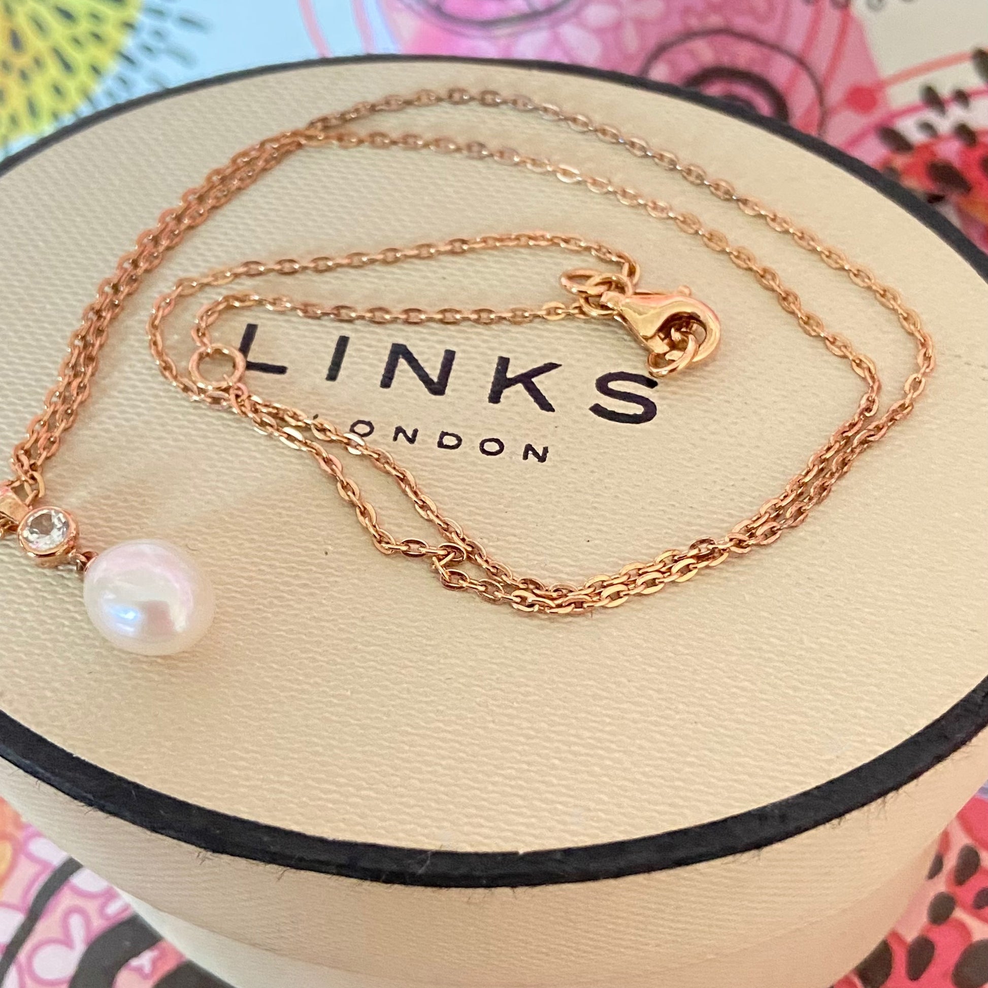 Links of London Necklace with 18ct Gold Vermeil Pearl Sapphire pendent