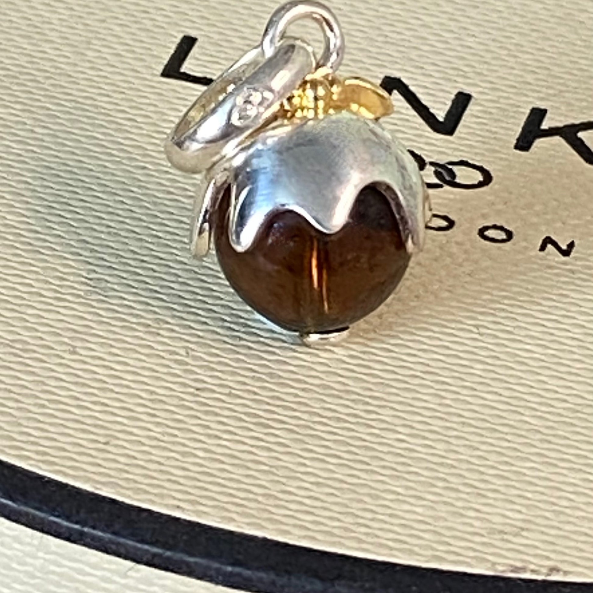 Links of London Sterling Silver 925 Christmas Pudding with 18ct Vermeil Ribbon Charm New!