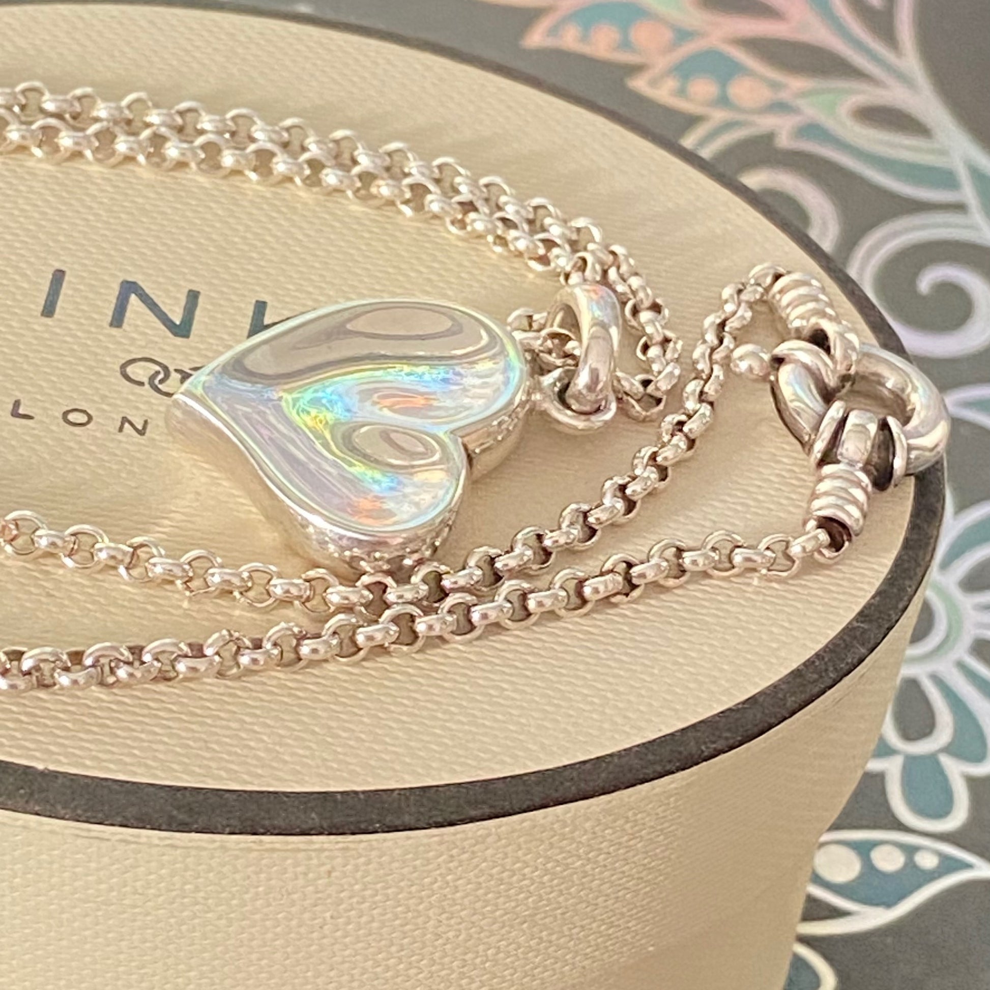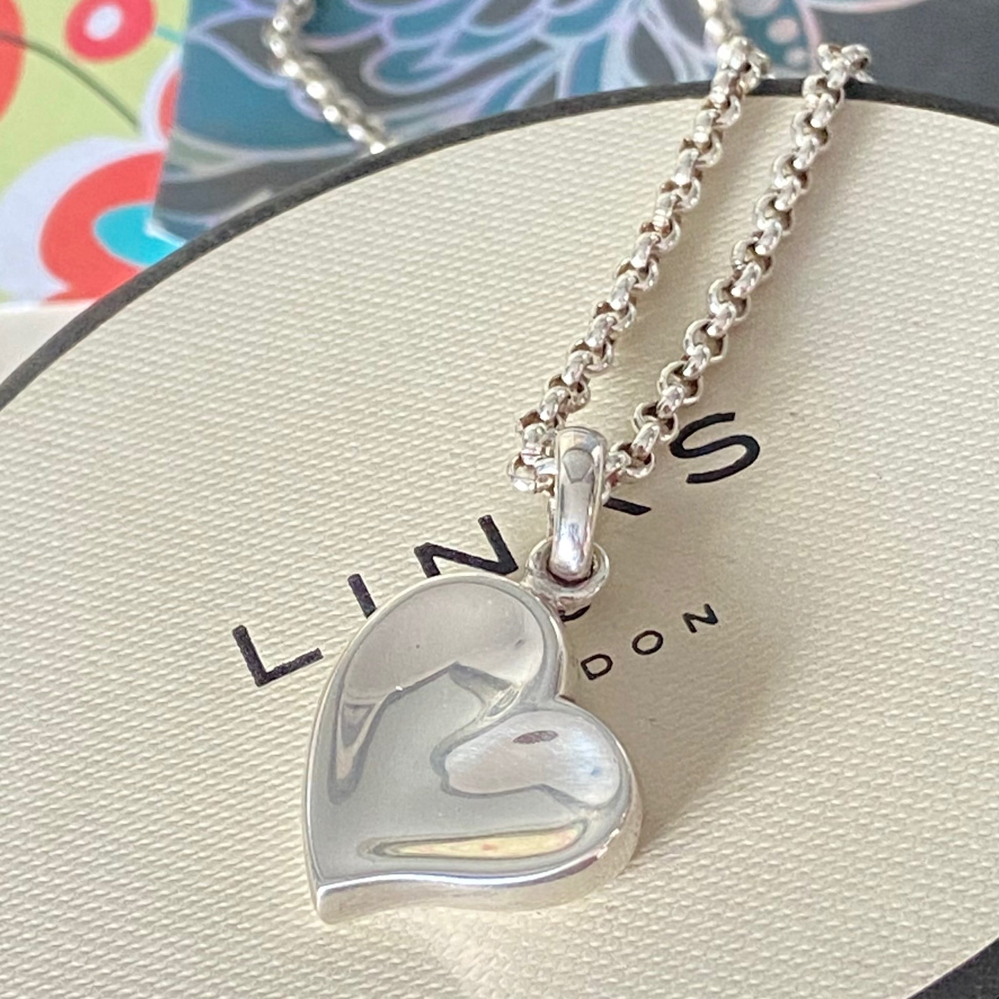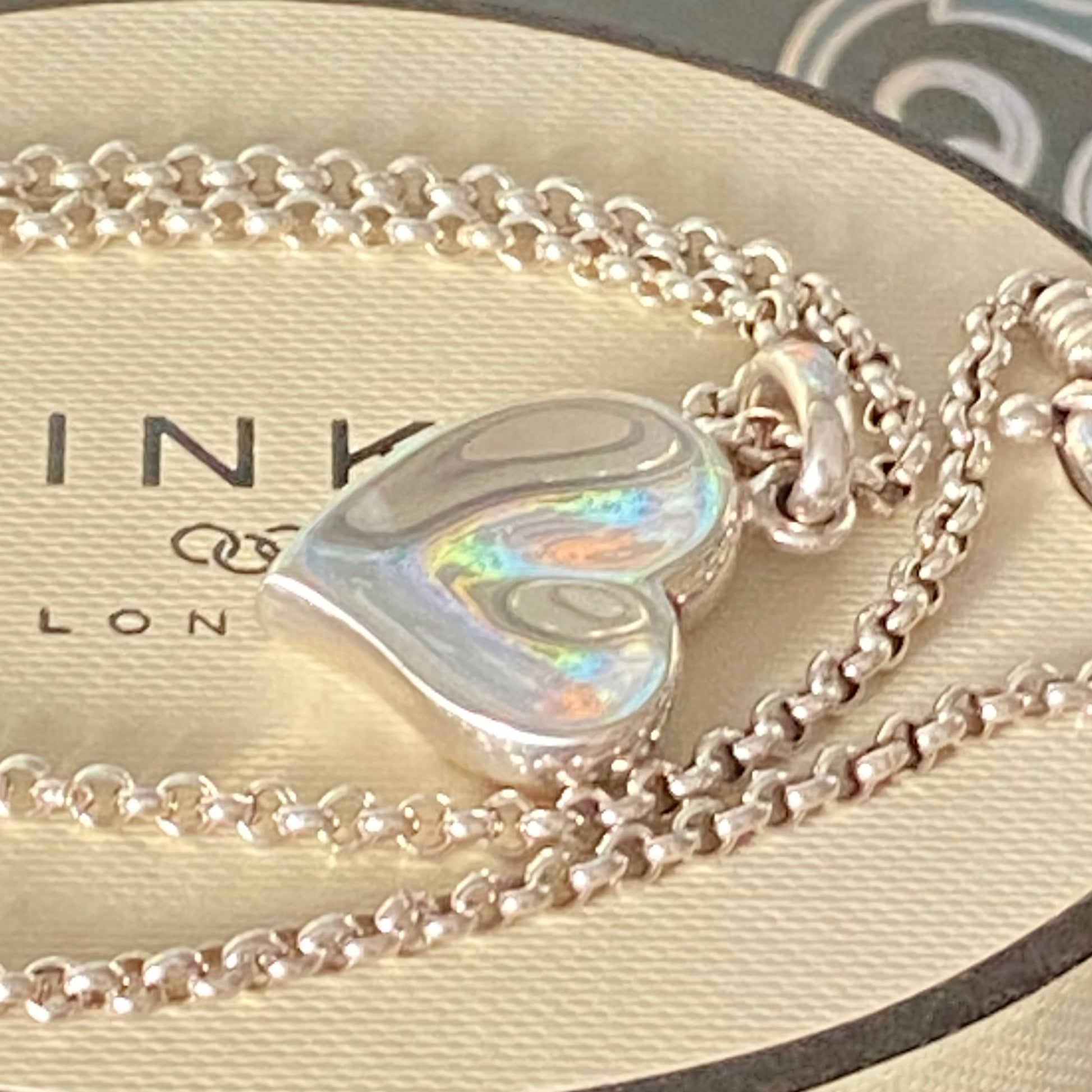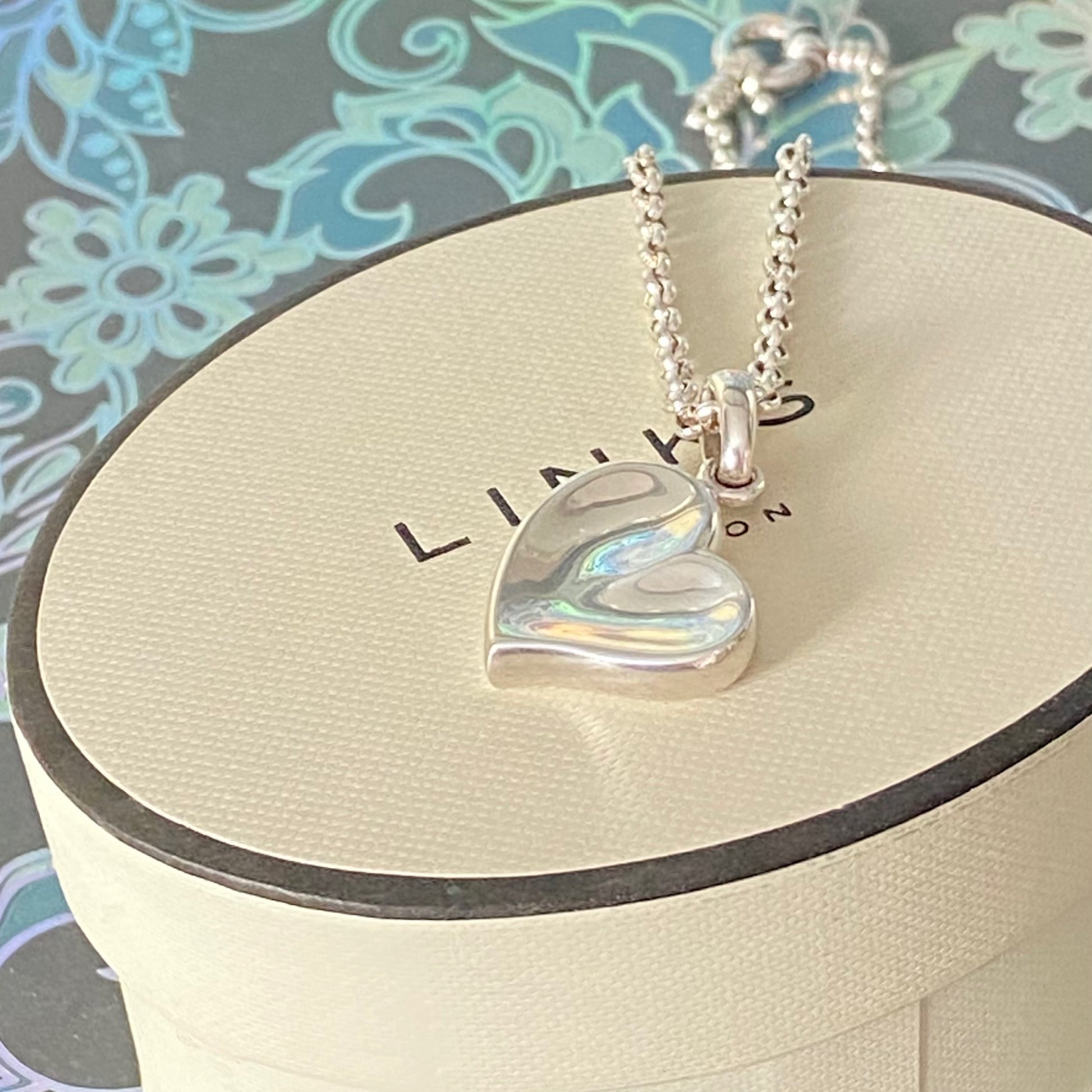 Beautiful addition to a jewellery collection. you can wear this during the day or perfect for the evening. The Links of London Hallmark is on the loop of the clasp. The necklace is in perfect condition, the heart has minor wear, which is not noticeble unless you look very close. It is not easy to photograph the wear as it is tiny. Never the less who ever wears this will feel stunning it really is a lovely item. The item will arrive in the beautiful Blue leatherette box with a gold clasp.