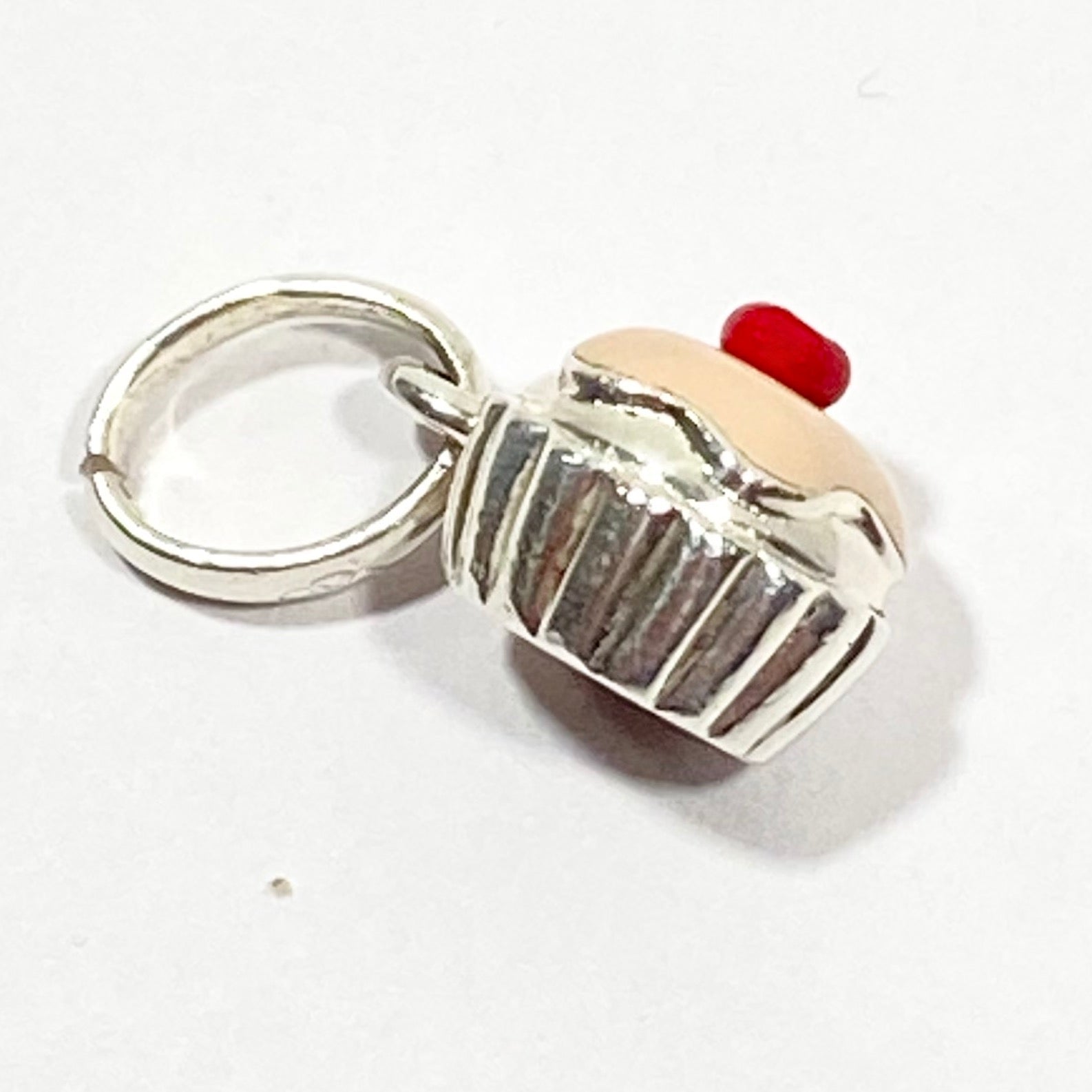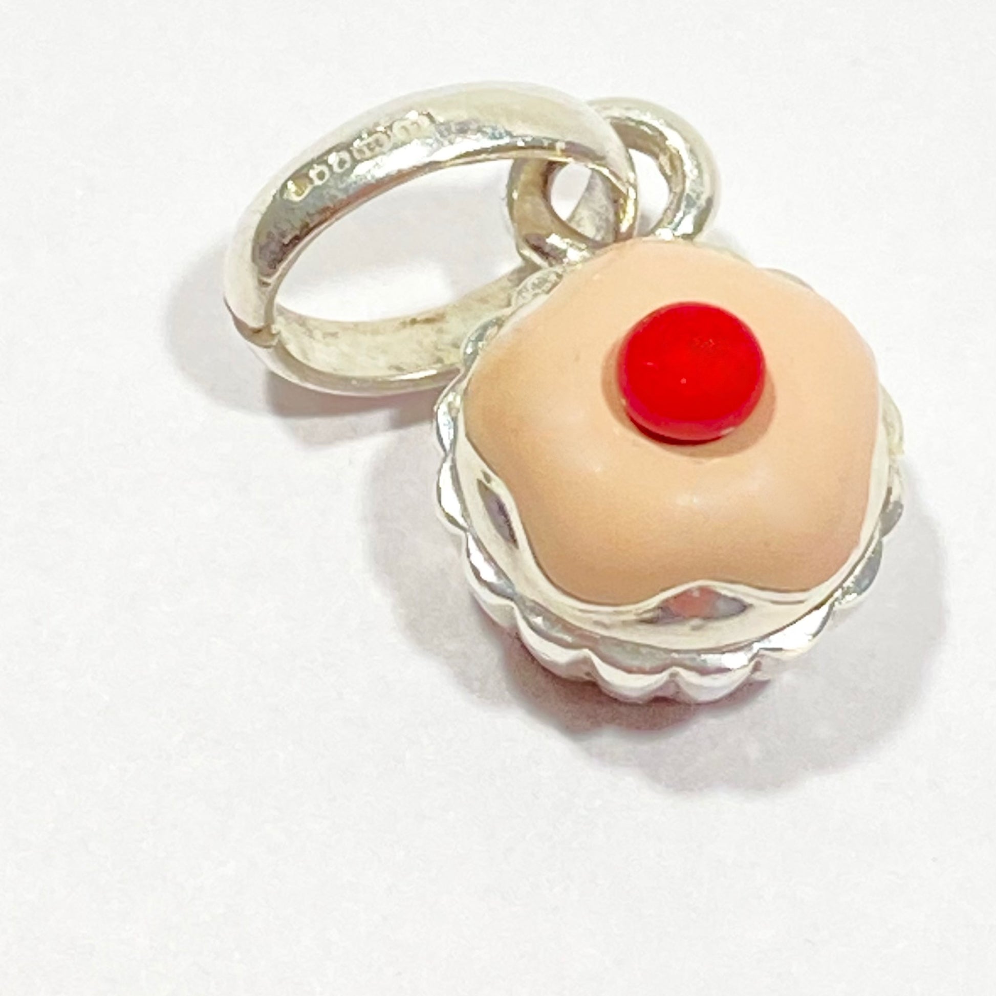 2011 vintage Links of London Pink Cupcake Charm is crafted from sterling silver with pink enamel icing and a cherry on top