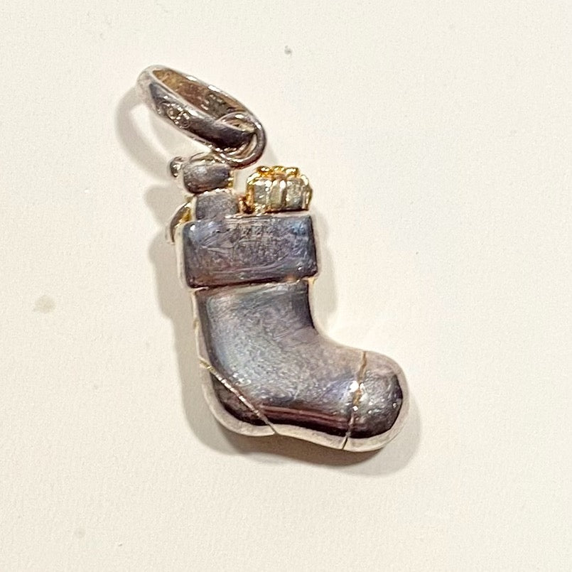 Links of London Sterling Silver Festive Keepsake Christmas Stocking. This item is new in the original packaging. The Gold detail is 18K gold vermeil plated.