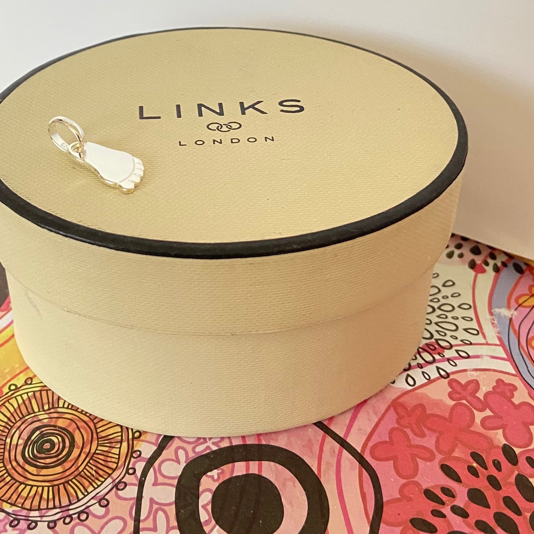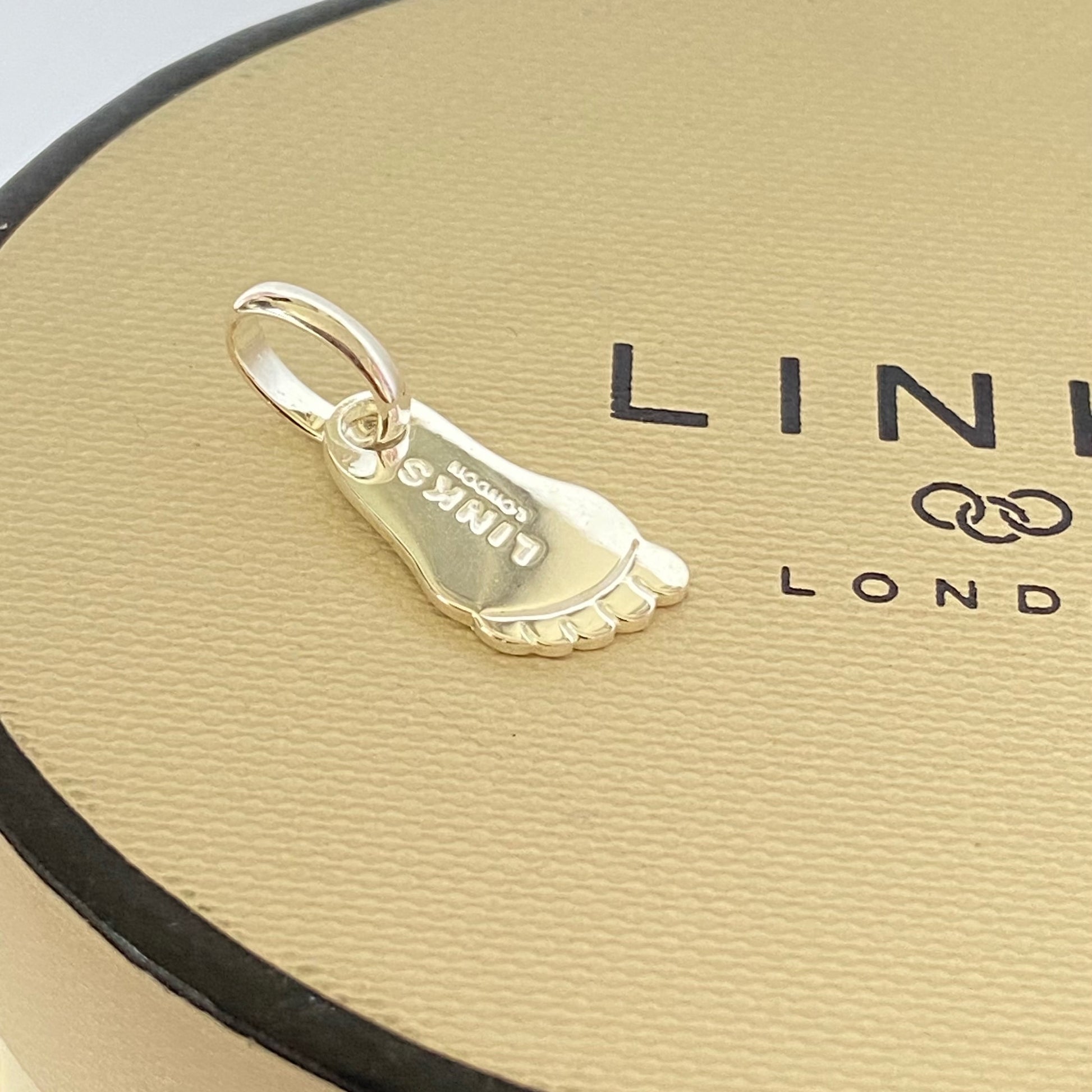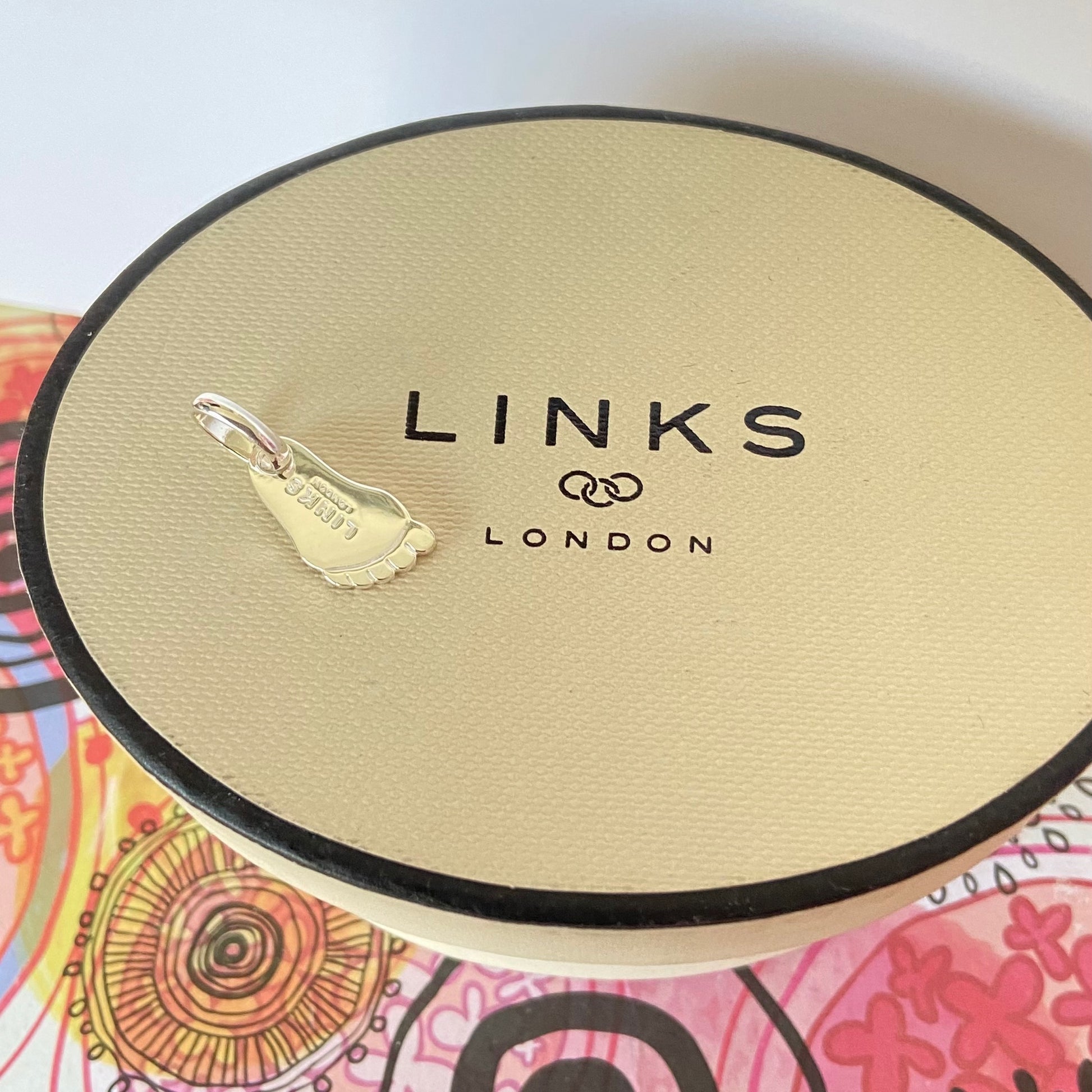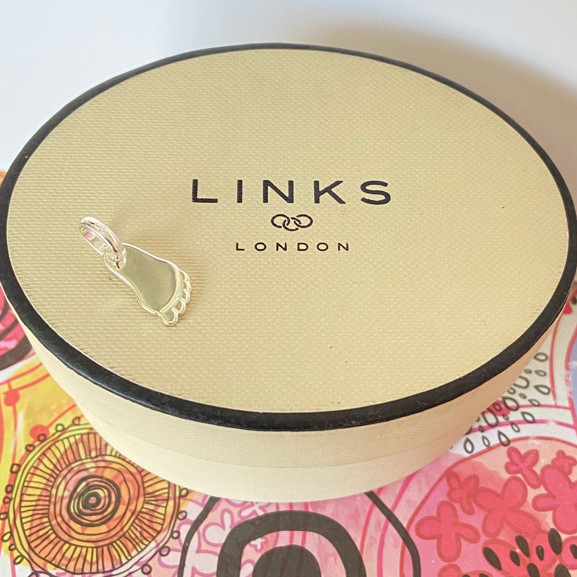 This sterling silver First Step charm is the perfect gift to celebrate the arrival of a new family member, with space to engrave 3-4 characters so you add a personal message. This charm has never been used and is in perfect condition in the original plastic pouch. Your item will be sent in a lovely unbranded box. The s925 hallmark is inside the bale with the Links of London logo on the outside of the ring.