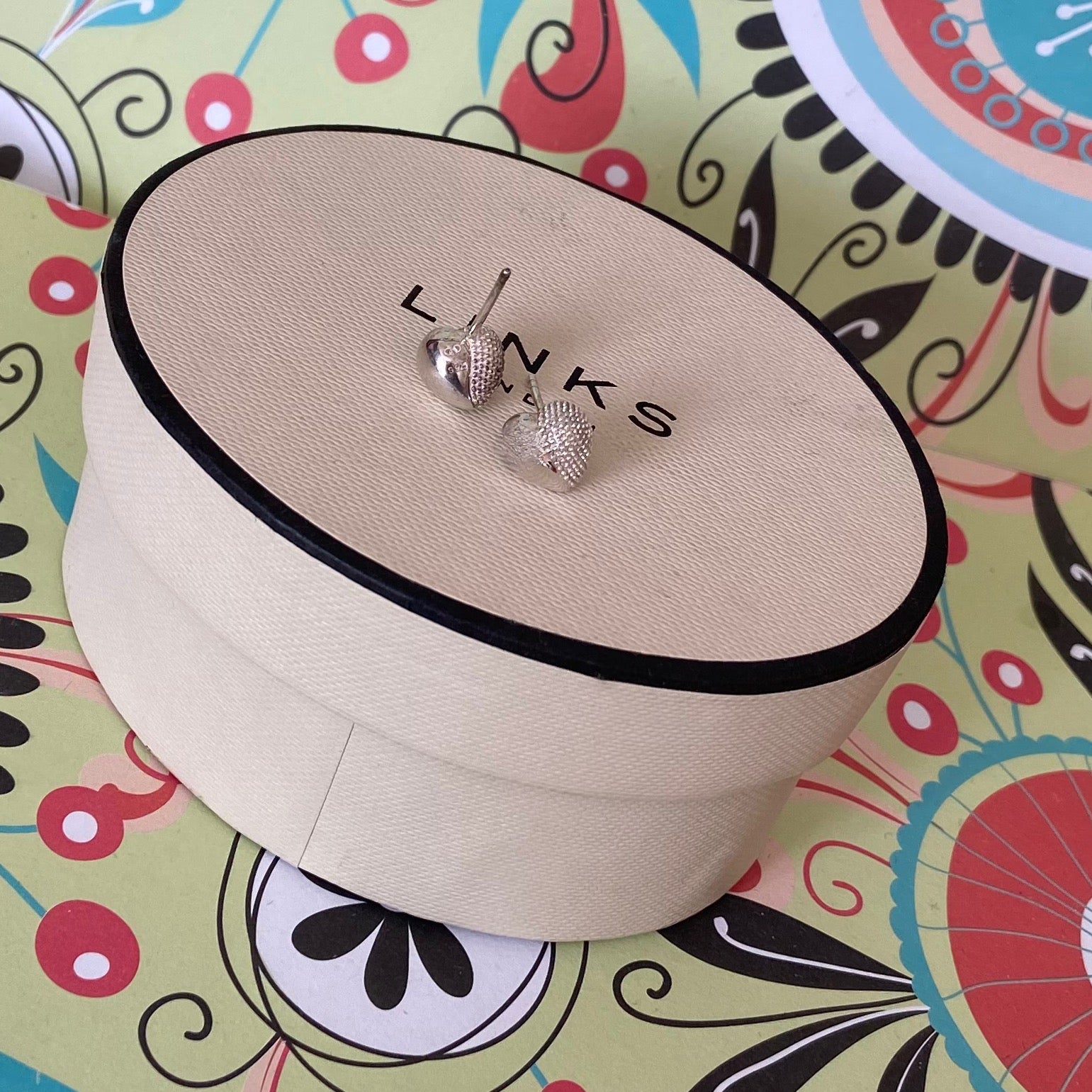 The earrings are crafted in Sterling silver and are stamped on the heart stud at the back S925 with the Links of London famous logo. The Earring backs are also stamped 925 Sterling Silver.