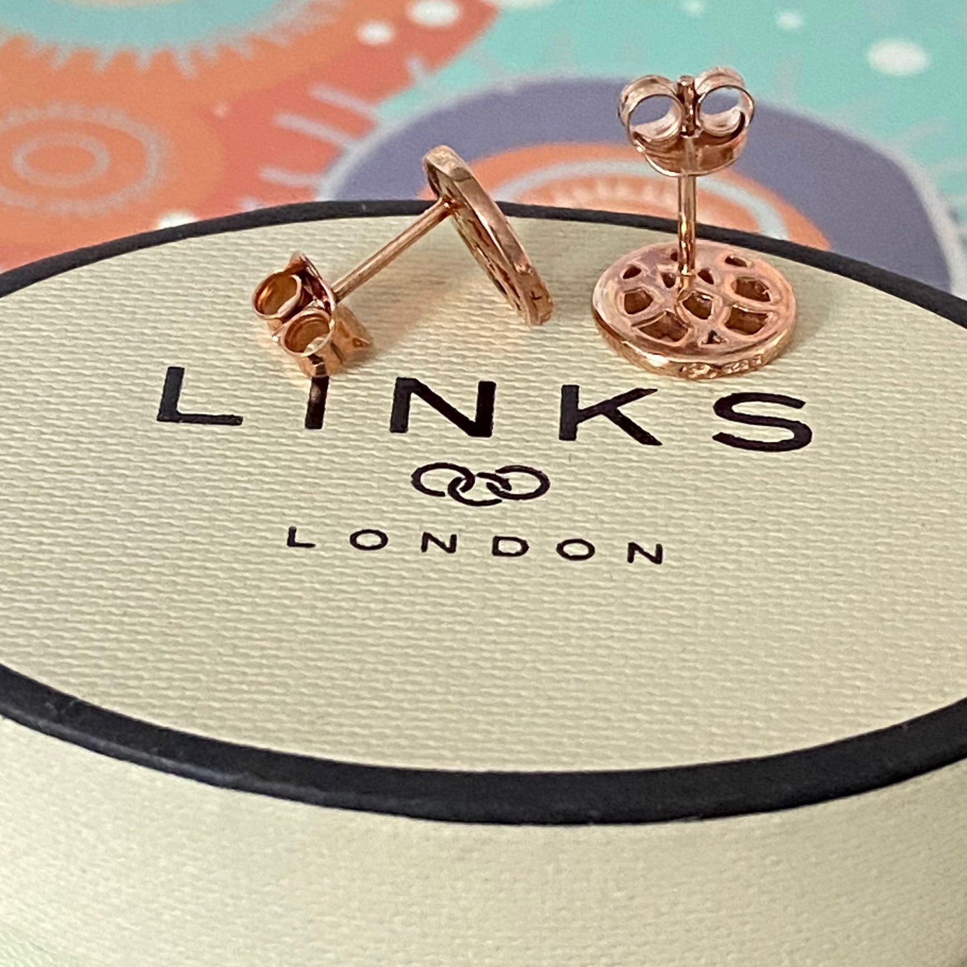 18kt Rose Gold Vermeil Stud Earrings, inspired by the face of Big Ben. Crafted in Sterling Silver with a 18kt rose Gold Vermeil, perfect for anytime wear. The earrings have the s925 and Links of London Logo located on the edge the stud, the official hallmark is on the spine of the earrings.