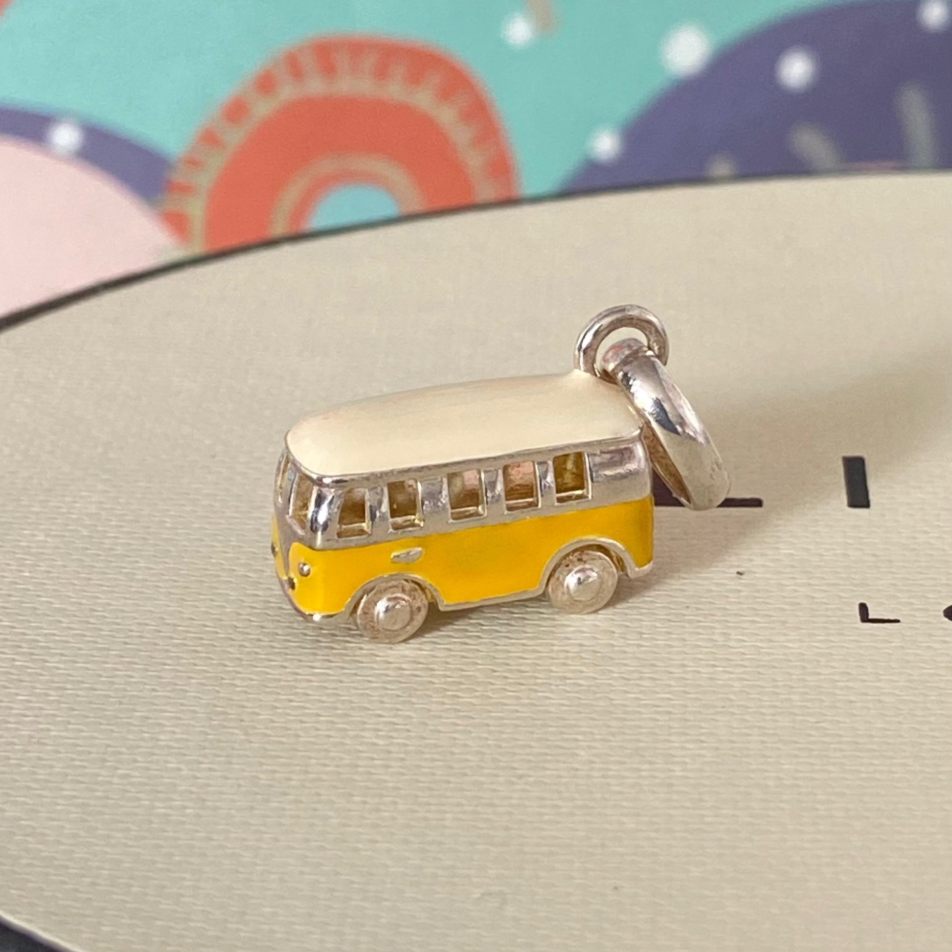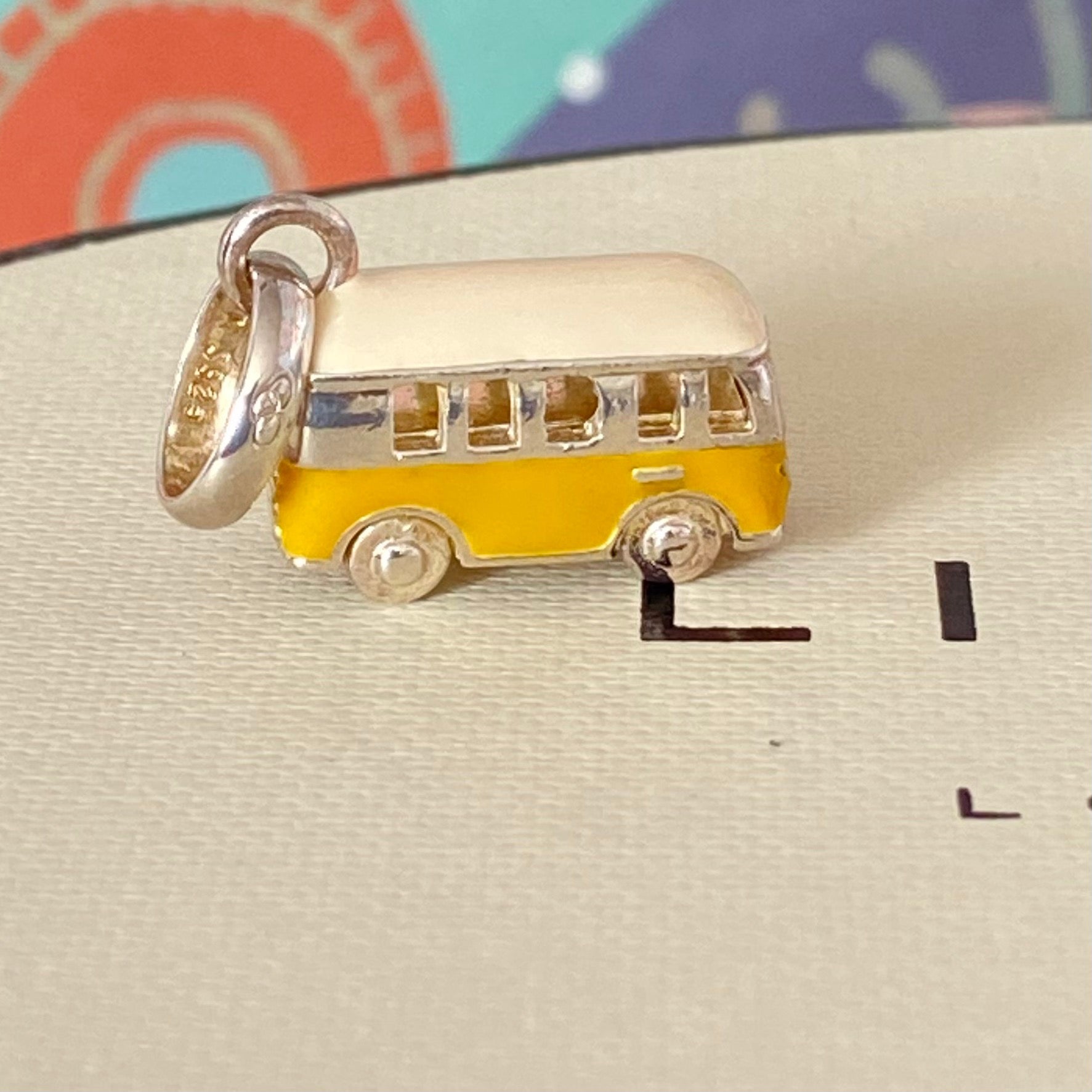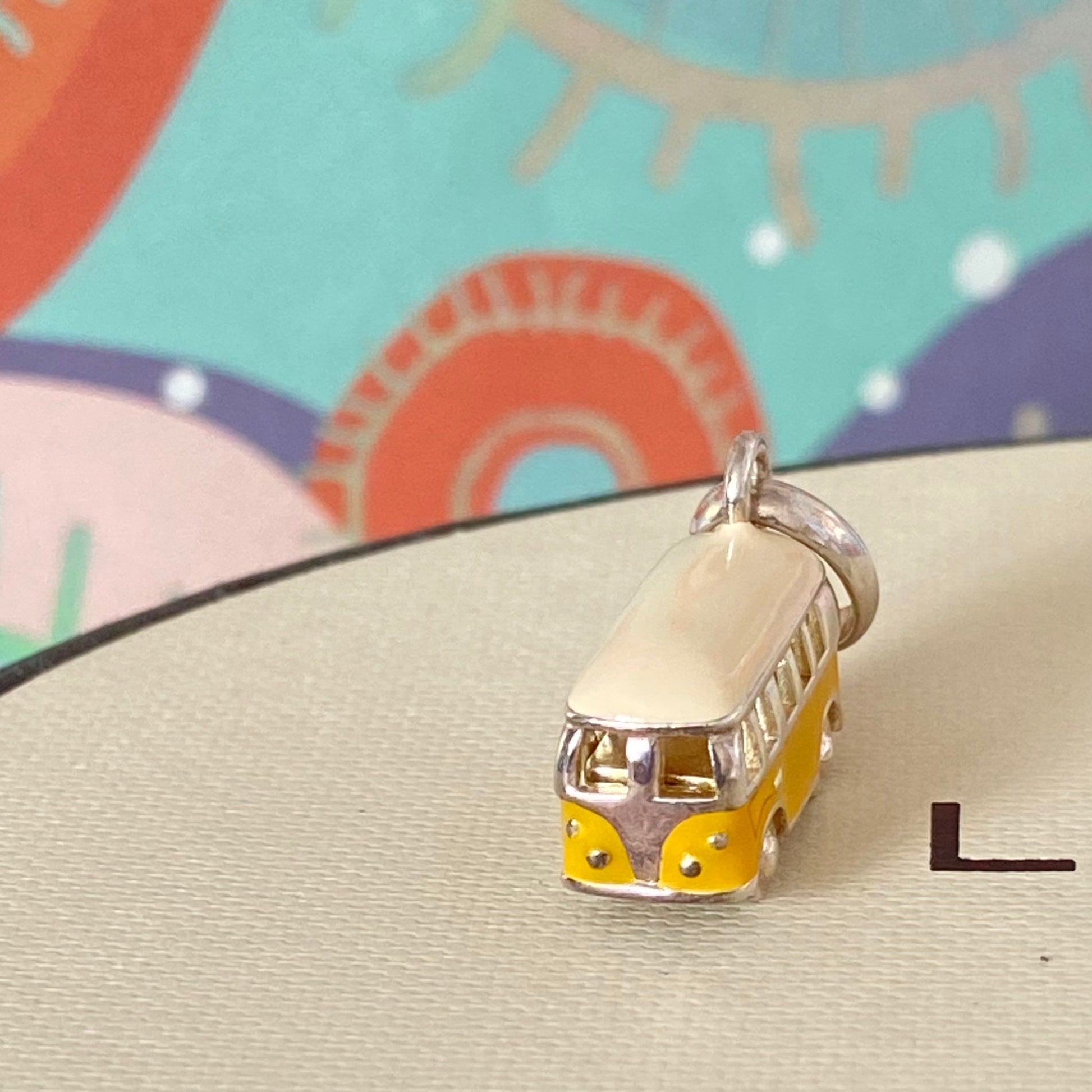 Links of London Yellow Camper van Charm , crafted in highly polished 925 Sterling Silver with cream and yellow enamel.