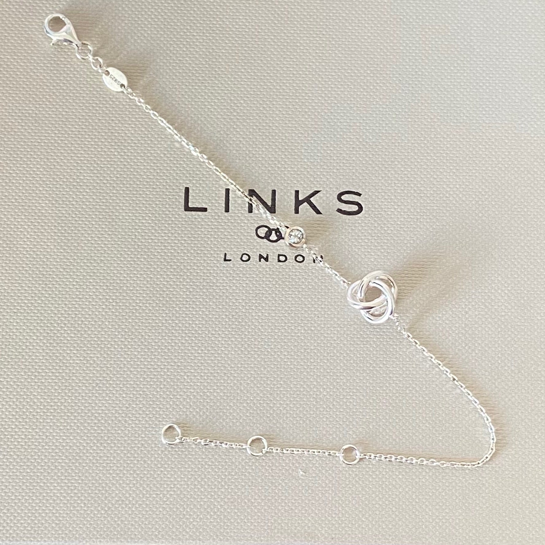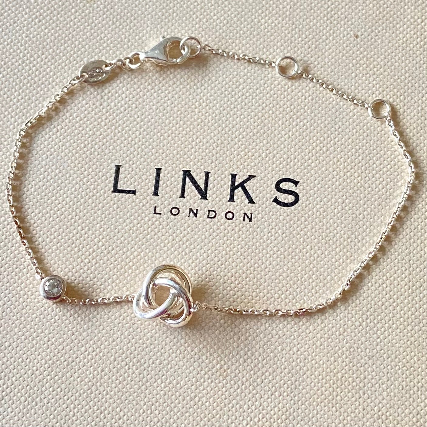 Item: Links of London Sterling Silver Love Knot Bracelet with a Topaz Sparkle Stone.