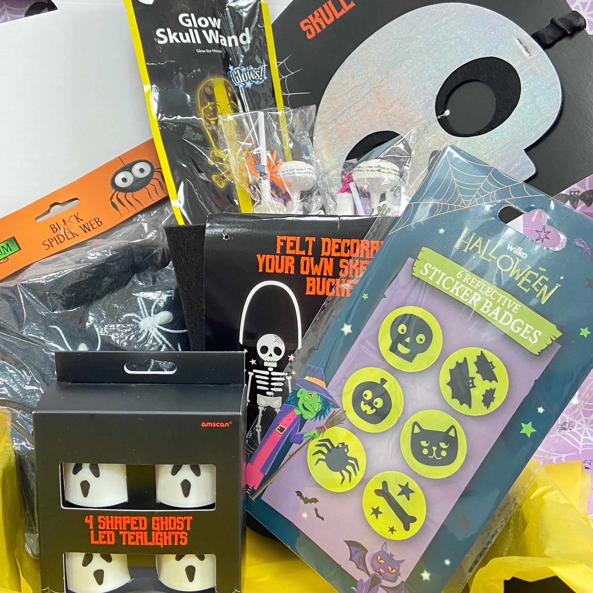 Check out this great way to start to celebrate Halloween or just a themed party. This Starter kit is a great way to get started. Filled with goodies, a make your own goodie felt cauldron with Skellington Stickers.