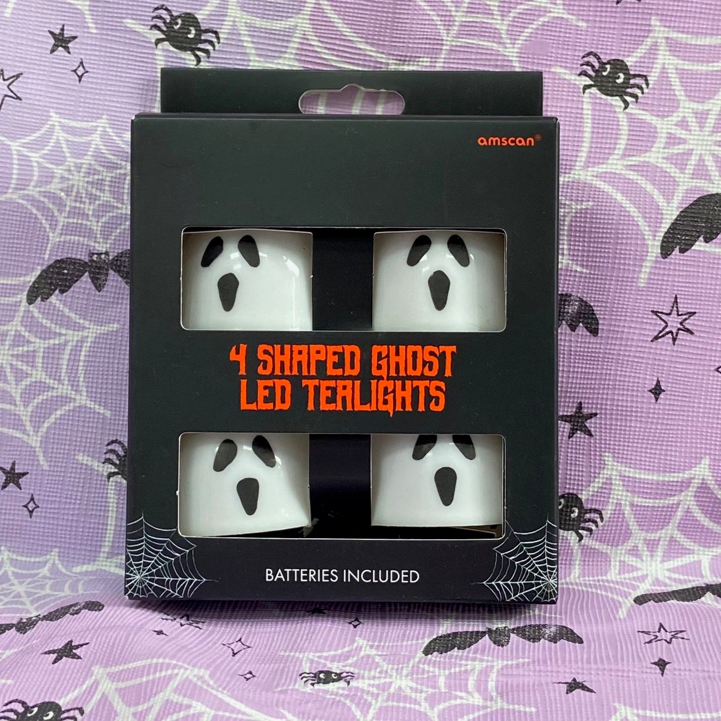 Description: 4 Shaped ghost LED Tea Lights Contents: 4 Company: amscan