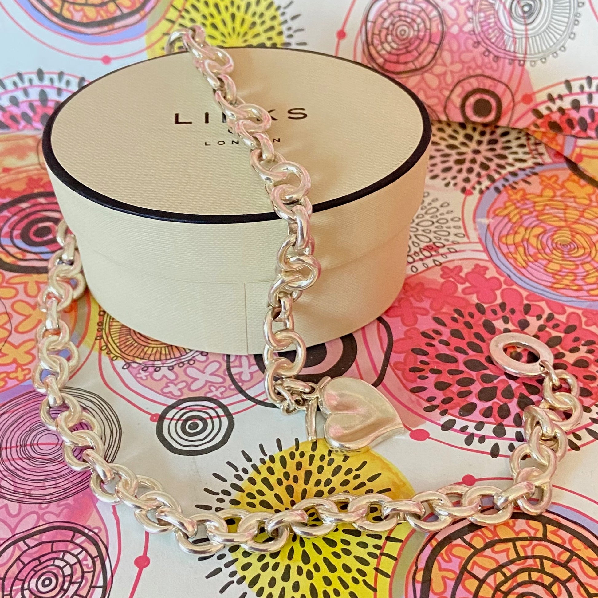 Signature Links of London Necklace & Silver Heart. 89g. 46cm