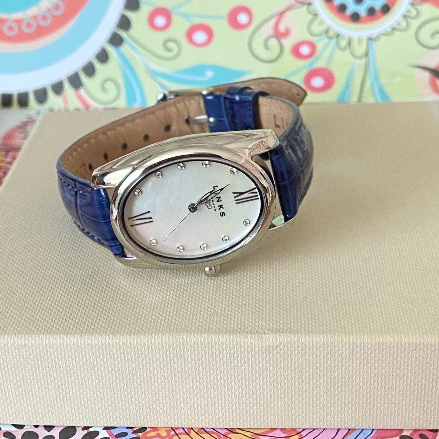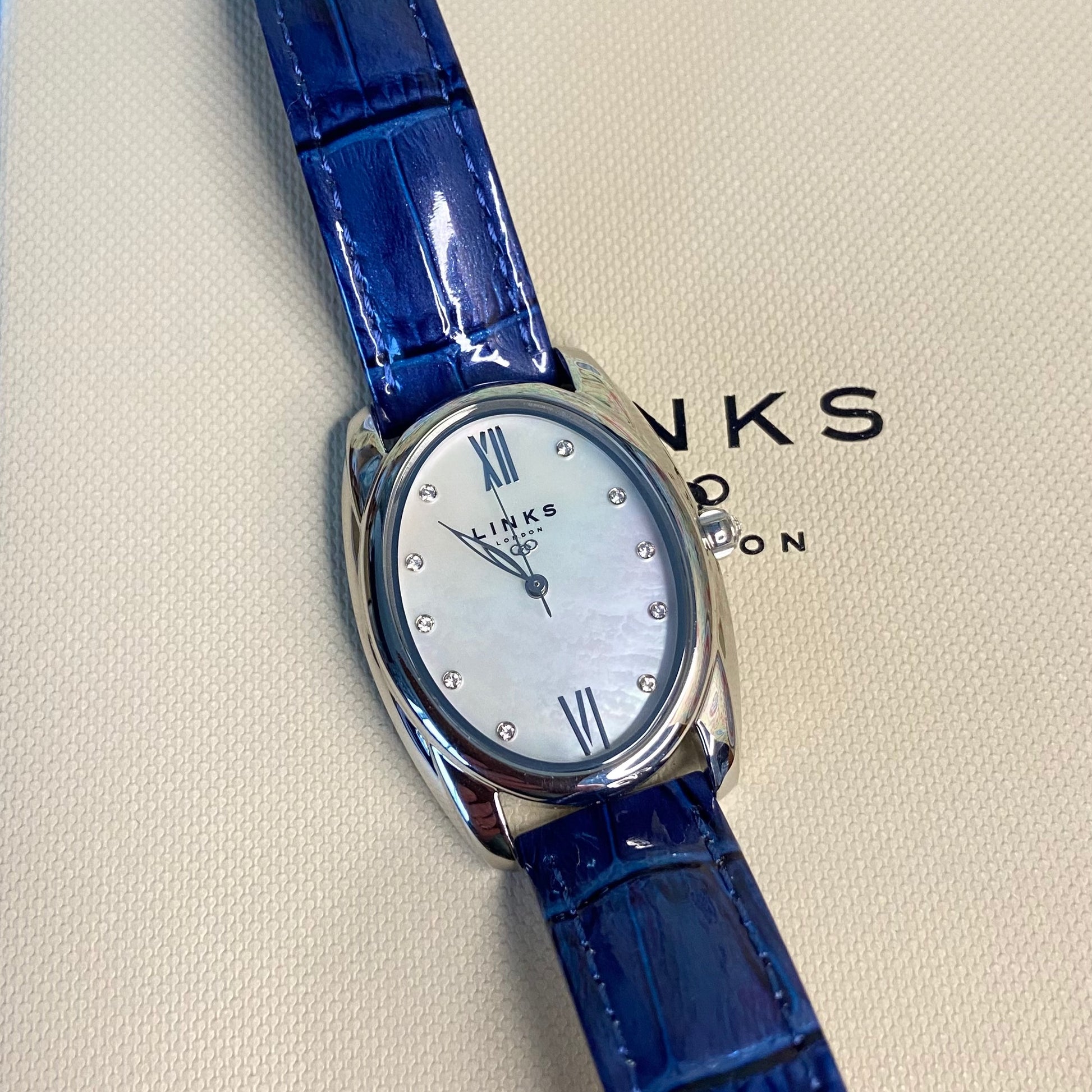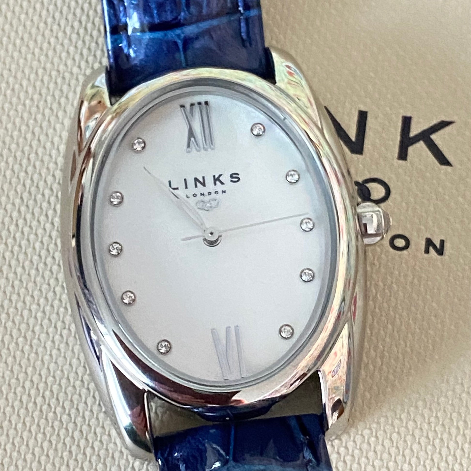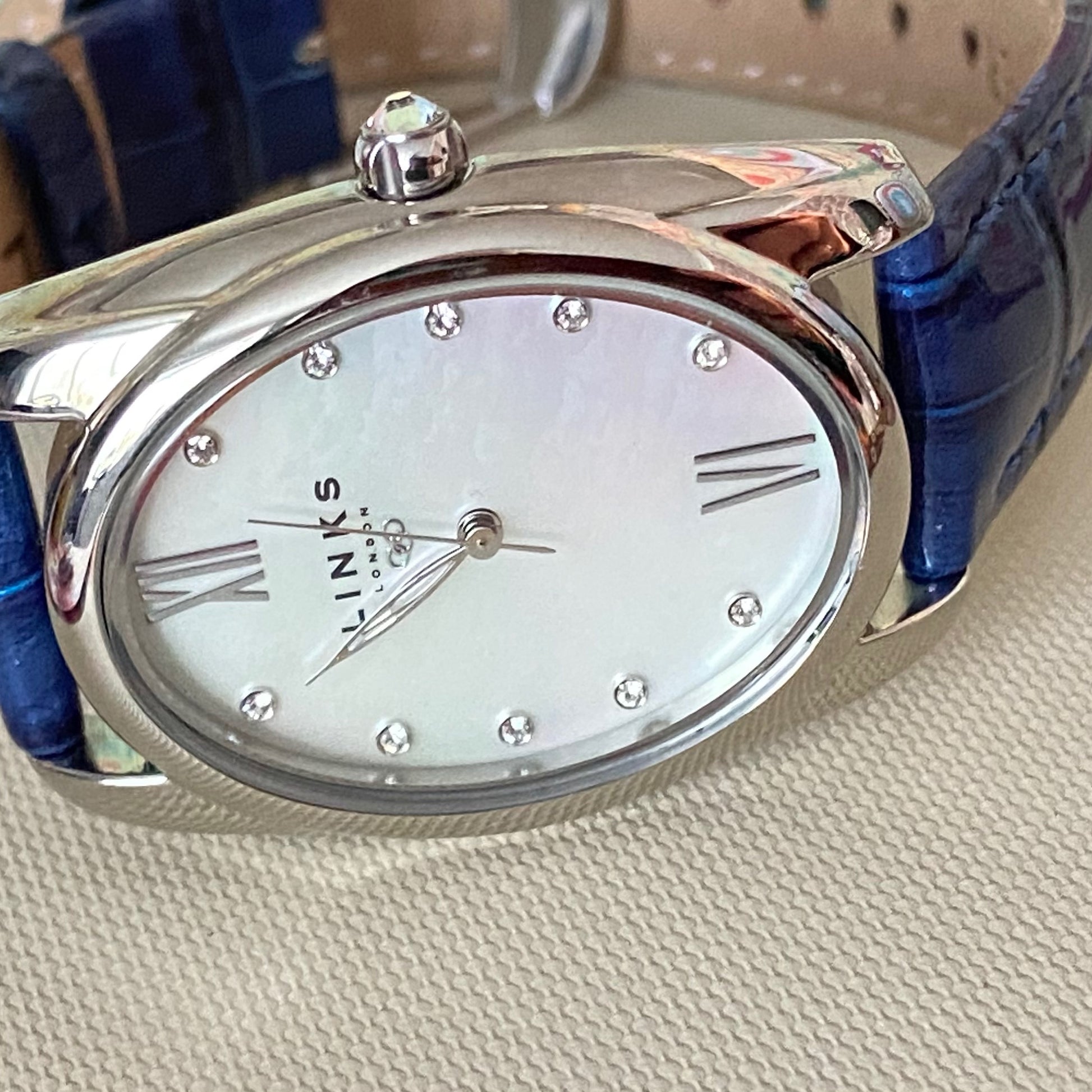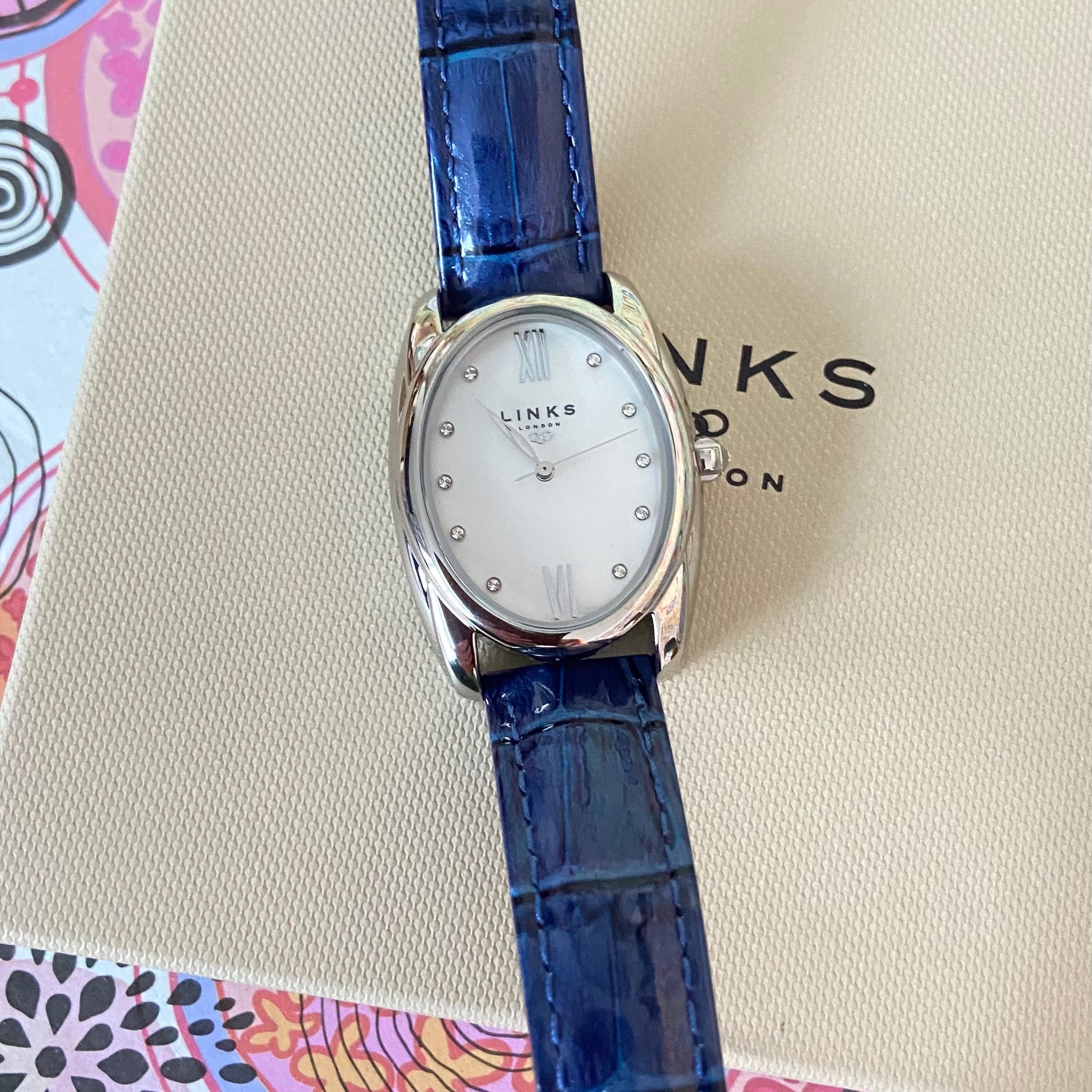 Item: Rare Links of London Driver Ellipse Watch with a Blue Leather Strap.