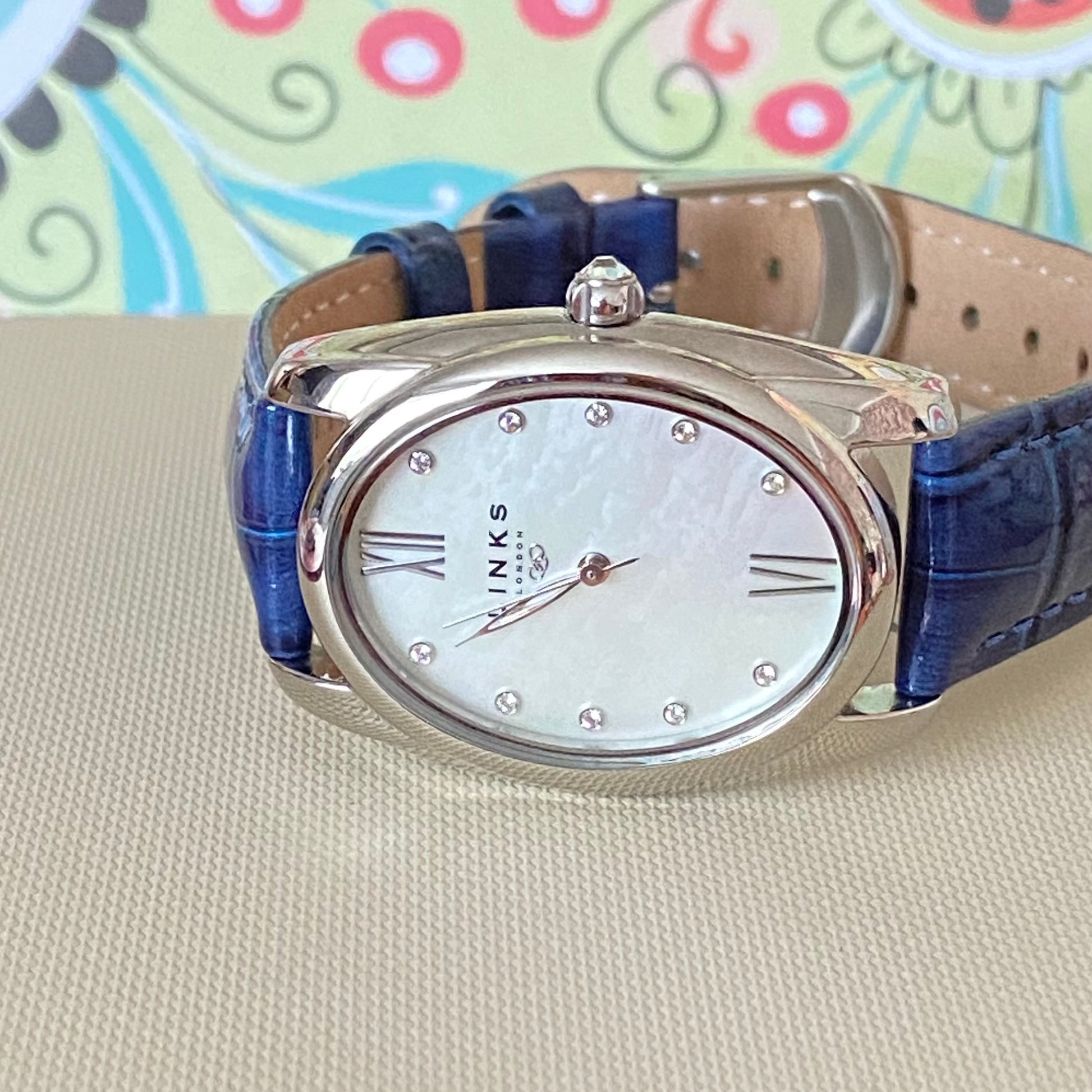 Rare Links of London Driver Ellipse Watch with a Blue Leather Strap.