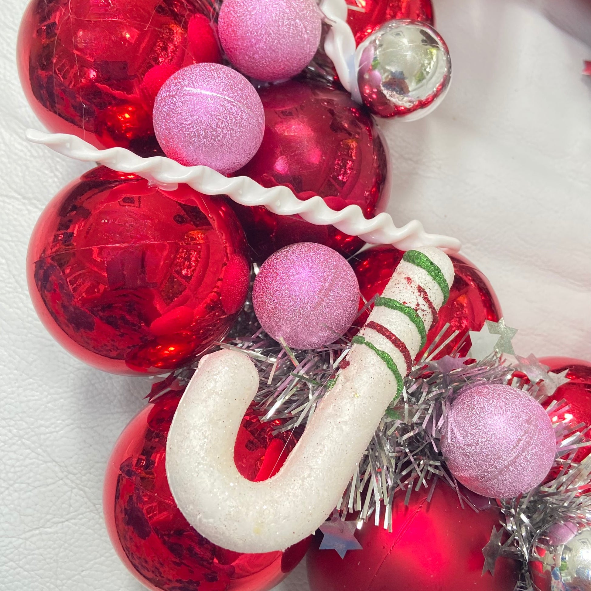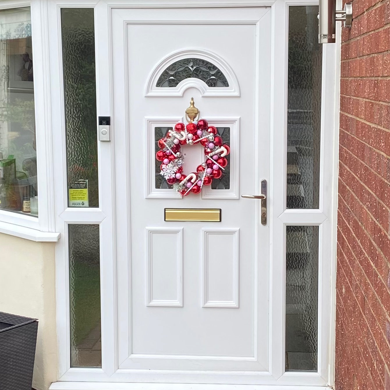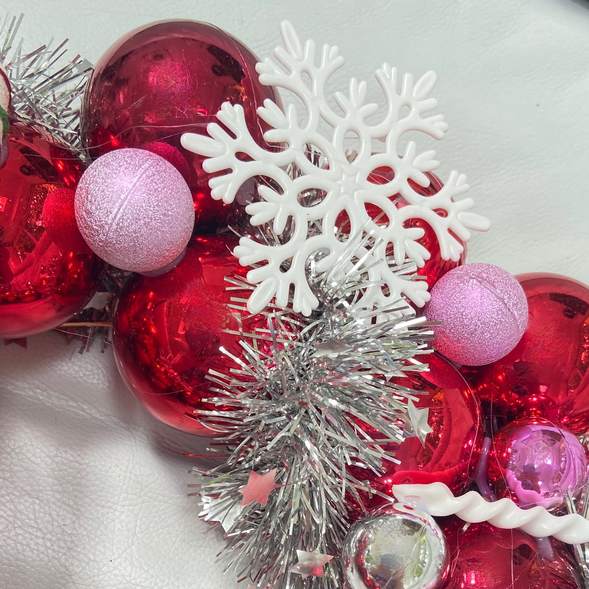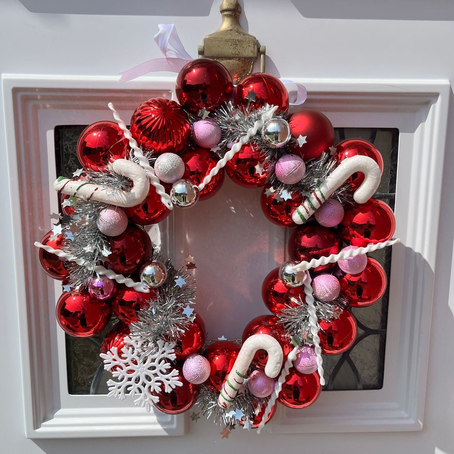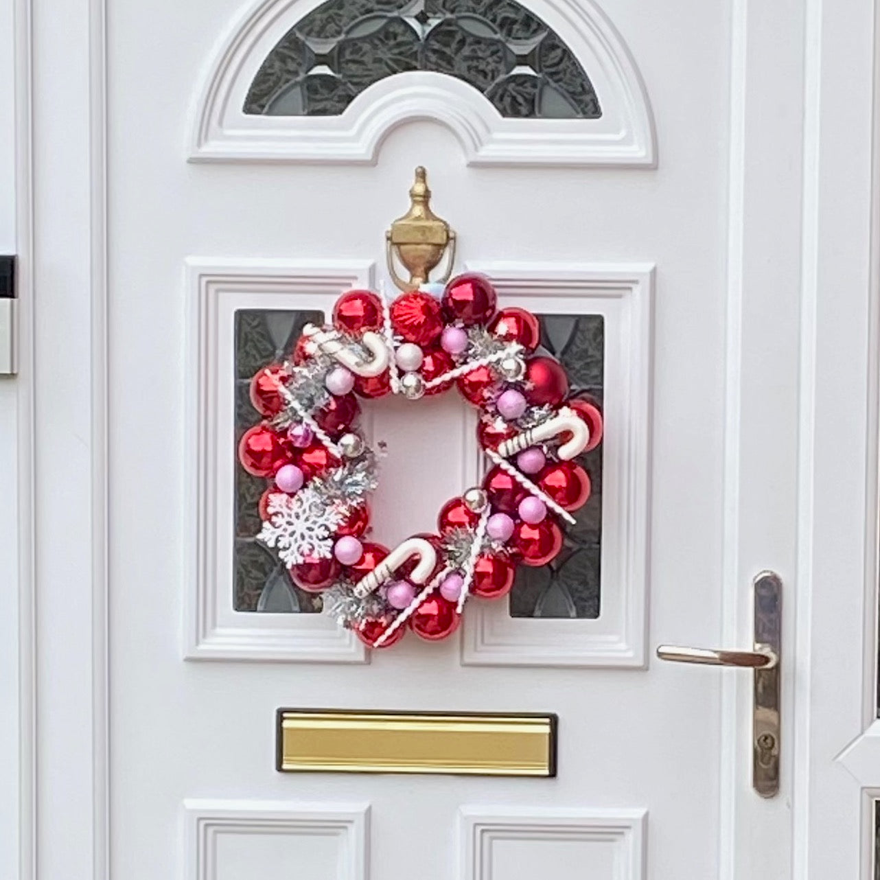 This individual one of a kind beautiful bauble wreath is handmade and makes a perfect indoor or outdoor decoration. It will be supplied with ribbon and this can be attached to your front door or alternatively inside your home. The item is made with shatterproof baubles, but it is worth noting that when placing the wreath, make sure it is secure as we do not want you to be disappointed.