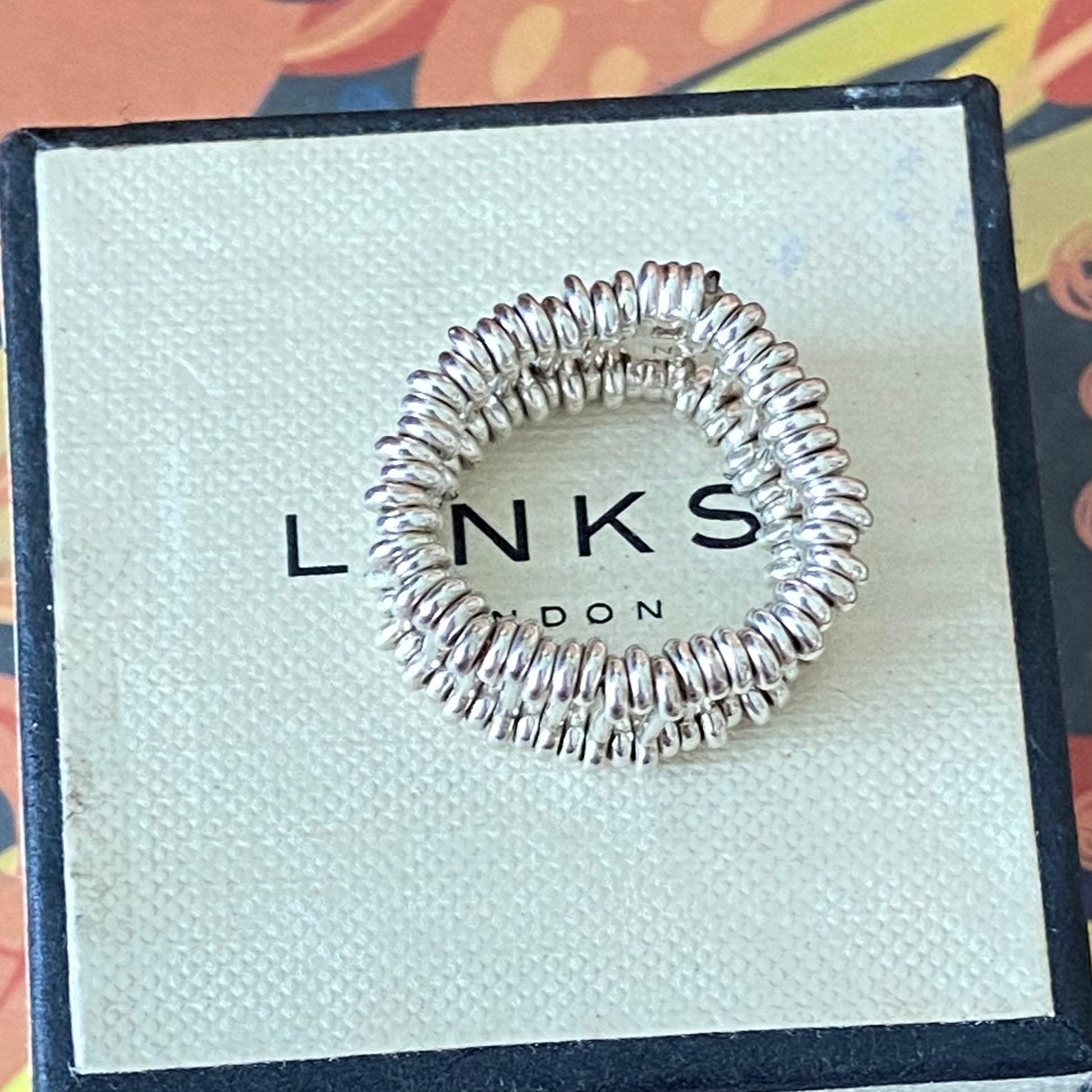 The Links of London three ring Logo is on the ring. This really is a lovely piece of jewellery that should be handled with care and worn with glamour. This is not only Iconic for the Links of London Design it is also Rare. It has been a pleasure to offer this ring for sale.