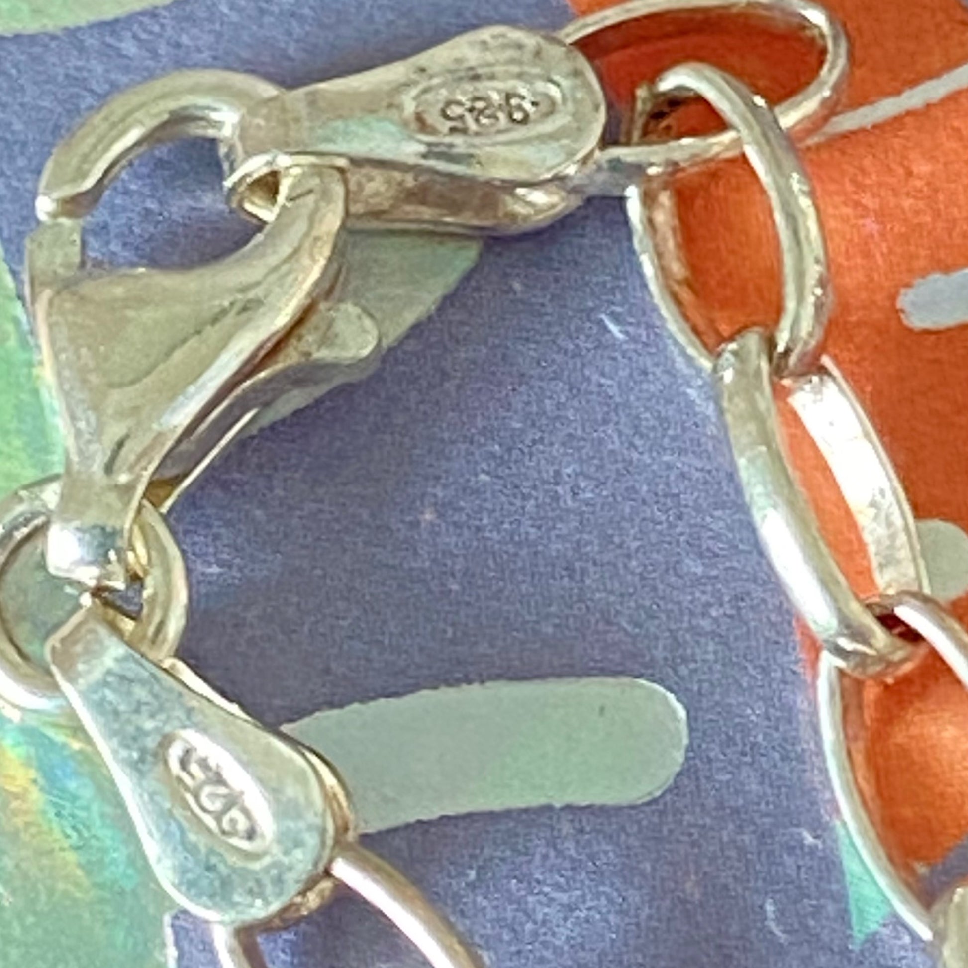 The necklace is a Sterling Silver belcher style chain measures 44cm with a 3mm width, the 925 Hallmark is on both ends of the chain.