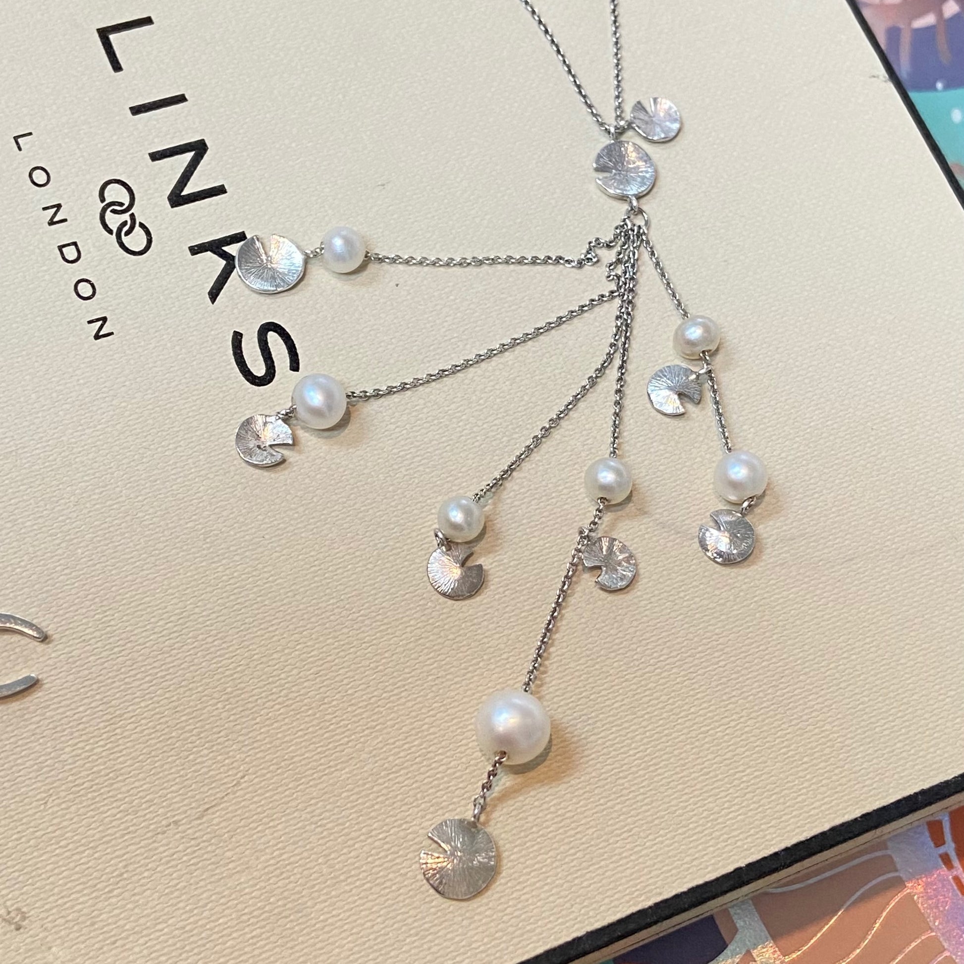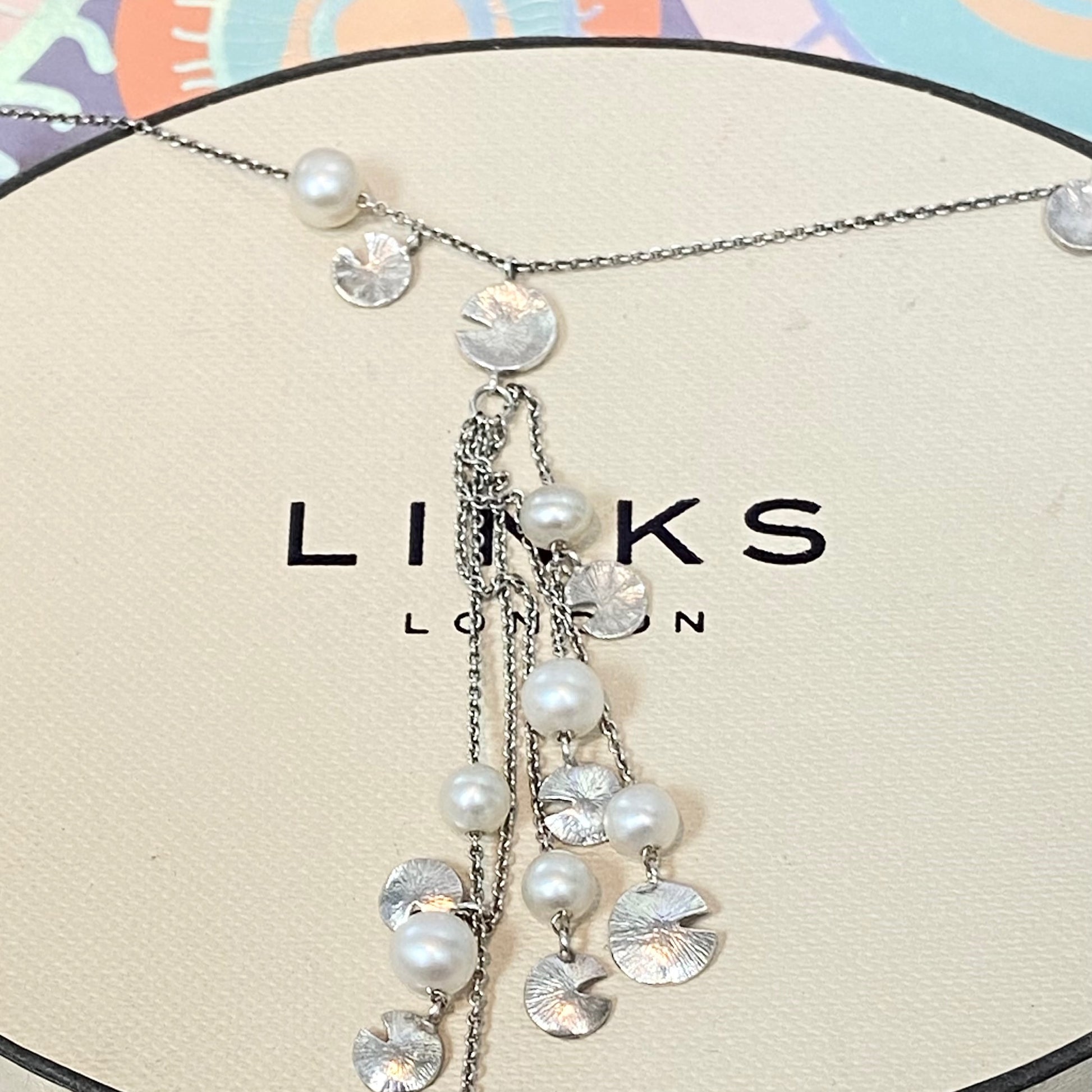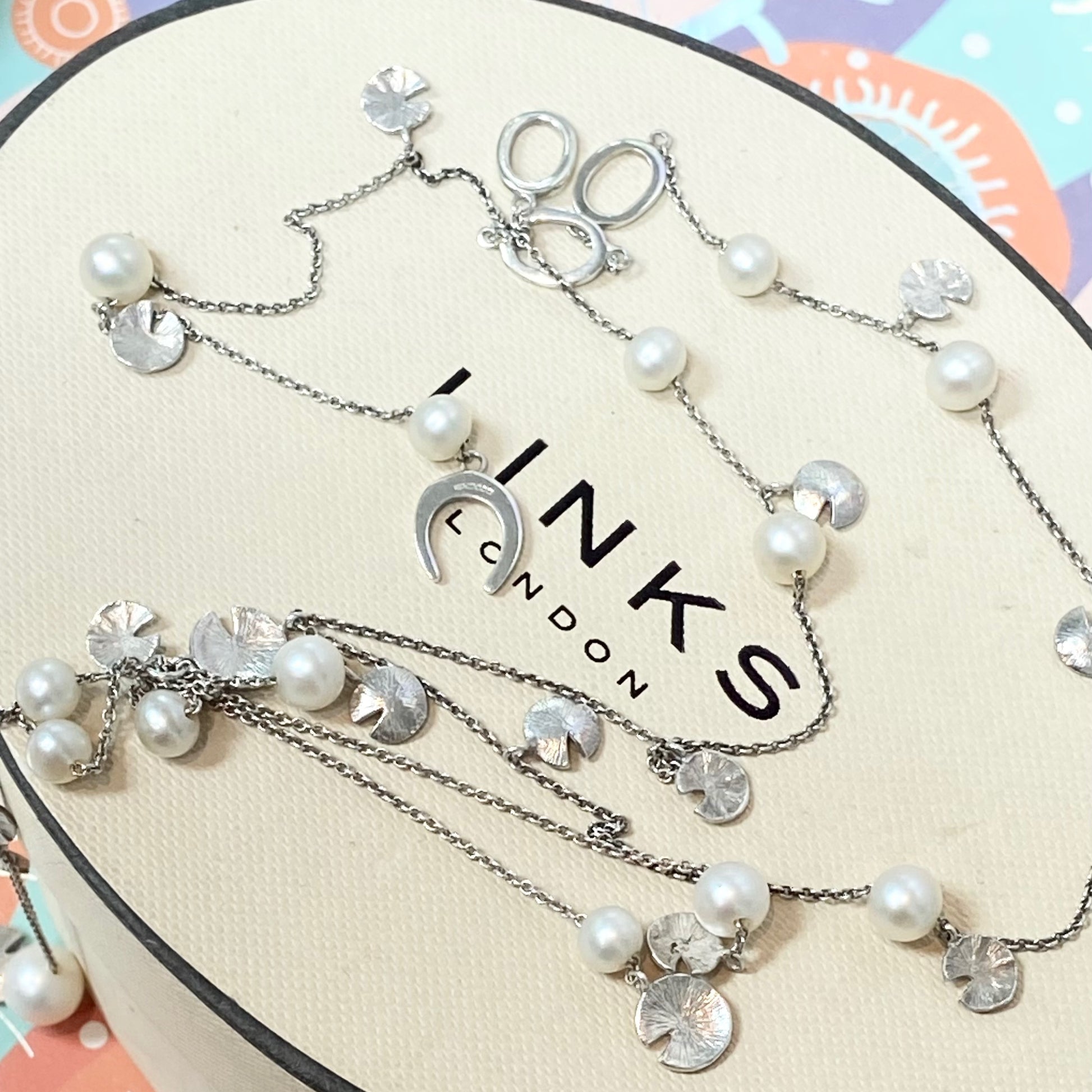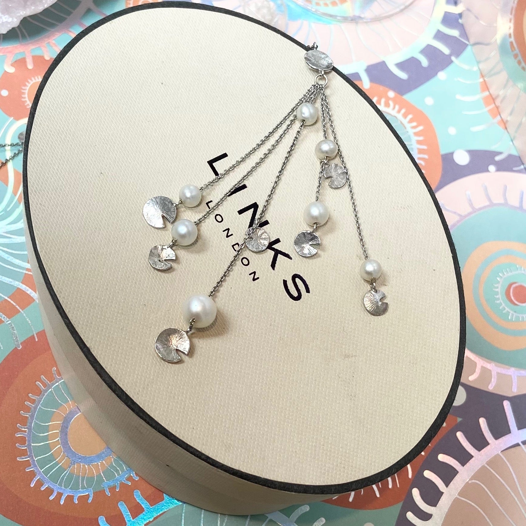 Sterling Silver and water Pearl Lily pad Links of London Necklace
