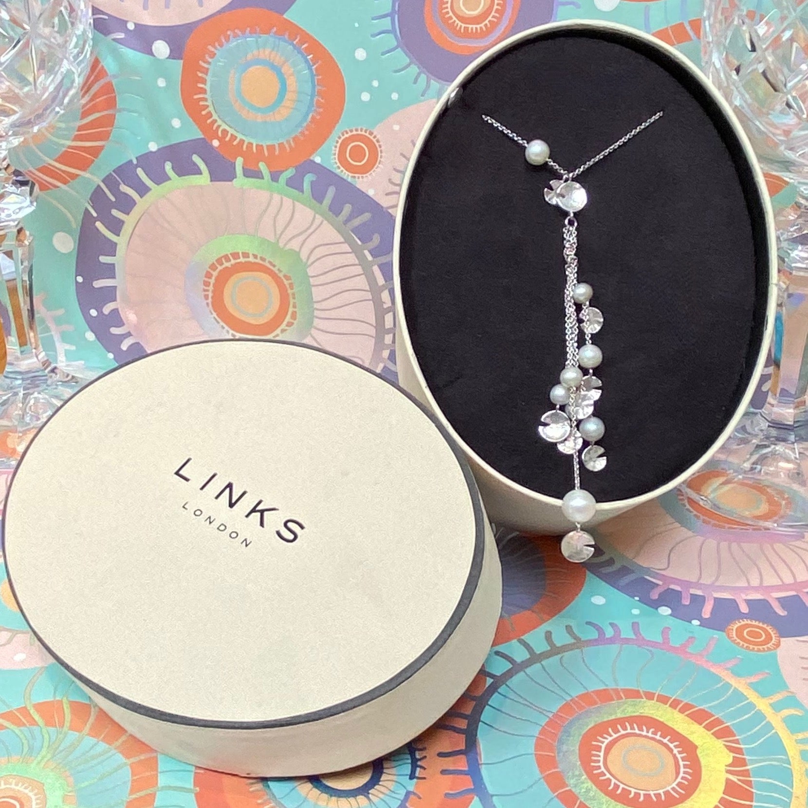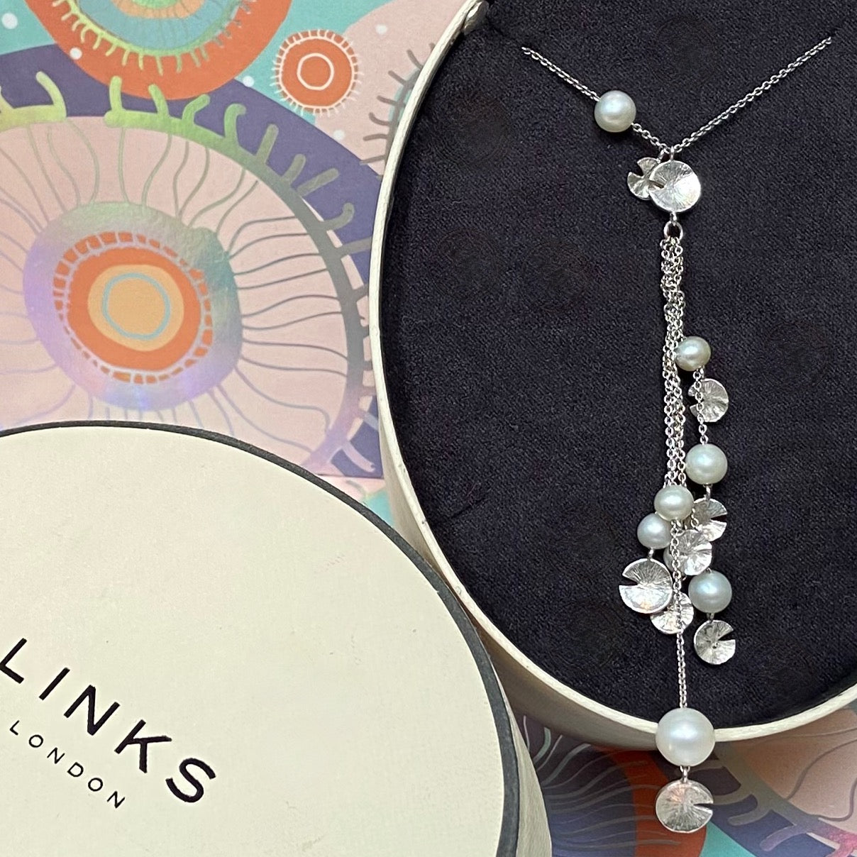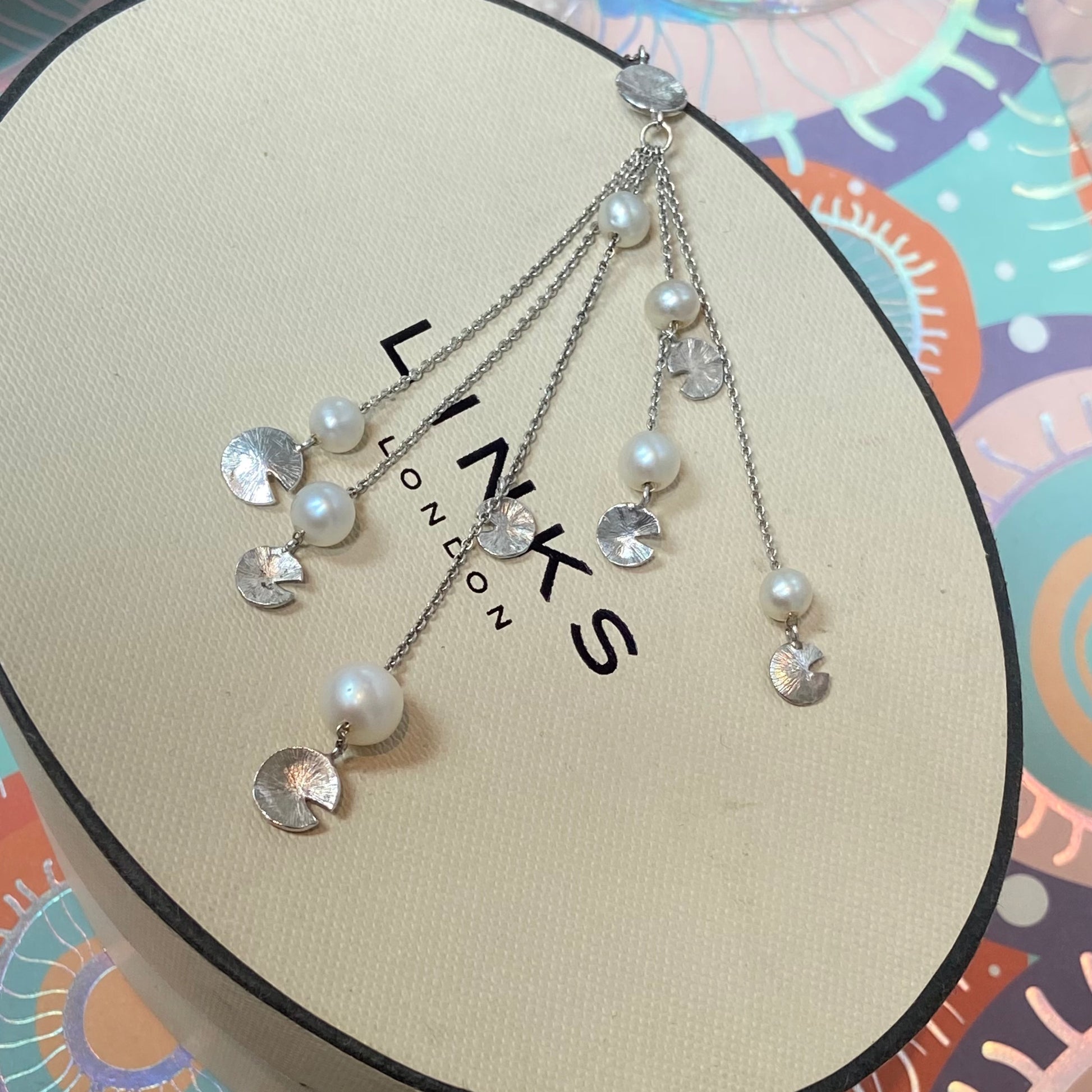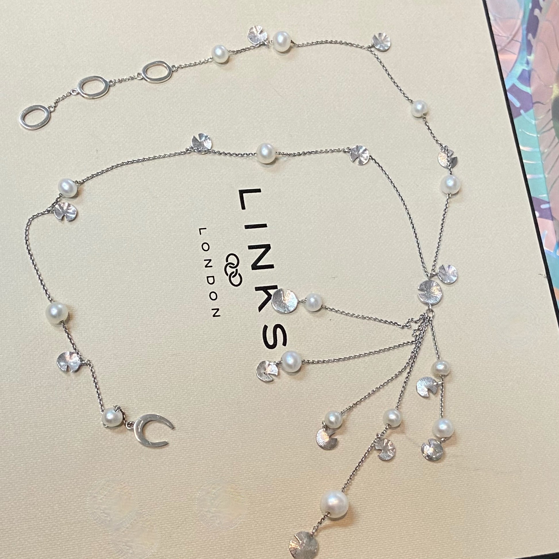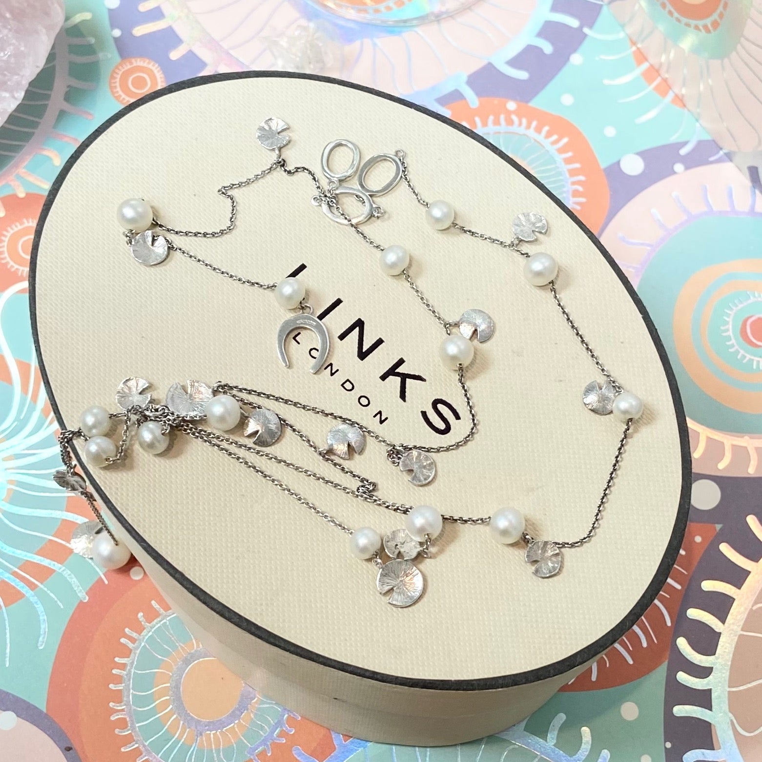 Sterling Silver and water Pearl Lily pad Links of London Necklace