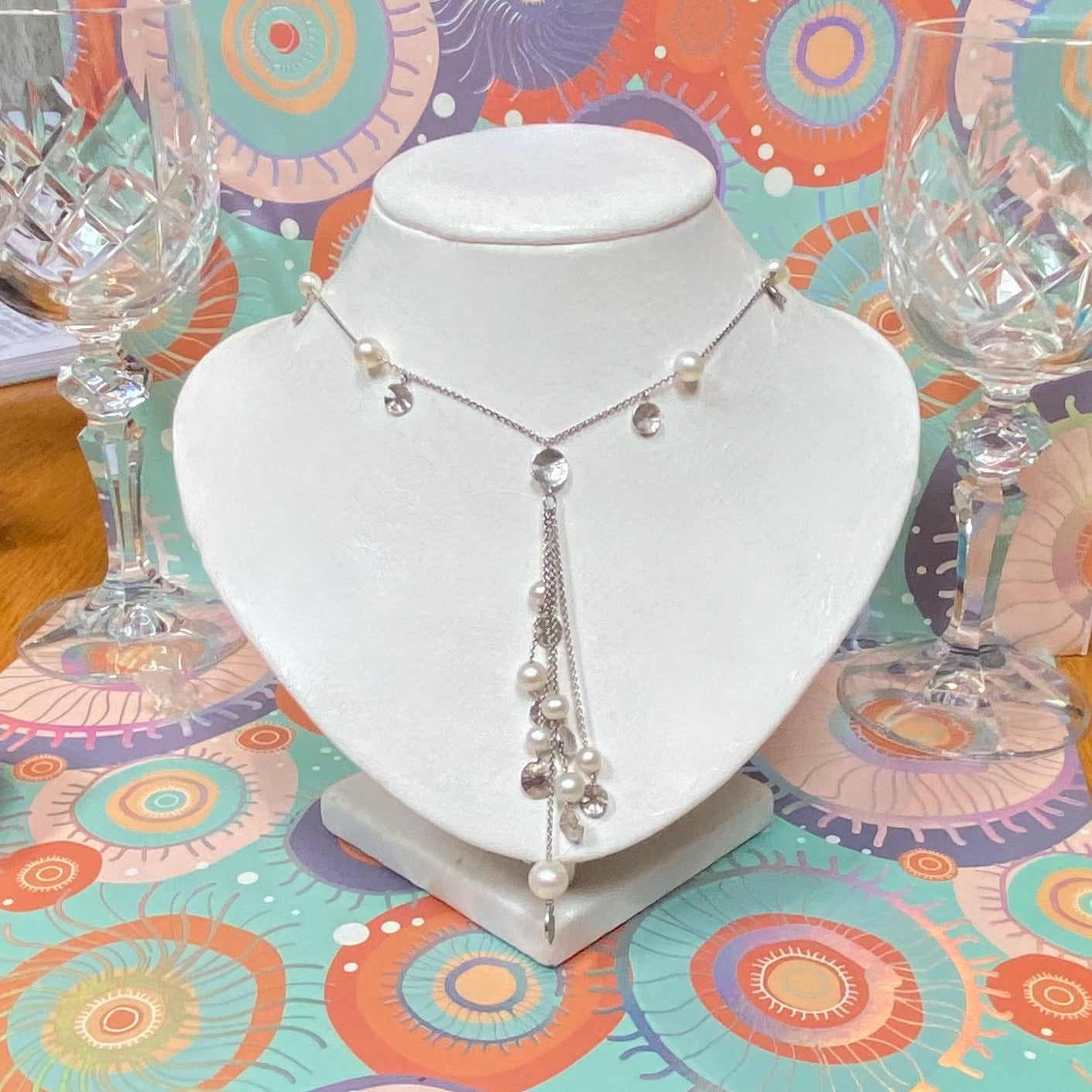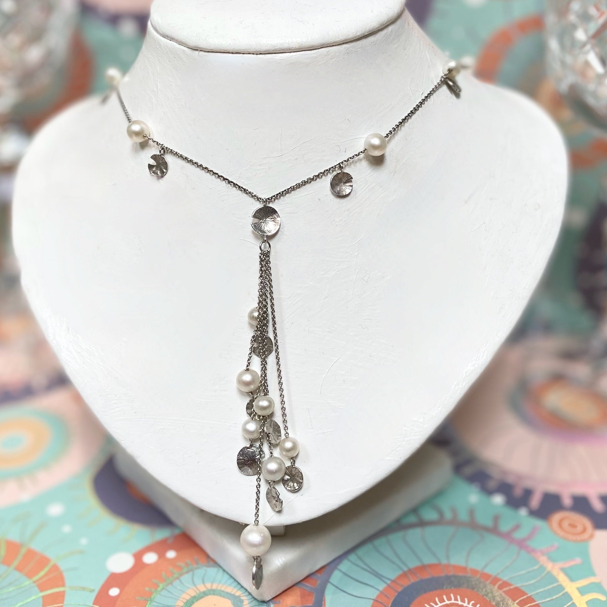 Sterling Silver and Pearl Lilly pad design adjustable Necklace Absolutely Stunning