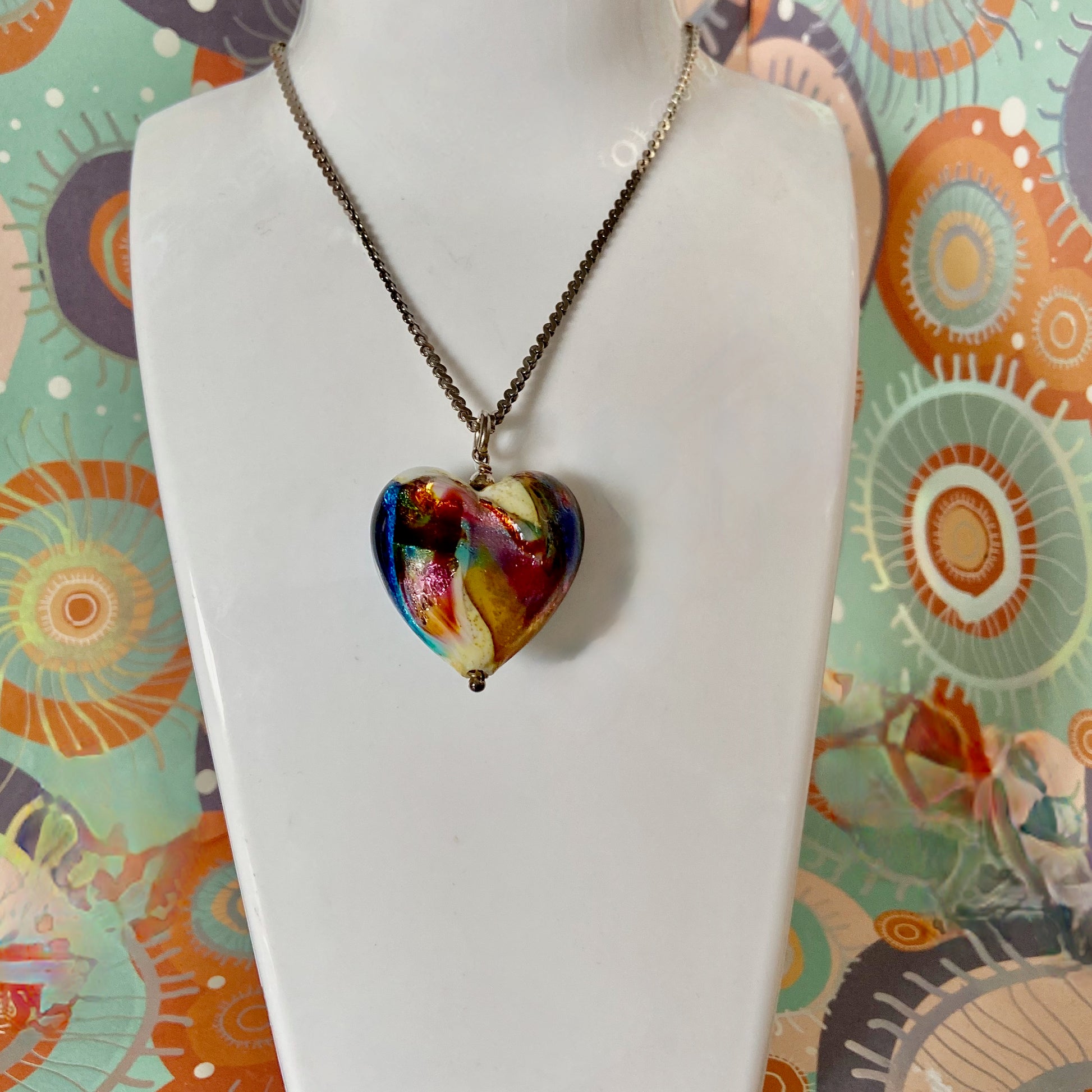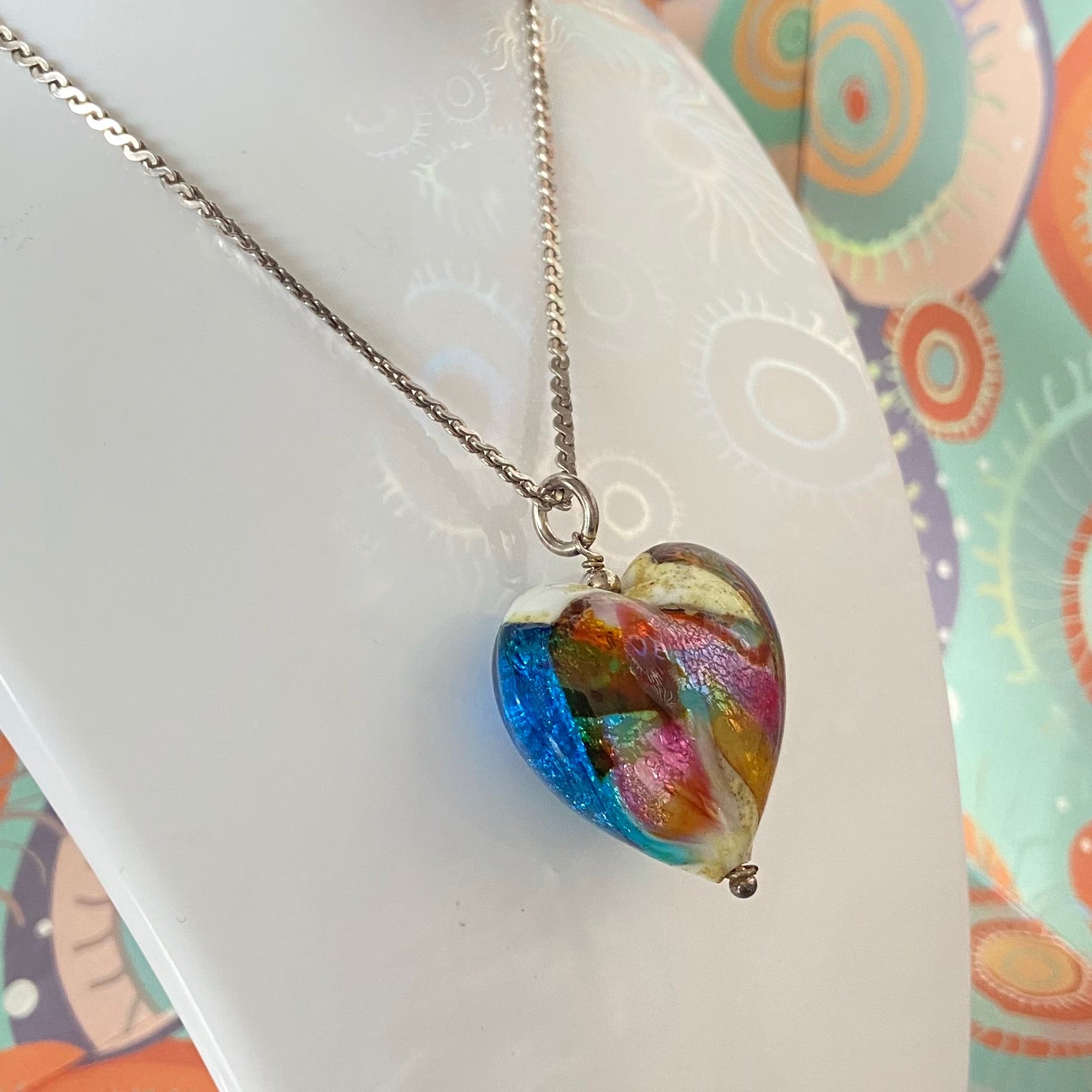 The Murano Glass Heart is 3cm x 3cm with a large circle fixing allowing the necklace to move when you wear it.