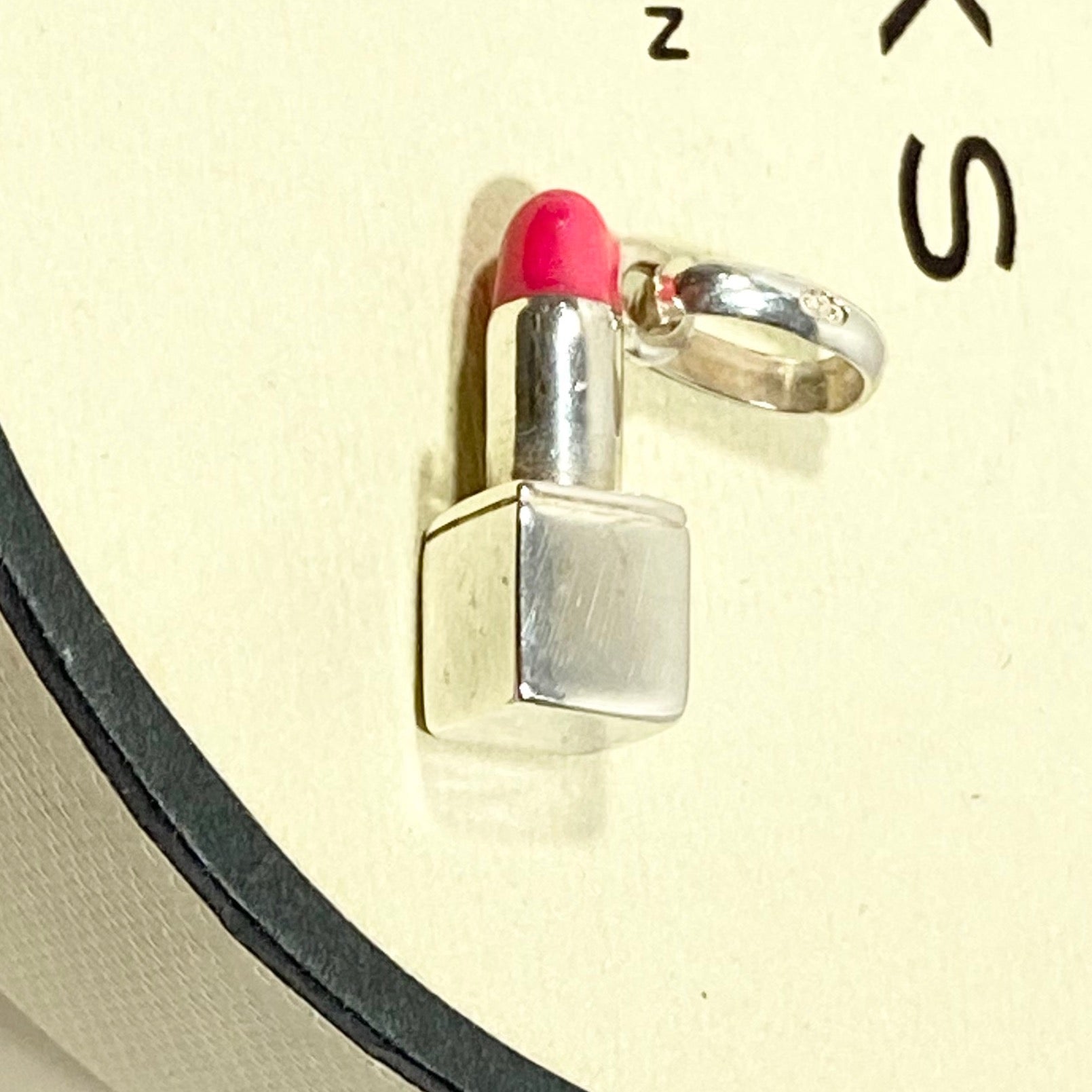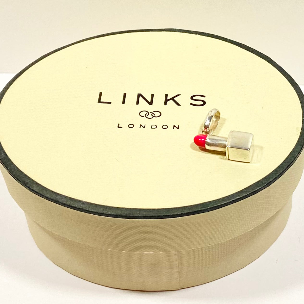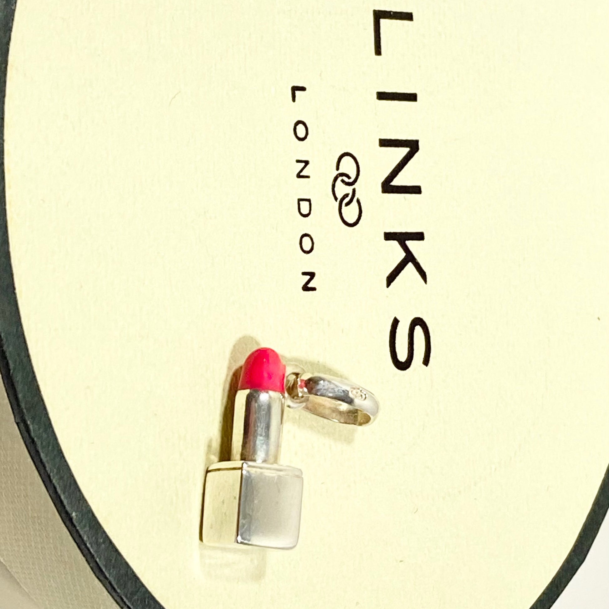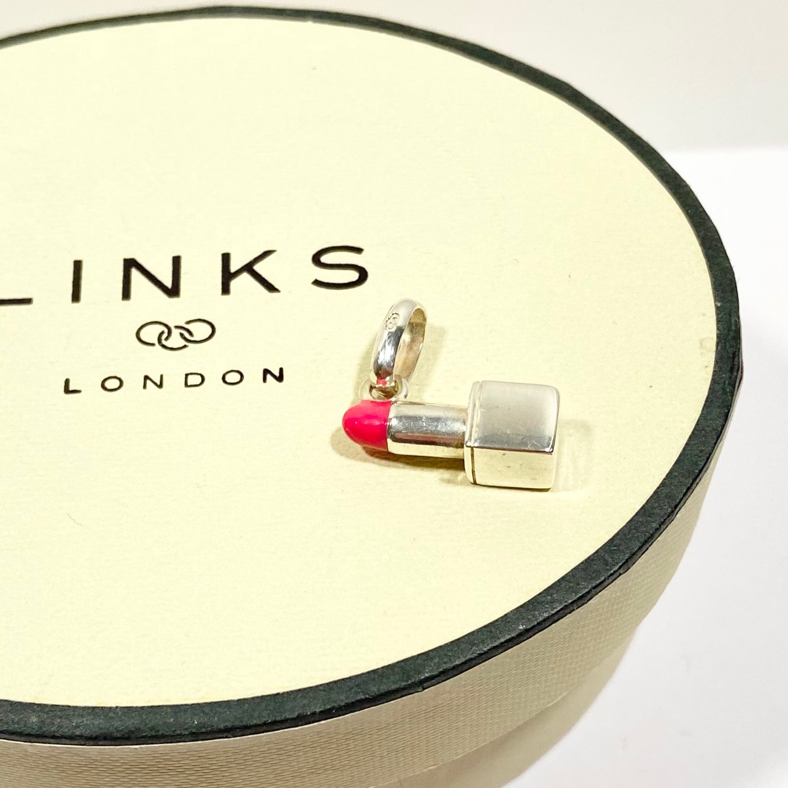 Preloved Links of London sterling silver lipstick charm with red enamel, hallmarked in 2010, is ideal for adding a touch to bracelets or necklaces.